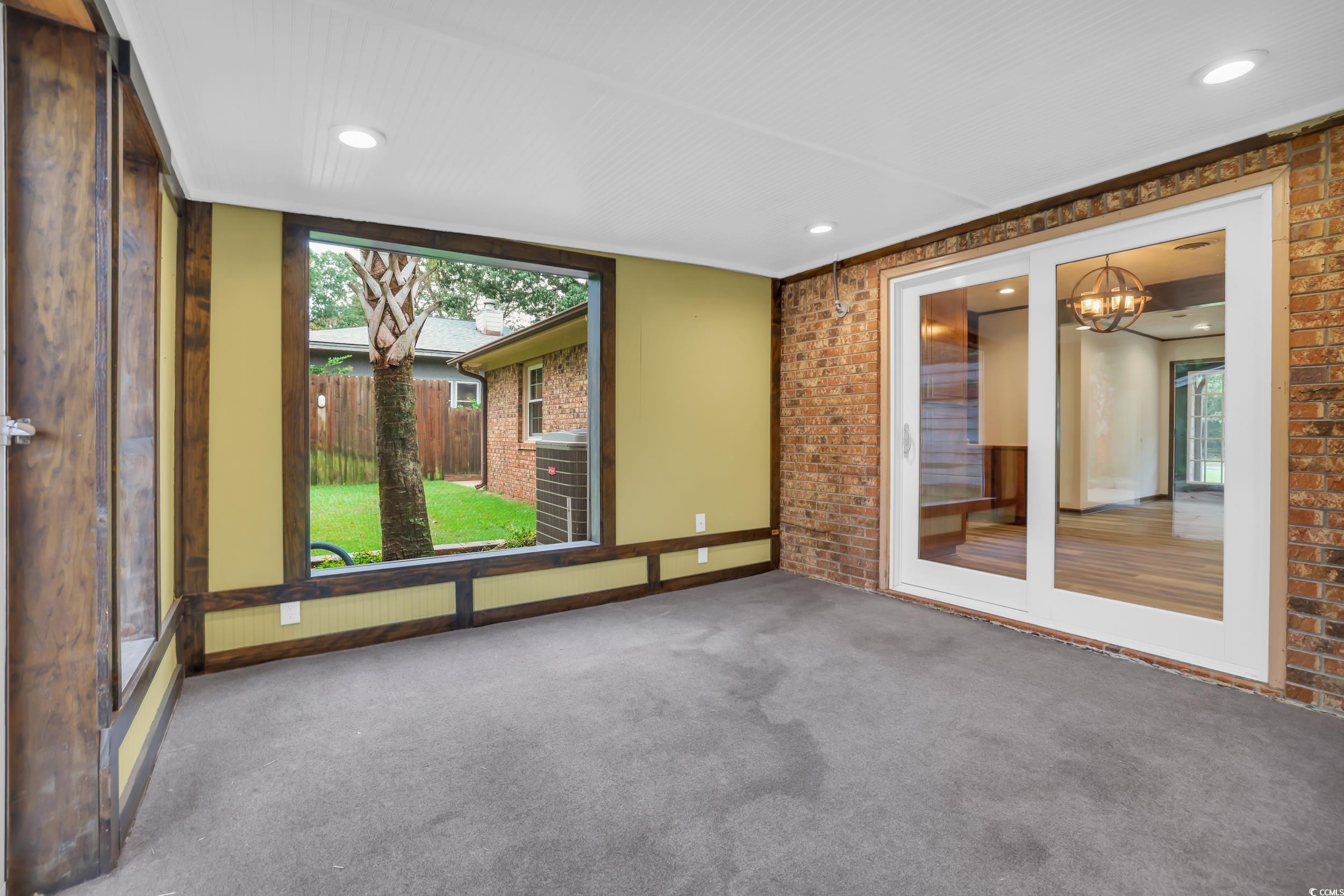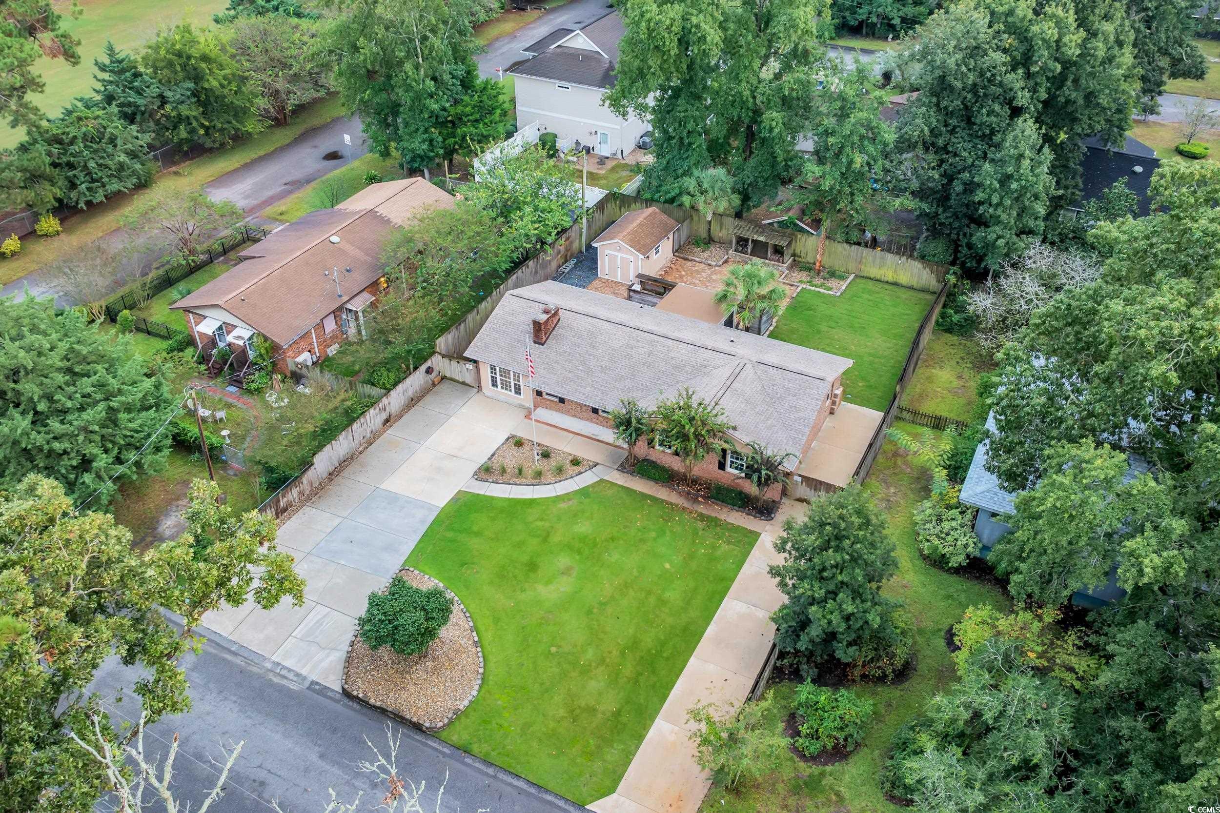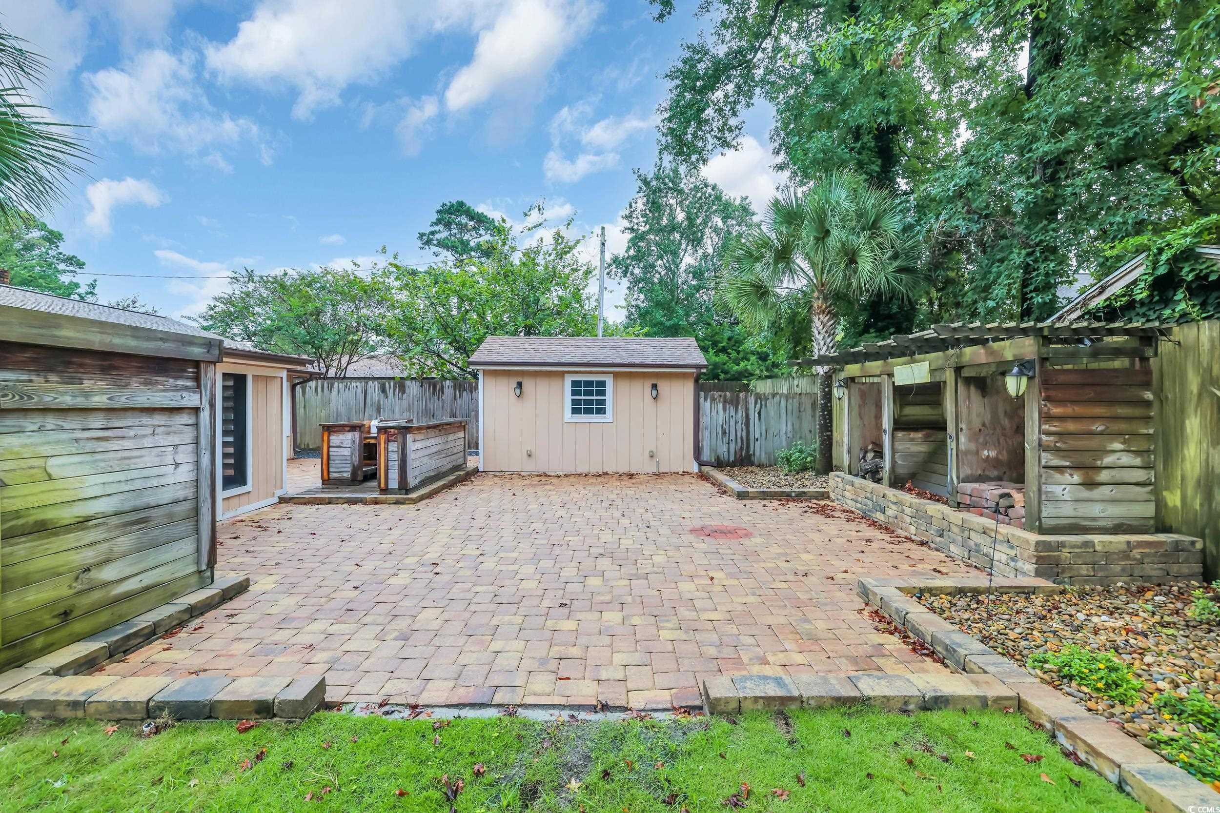 Welcome to 2403 Watson Drive, NO HOA, all brick charming 3-bedroom, 2-bath ranch in Pinewood Acres with undeniable curb appeal. Just a short drive or golf cart ride to the beach, Barefoot Landing, shopping and restaurants, this home combines comfort, character, and convenience. Home also features a BRAND new ROOF, new carpet, freshly painted, built in safe and custom landscaping lighting with irrigation! Inside, youll find an open-concept living area anchored by a wood-burning fireplace with custom shelving, wood beams, and a cozy breakfast bar. The updated kitchen features beautiful wood cabinetry and stainless steel appliances, while the light-filled Carolina roomwith its oversized windows and wide blindscreates the perfect spot to relax. The oversized primary suite includes a double vanity and walk-in shower, and the fenced backyard is highlighted by a beautifully laid brick patio and three striking palm trees. Additional features include outside storage, a dedicated outdoor workstation, and the bonus of no HOA fees or HOA rules. RV Parking area with gravel drive on the side of the home, outdoor cooking space, outdoor shower, zoysia grass in backyard, outdoor storage shed and fenced yard! Store your boat or RV on your own property! With golf courses, restaurants, and coastal living just minutes away, this home has everything youve been looking for. Schedule your showing today!
