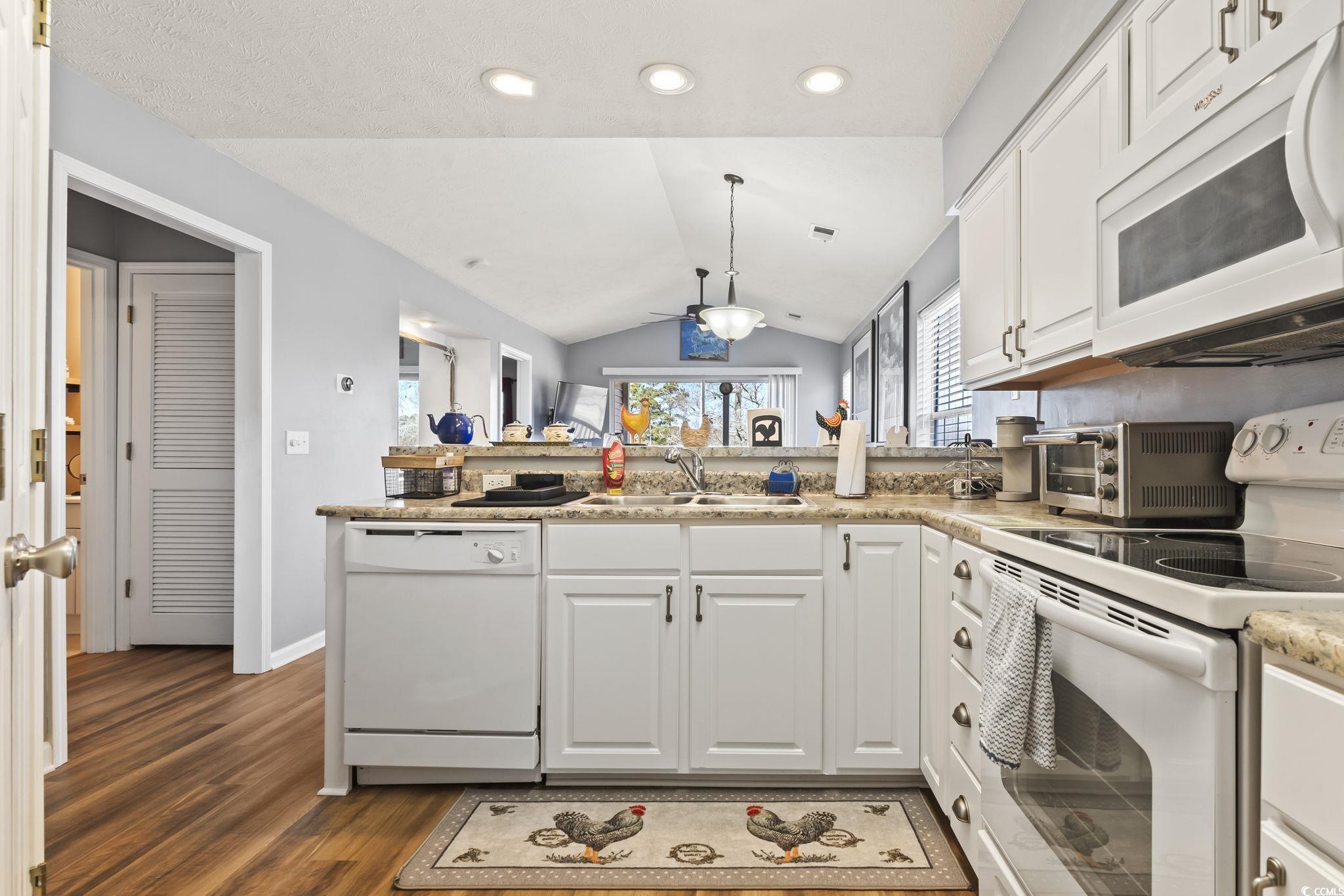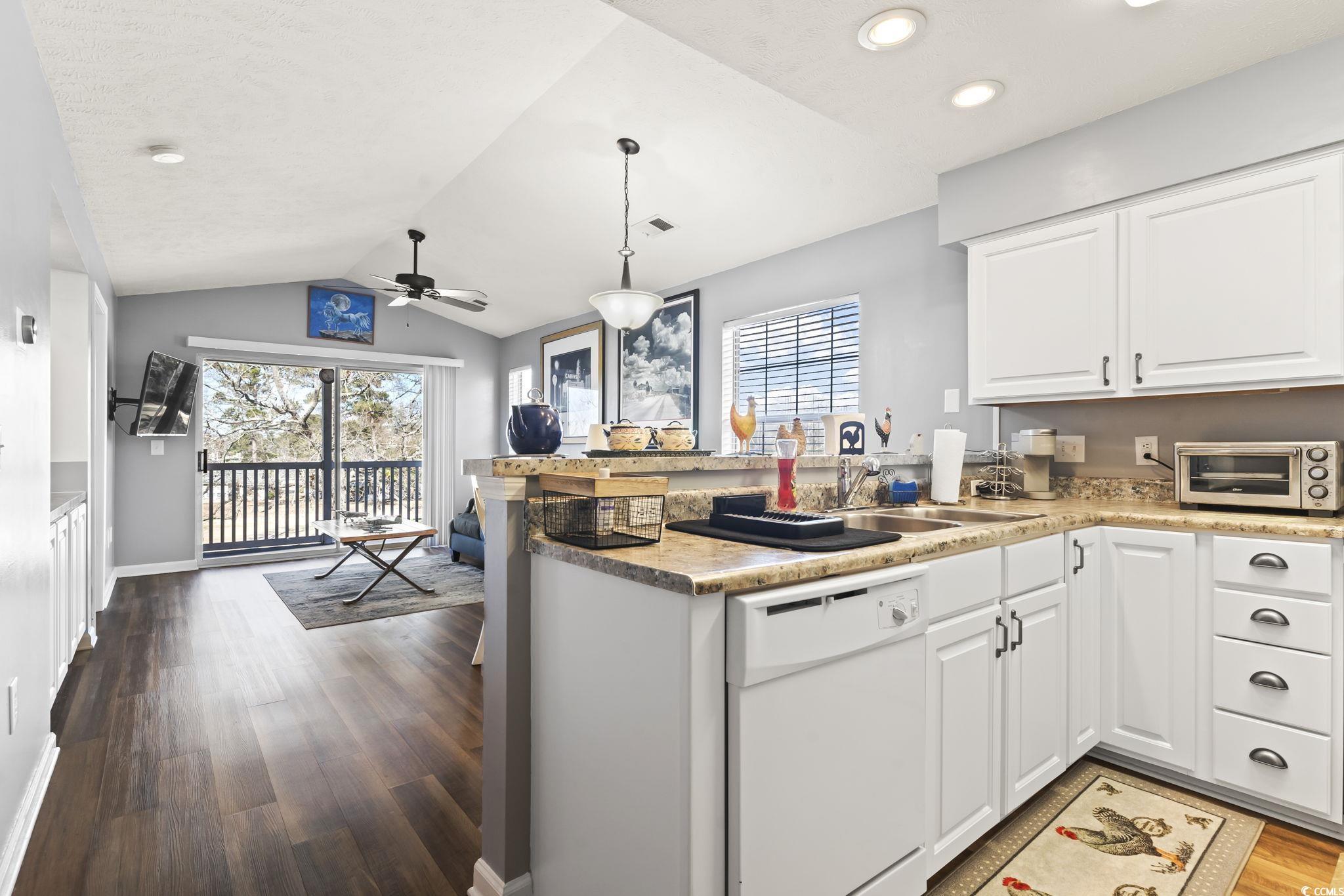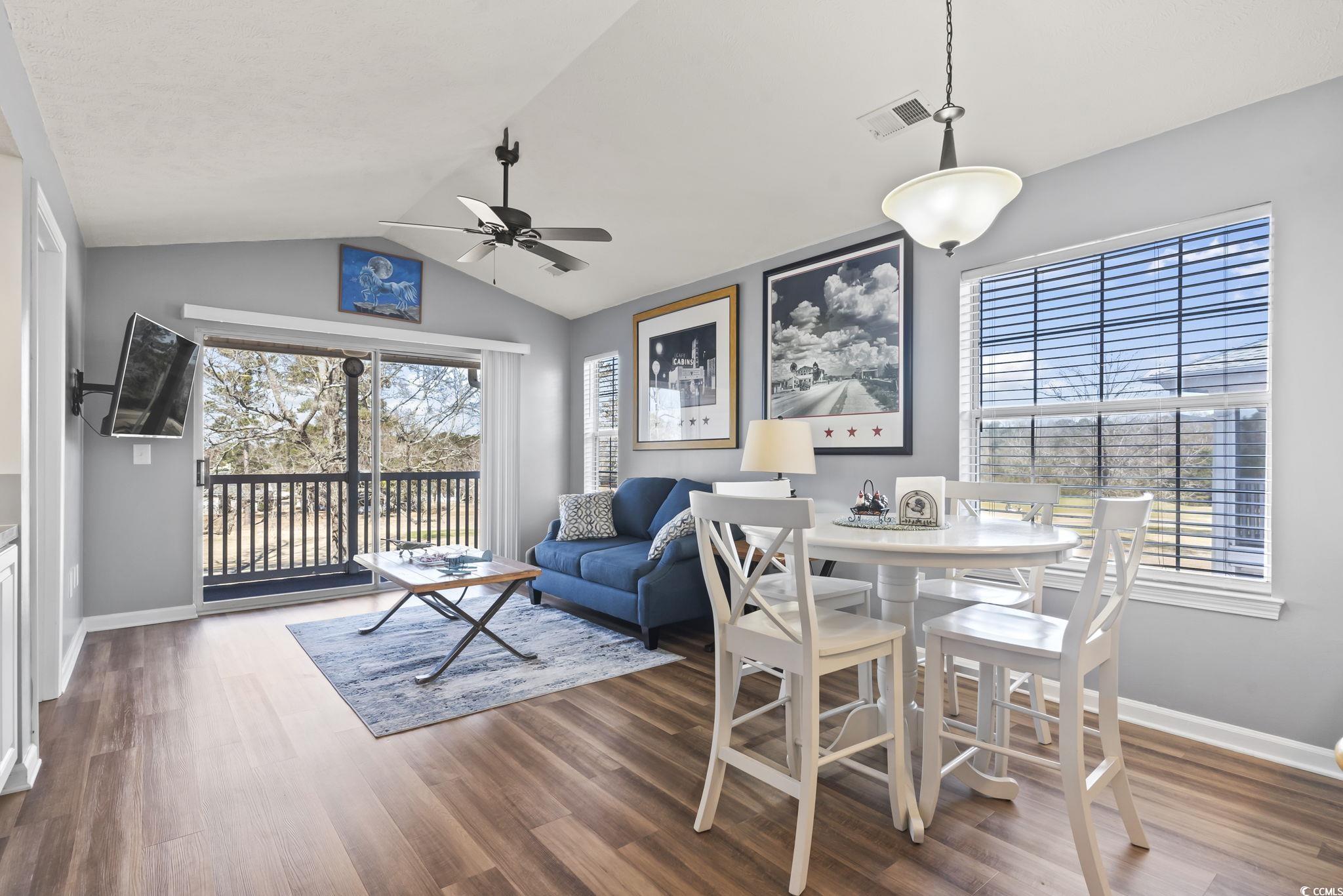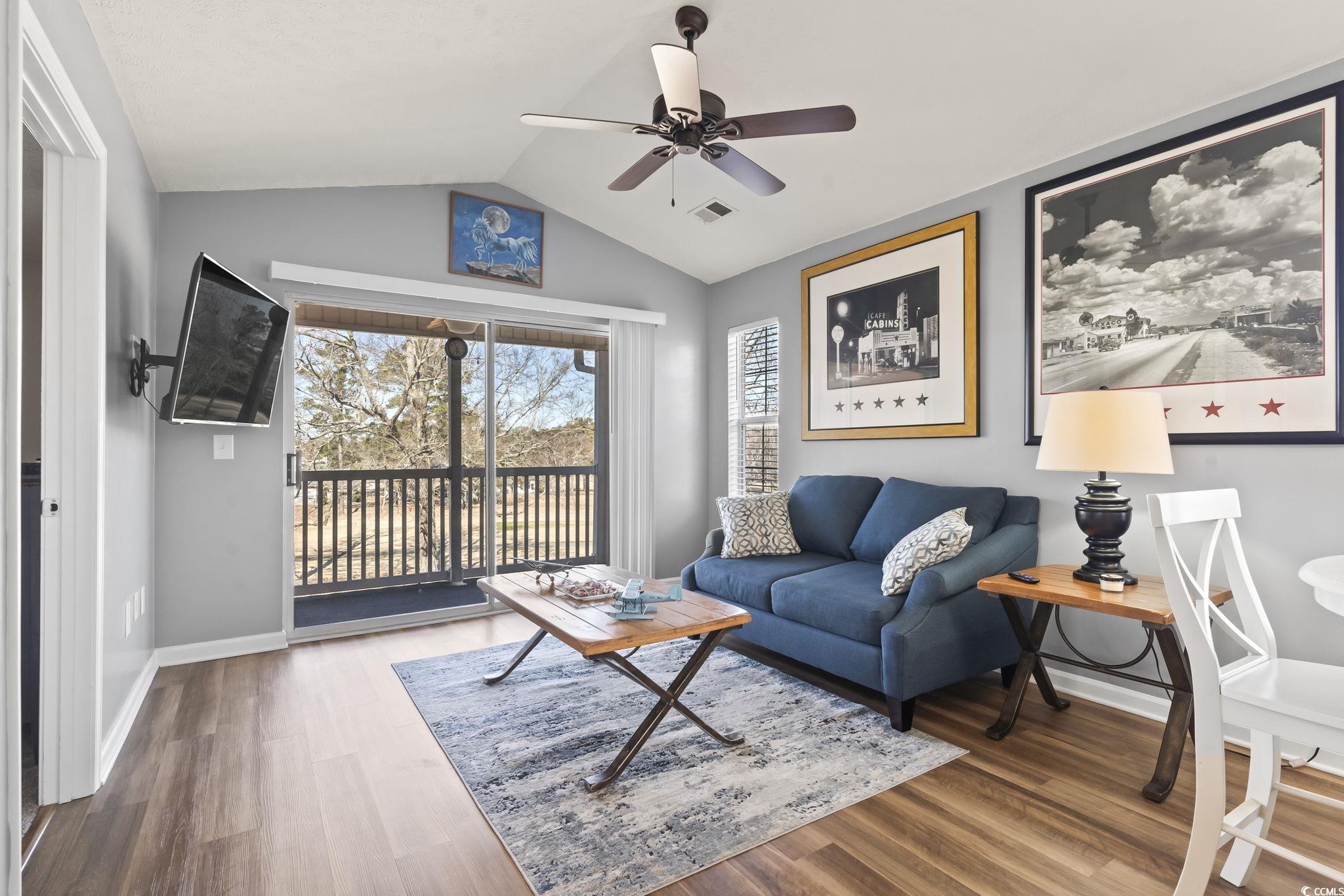 Welcome to this beautifully maintained 2-bedroom, 2-bathroom condo in the desirable Waterway Village, located just off River Oaks and right on the lush, scenic golf course. As you step inside, you're immediately greeted by a spacious open layout with stunning LVP waterproof flooring throughout the main living area. The updated kitchen is large and offers ample cabinet space, paired with modern appliances perfect for all your culinary needs. The inviting living room boasts impressive vaulted ceilings, a ceiling fan, and an abundance of natural light, creating a bright and airy atmosphere. Sliding glass doors open to a private outdoor balcony where you can relax and take in peaceful views of the golf course, making it the perfect spot to unwind after a long day. Both generously sized bedrooms feature ceiling fans and are newly repainted, offering a comfortable and restful retreat. The unit also comes fully furnished, so you can move right in and start enjoying the beach lifestyle. Additional highlights include a washer and dryer, along with a brand-new HVAC system (installed in 2022). For added convenience, this unit offers not one, but two owners' closets outside of the unit, providing plenty of storage space. As a bonus, you'll love the location! Waterway Village features outstanding amenities including community pools, tennis courts, and a private dock. The property is also just minutes away from top attractions like Barefoot Landing, dining, shopping, and entertainment, and is ideal for golf lovers, with some of Myrtle Beach's best courses right at your doorstep. This condo offers the perfect combination of comfort, convenience, and charm. Whether you're looking for a relaxing retreat or an active lifestyle, this unit has it all. Don't miss out on this exceptional opportunity-schedule your showing today!
