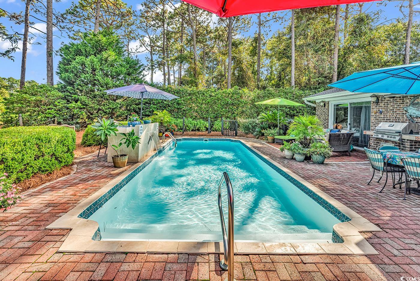 Welcome to 375 Old Ashley Loop, where a new roof (2024) and a sparkling heated saltwater pool with tranquil waterfall set the tone for this beautifully maintained all-brick home in the secluded Hagley Estates Community. Perfectly positioned along the 9th Fairway of the scenic Founders Club, this custom-built residence reflects true pride of ownership, from its manicured landscaping to its thoughtfully designed floor plan featuring two spacious, updated primary suite - ideal for providing guests with their own private retreat. A third guest bedroom and full bath offer additional comfort for family and visitors. Elegant updates include ceramic tile flooring and stunning bamboo hardwood flooring throughout - eliminating any concerns for carpet maintenance. The tastefully renovated kitchen shines with quartz countertops, newer stainless-steel appliances, induction cooktop, coffee bar, and a stylish tile backsplash, with easy flow to the great room and dining area, enhanced with plantation shutters and a cozy electric fireplace - perfect for relaxed coastal evenings. Everyday convenience is elevated with a spacious laundry room, full-size washer and dryer, and a heated and cooled oversized garage. Step into the fully enclosed three-season room for year-round enjoyment, or retreat to the backyard oasis where the heated saltwater pool is framed by mature trees. The expansive paver-lined patio offers generous space for dining, lounging, and gatherings, complete with a bar and multiple seating areas designed for effortless outdoor living. Hagley Estates is one of Pawleys Islands most desirable neighborhoods, offering a relaxed coastal lifestyle with no mandatory HOA. Just minutes away, launch your boat from the Hagley public ramp to explore the Waccamaw River, or take in unforgettable sunsets on the water. Youll also be close to renowned golf courses, incredible restaurants, unique shops, Myrtle Beach Airport, and miles of pristine ocean beach to explore and enjoy!