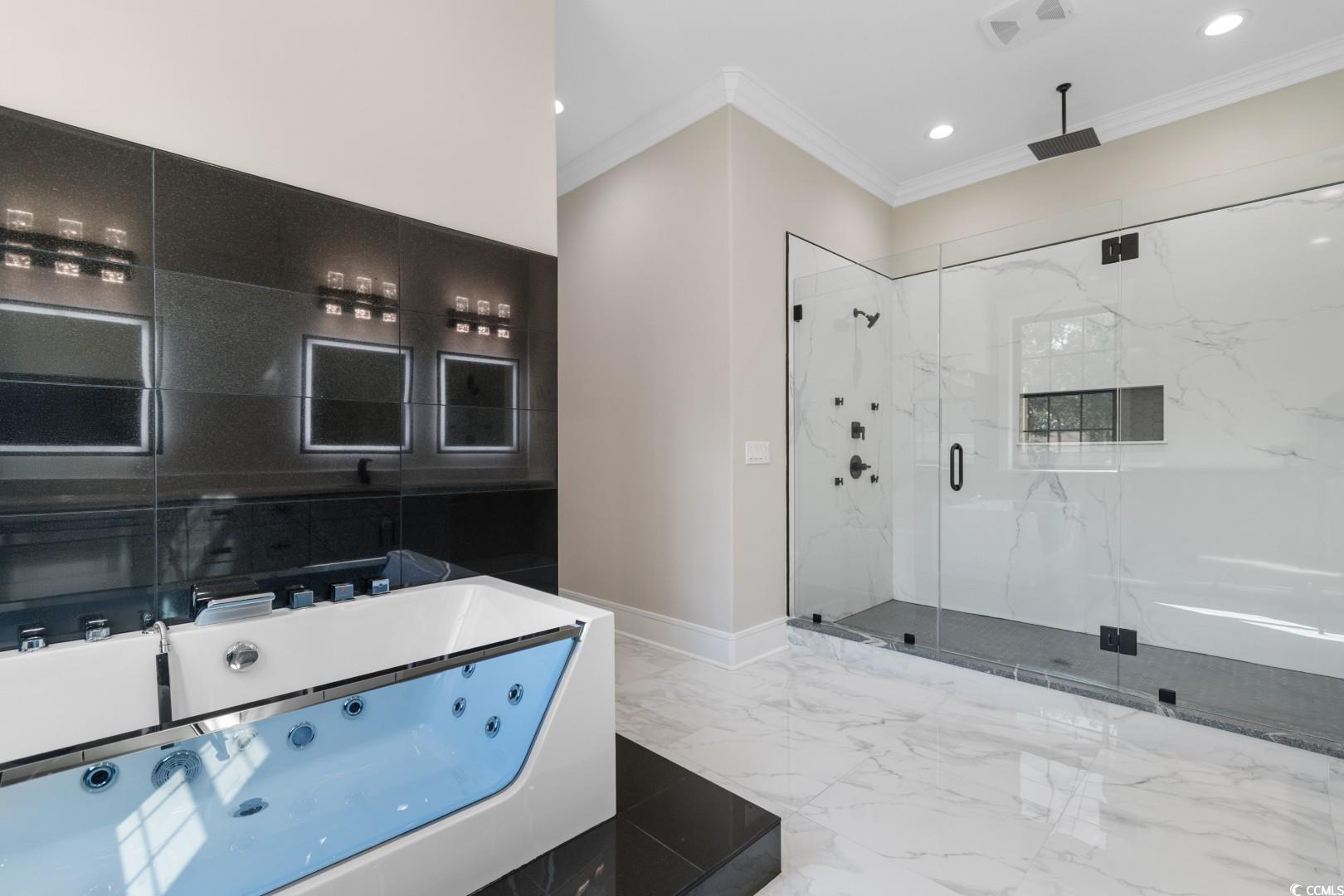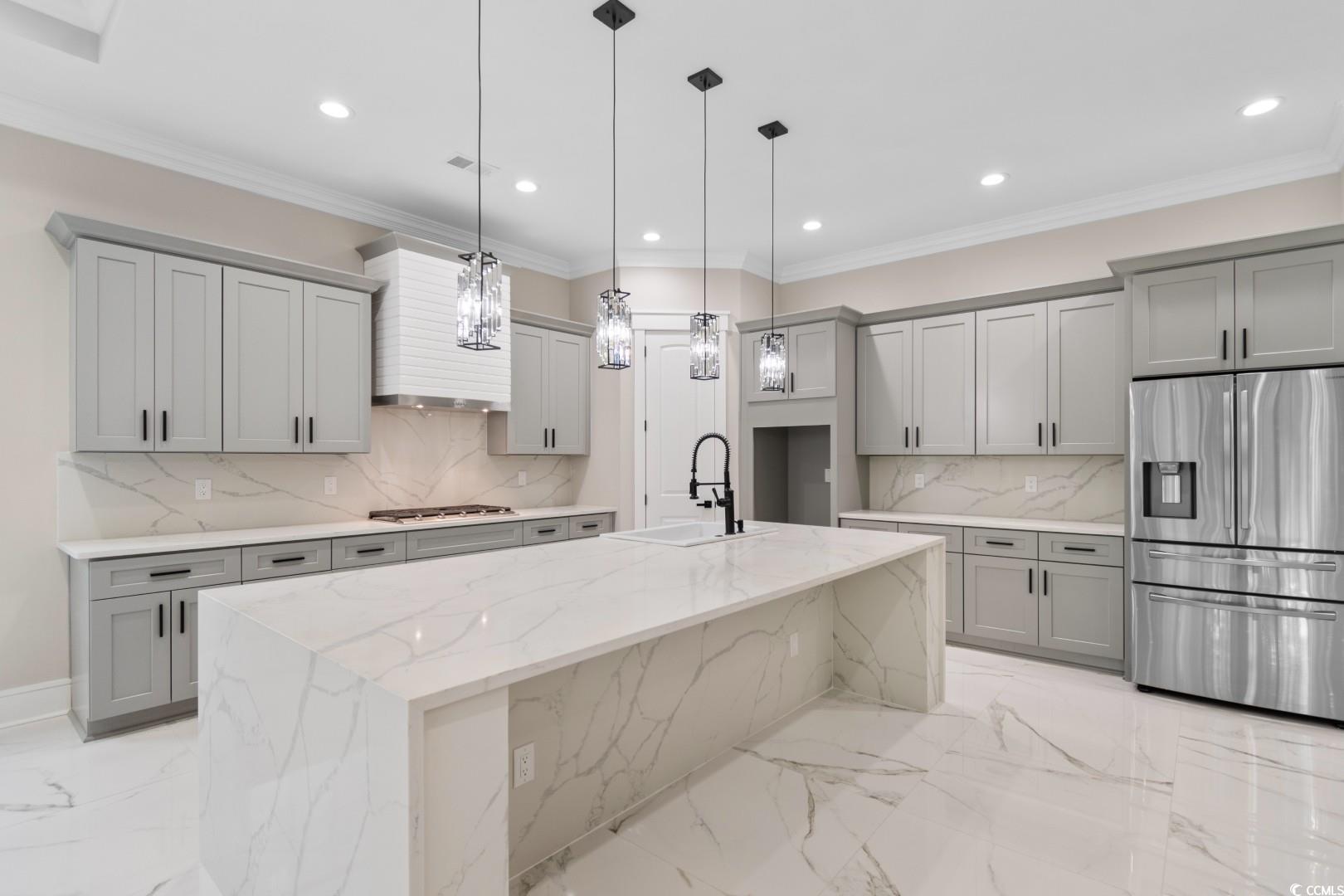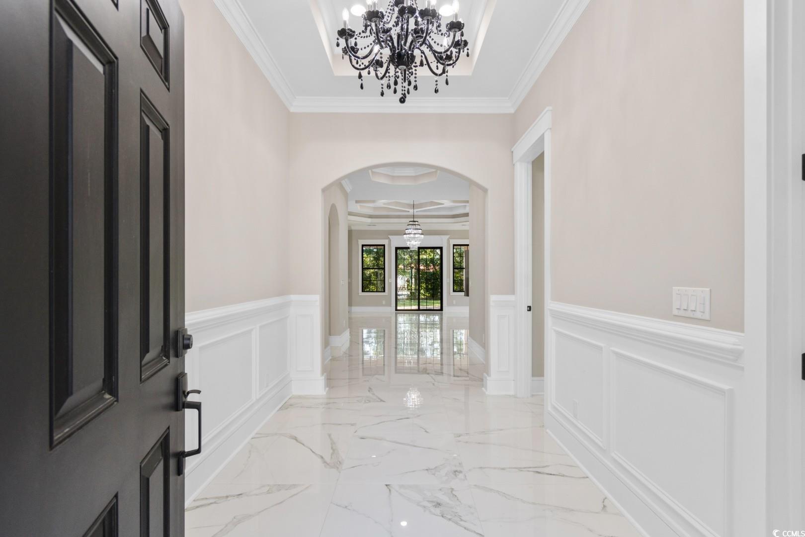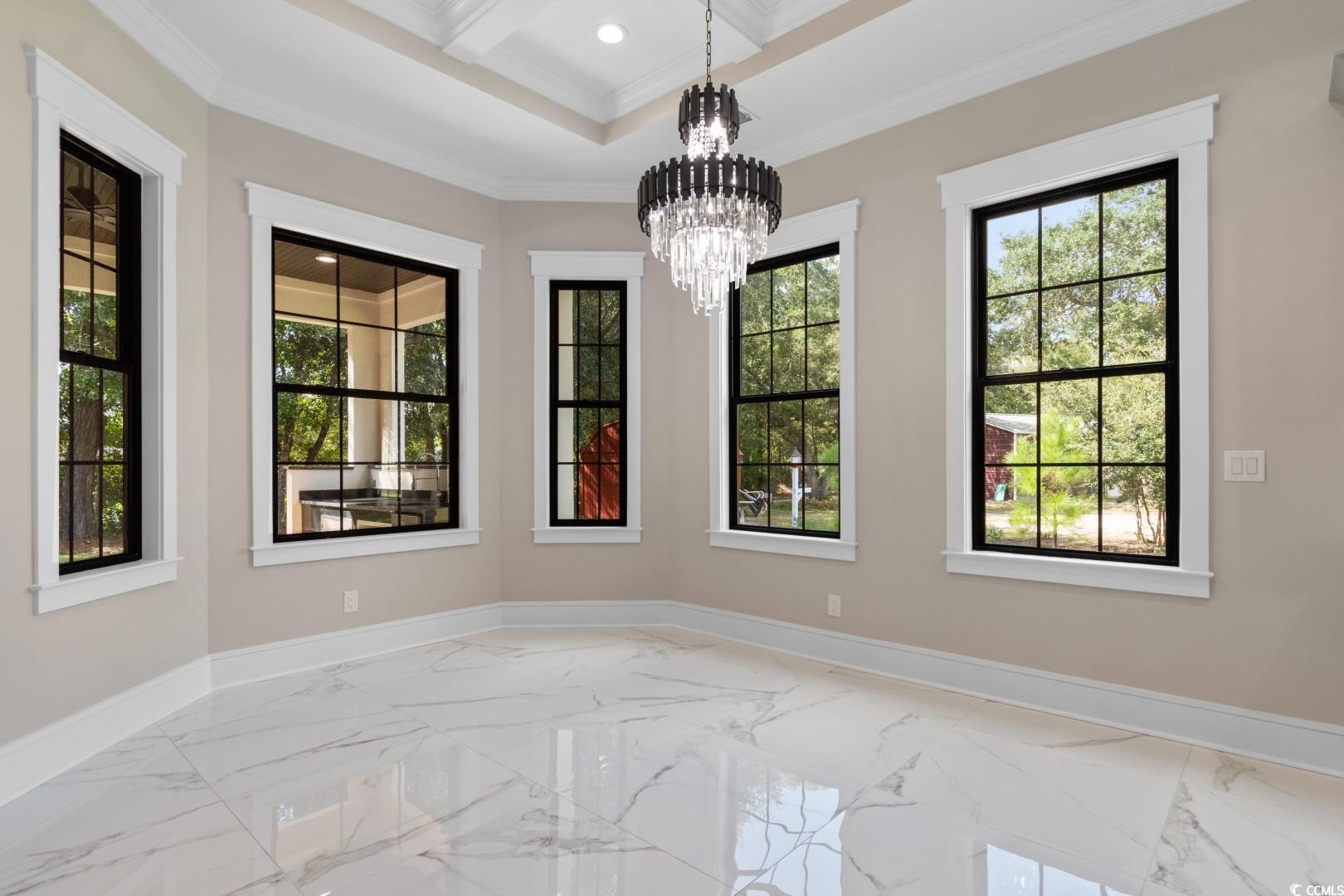 Welcome to this stunning Mediterranean style newly built 4 bedroom, 3 bathroom home in the heart of Little River, blending modern style, everyday comfort, and thoughtful design. From the moment you walk in, you're greeted by a spacious foyer that welcomes you to the open-concept living area featuring 12-foot ceilings, a cozy fireplace with built in , porcelain tile through, and custom tray & coffered ceilings that elevate the space with a touch of luxury. This expansive chef's kitchen showcases, custom cabinetry, stunning quartz countertops with a full-height backsplash that matches the countertops, a large waterfall island , high-end stainless steel appliances, and a generous pantry. Designed perfectly for everyday function with upscale style for effortless entertaining. Retreat to the spacious master suite, boasting elegant tray ceilings, two walk-in closets with custom shelving, and a spa-inspired bathroom with an oversized slab walk-in shower, double vanities, and a relaxing jetted tub. Two of the additional bedrooms are joined by a Jack-and-Jill bathroom with a double vanity, tray ceilings, and large custom closets. The fourth bedroom has an en-suite bathroom which is perfect for guests or a home office. The roomy laundry room has plenty of cabinets for storage, counterspace for laundry days and a sink. Step outside to the spacious covered back porch, which features an outdoor kitchen area with granite countertops and a built-in stainless steel refrigerator sets the stage for unforgettable gatherings and weekend cookouts! This home features a spacious three-car side garage with epoxied flooring. Additionally, this breathtaking home offers all high end chandeliers, the guest bedroom ceilings fans have speakers and multicolor lights, LED vanity mirrors, built in exterior light surround the home and so much more! Located within a short to the beach and all that the Grand Strand has to offer! Don't miss out on this exceptional property, schedule your showing today!