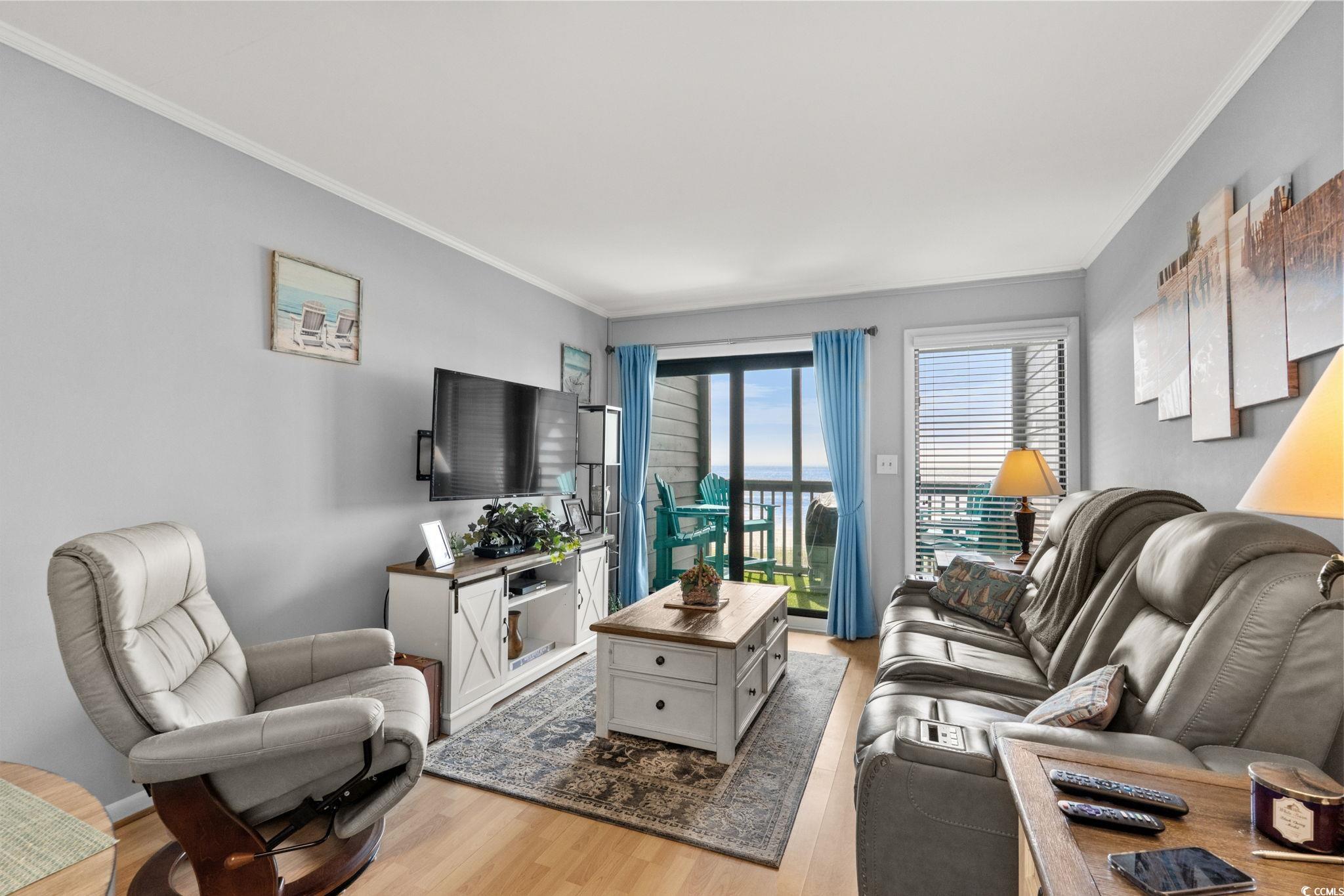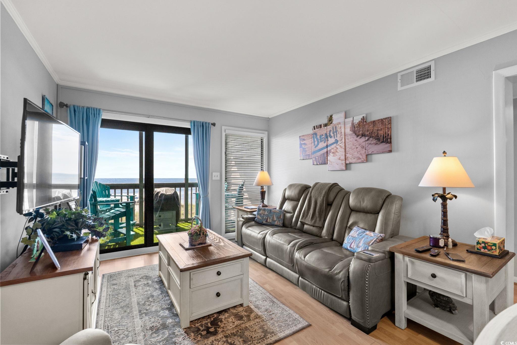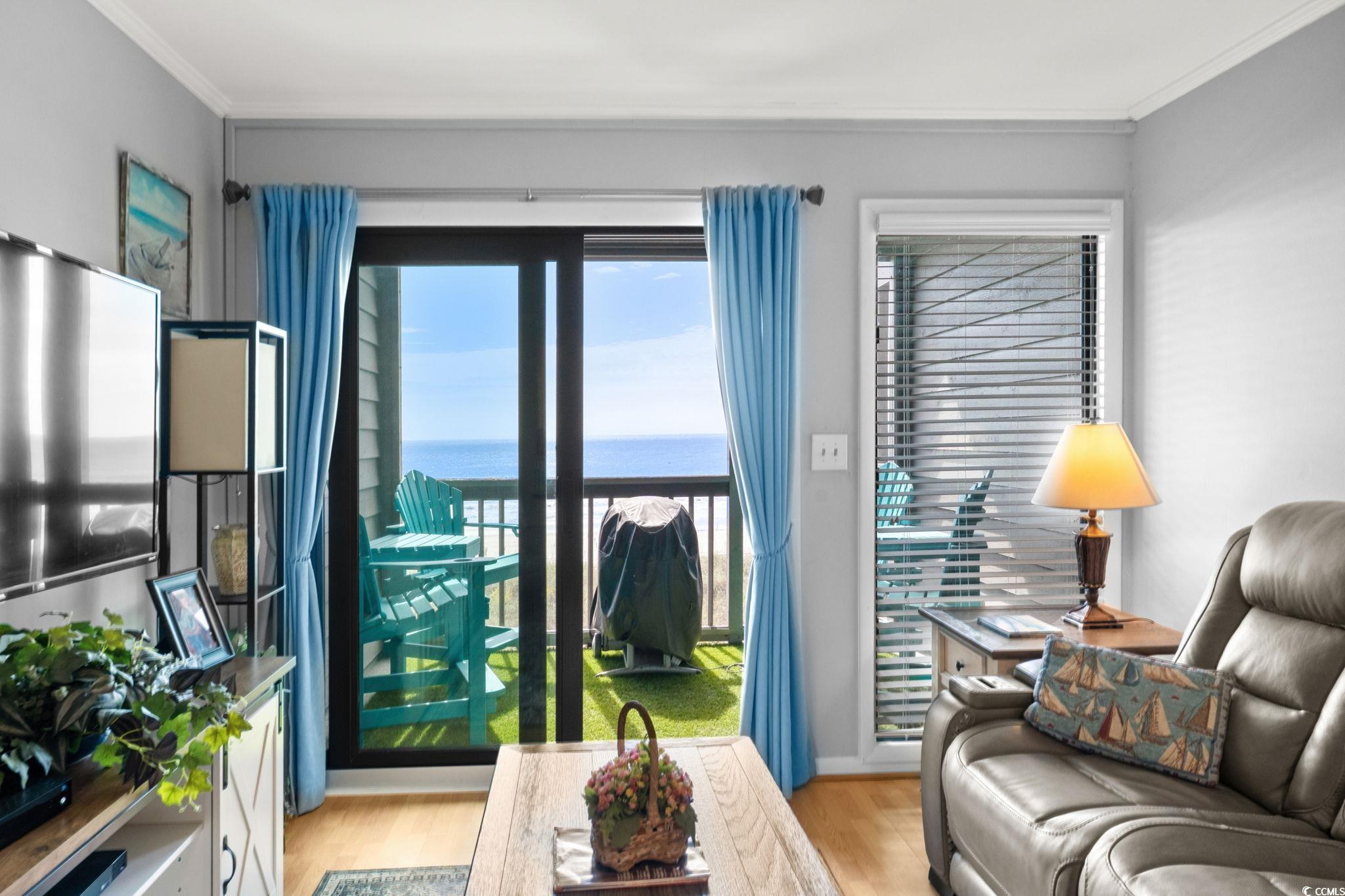 Imagine waking up to the soothing sound of waves and panoramic ocean views from your own private balcony. This furnished, oceanfront condo on the 2nd floor in Tilghman Beach and Racquet is located in the highly-desirable Ocean Drive section of North Myrtle Beach. This building is a favorite for owners and guests alike offering an elevator, outdoor pools, kiddie pools, hot tubs, tennis court, and a grilling area. With direct beach access, outdoor shower, and covered parking, every detail is designed to enhance convenience and relaxation. Main Street is just steps away, where dining, shopping, and live entertainment bring the best of North Myrtle Beach right to your doorstep. Inside, the condo is designed to feel light and inviting, featuring a neutral color palette, tile and laminate flooring, and an open layout that highlights the ocean view. The kitchen flows seamlessly into the living area so you can cook while enjoying the scenery or entertaining guests. Both the living room and the primary suite open to private balconies, creating the perfect setting for quiet mornings or evenings overlooking the shoreline. The updated bathrooms feature modern vanities and tiled showers, and the wet bar with commercial ice maker is an ideal touch for entertaining. Convenience is maximized with an in-unit washer and dryer as well as separate owner closets for secure storage. Sliding glass doors and windows have been replaced. Newer HVAC and water heater. HOA includes building insurance, water, sewer, trash, internet, cable, and more! With its prime location, resort-style amenities, and well-appointed interior, this oceanfront retreat is equally suited as a full-time residence, a vacation getaway, or rental property. Your North Myrtle Beach address is a short drive from Grand Strand attractions such as Barefoot Landing, Duplin Winery, world-class dining, shopping, and boutiques. Easy access to Hwy 17, 22, and 31 are close by for easy travel. Rest easy knowing you are only a short drive from medical centers, doctors offices, pharmacies, banks, post offices, and grocery stores. All information should be verified and approved by the buyer. Acreage is approximate and not guaranteed. The buyer is responsible for verification.