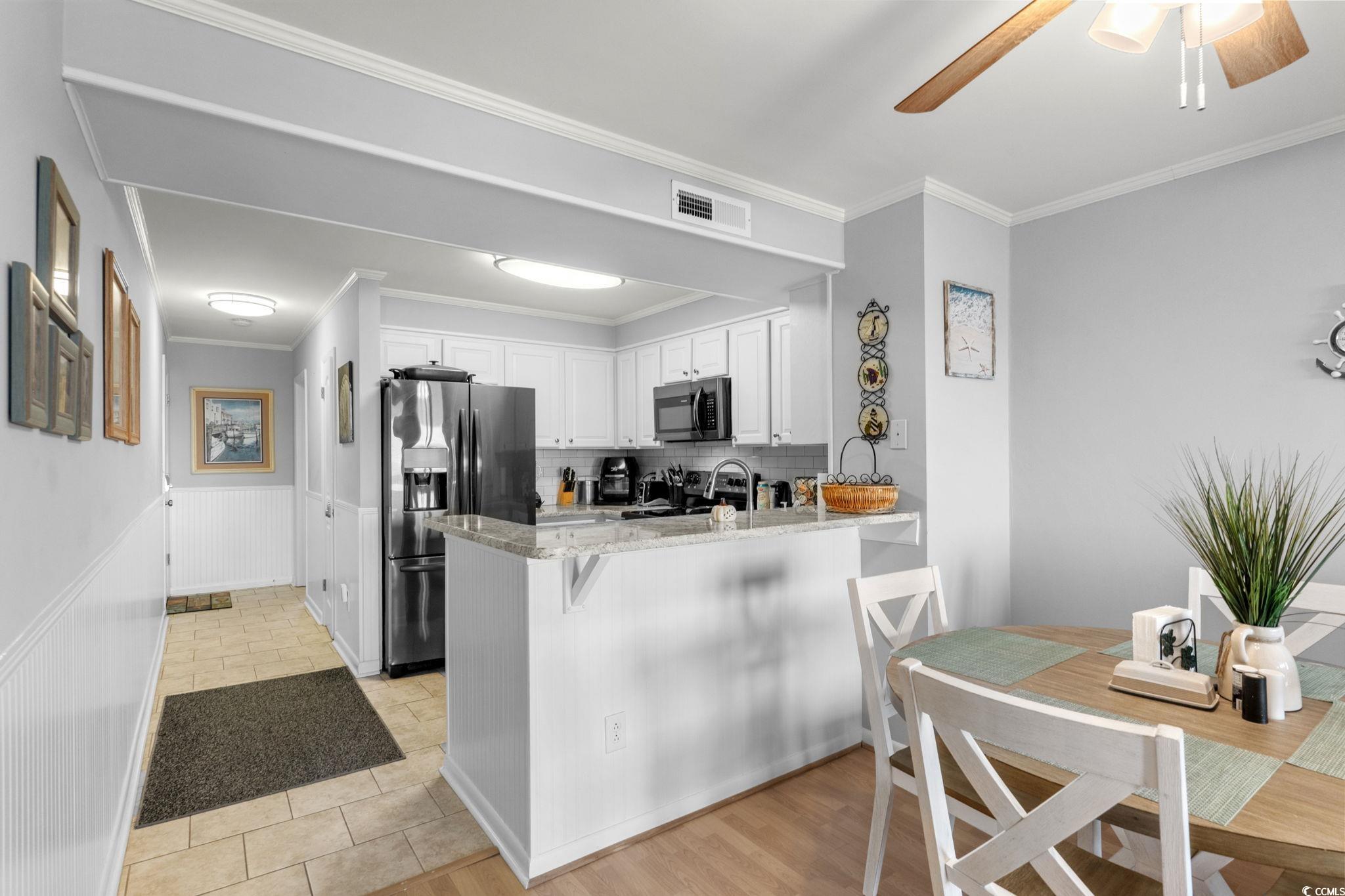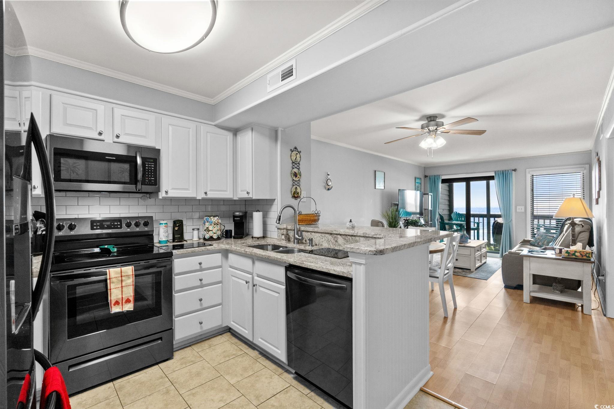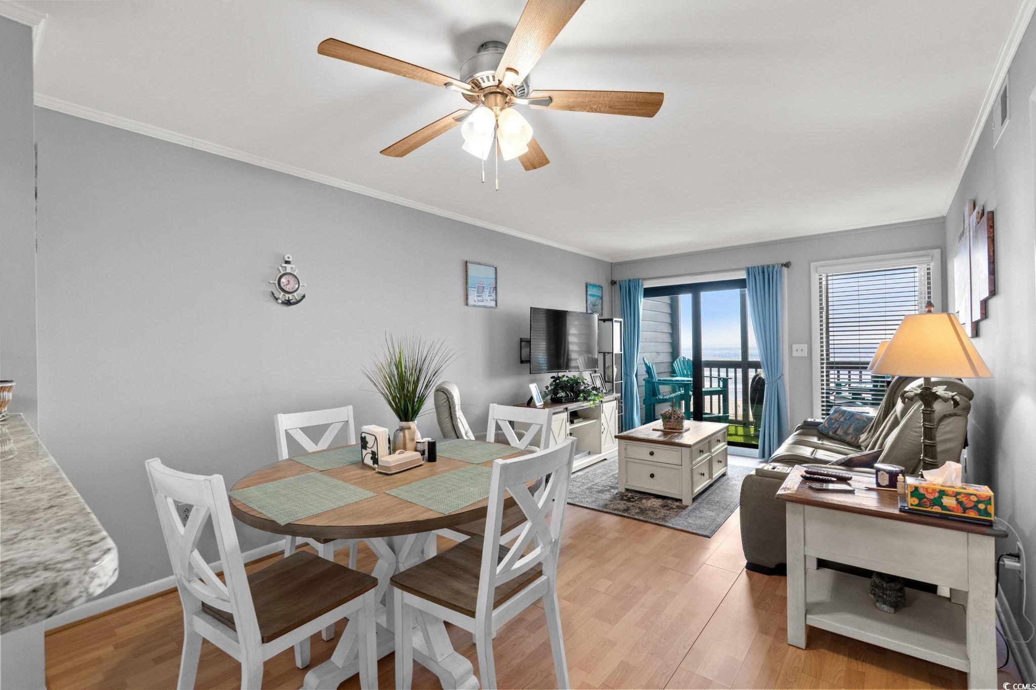 Imagine waking up to the soothing sound of waves and panoramic ocean views from your own private balcony. This furnished, oceanfront condo on the 2nd floor in Tilghman Beach and Racquet is located in the highly-desirable Ocean Drive section of North Myrtle Beach. This building is a favorite for owners and guests alike offering an elevator, outdoor pools, kiddie pools, hot tubs, tennis court, and a grilling area. With direct beach access, outdoor shower, and covered parking, every detail is designed to enhance convenience and relaxation. Main Street is just steps away, where dining, shopping, and live entertainment bring the best of North Myrtle Beach right to your doorstep. Inside, the condo is designed to feel light and inviting, featuring a neutral color palette, tile and laminate flooring, and an open layout that highlights the ocean view. The kitchen flows seamlessly into the living area so you can cook while enjoying the scenery or entertaining guests. Both the living room and the primary suite open to private balconies, creating the perfect setting for quiet mornings or evenings overlooking the shoreline. The updated bathrooms feature modern vanities and tiled showers, and the wet bar with commercial ice maker is an ideal touch for entertaining. Convenience is maximized with an in-unit washer and dryer as well as separate owner closets for secure storage. Sliding glass doors and windows have been replaced. Newer HVAC and water heater. HOA includes building insurance, water, sewer, trash, internet, cable, and more! With its prime location, resort-style amenities, and well-appointed interior, this oceanfront retreat is equally suited as a full-time residence, a vacation getaway, or rental property. Your North Myrtle Beach address is a short drive from Grand Strand attractions such as Barefoot Landing, Duplin Winery, world-class dining, shopping, and boutiques. Easy access to Hwy 17, 22, and 31 are close by for easy travel. Rest easy knowing you are only a short drive from medical centers, doctors offices, pharmacies, banks, post offices, and grocery stores. All information should be verified and approved by the buyer. Acreage is approximate and not guaranteed. The buyer is responsible for verification.