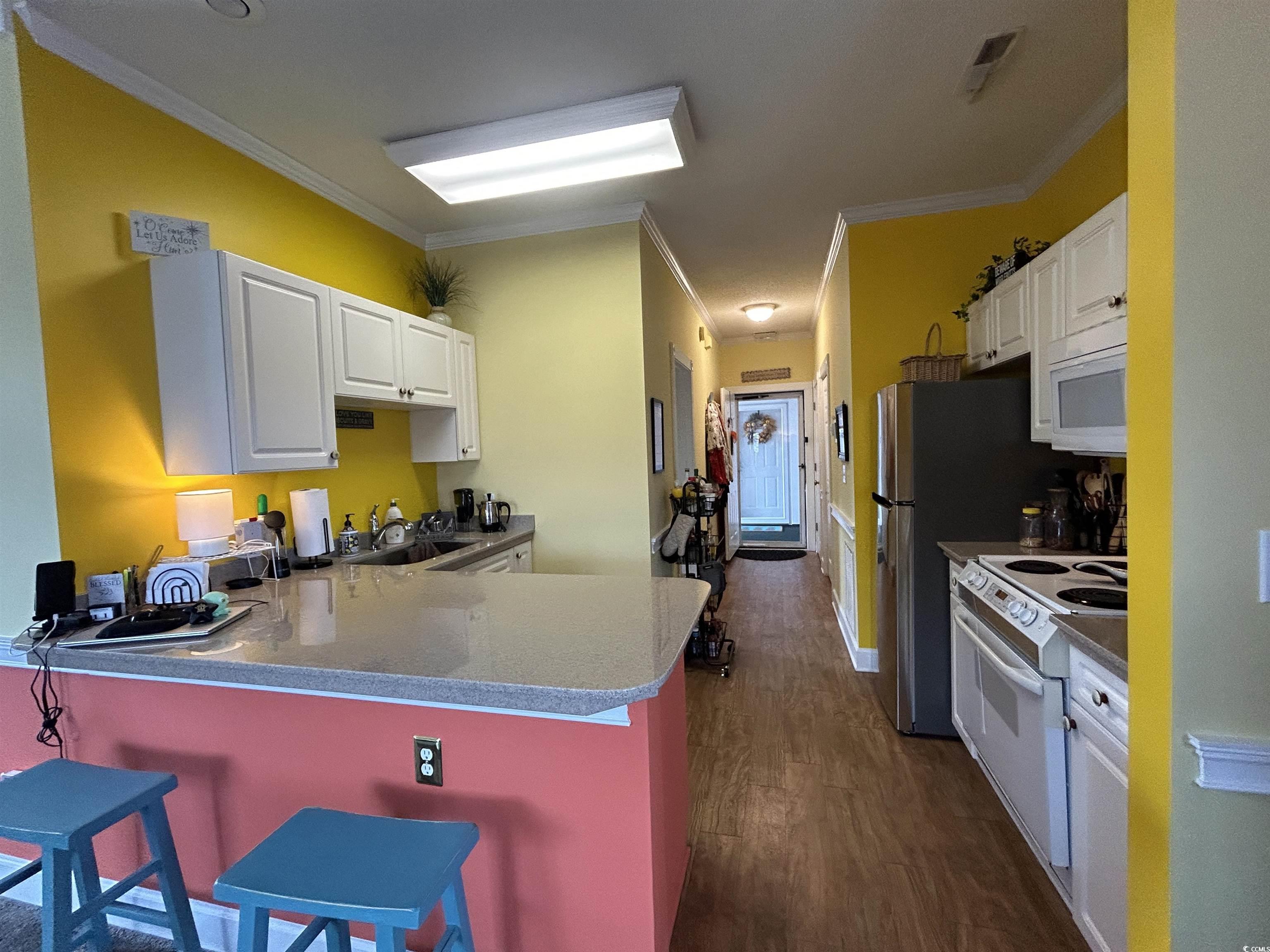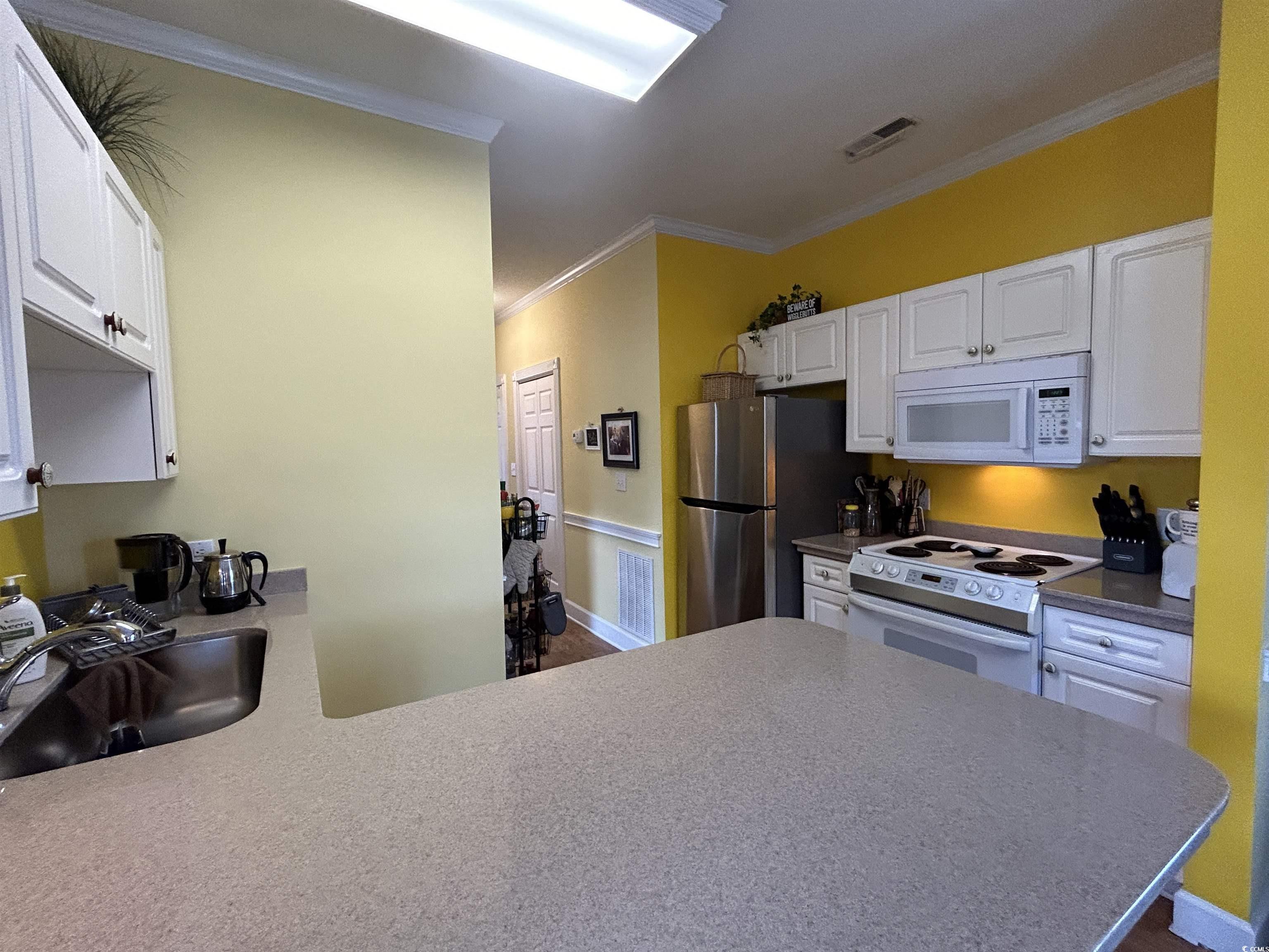 LARGE PRISTINE LUXURY TOP FLOOR CORNER VILLA WITH TONS AND TONS OF LIGHT AND IN EXCELLENT CONDITION. THIS VILLA HAS VAULTED CEILINGS WITH CHAIR RAILING IN THE FAMILY ROOM. PRIVATE BALCONY OVERLOOKING COURTYARD. ELEVATOR FOR EASY ACCESS. PEACEFUL LOCATION CLOSE TO SEVERAL POOLS DRAPED BY PALMS. EASY ACCESS TO 36 HOLE GOLF COURSE AND DRIVING RANGE AT THE MYRTLEWOOD GOLF COURSE. SHORT 1.2 MILE DRIVE TO OUR BEAUTIFUL BEACHES OF THE GRAND STRAND. 1 MILE OF ONE OF THE LARGEST ENTERTAINMENT VENUES ALONG THE EAST COAST - BROADWAY AT THE BEACH WITH TONS OF SHOPPING, THEATER, NITE LIFE, RESTAURANTS, AND JUST TONS OF AMUSEMENTS FOR ALL AGES!