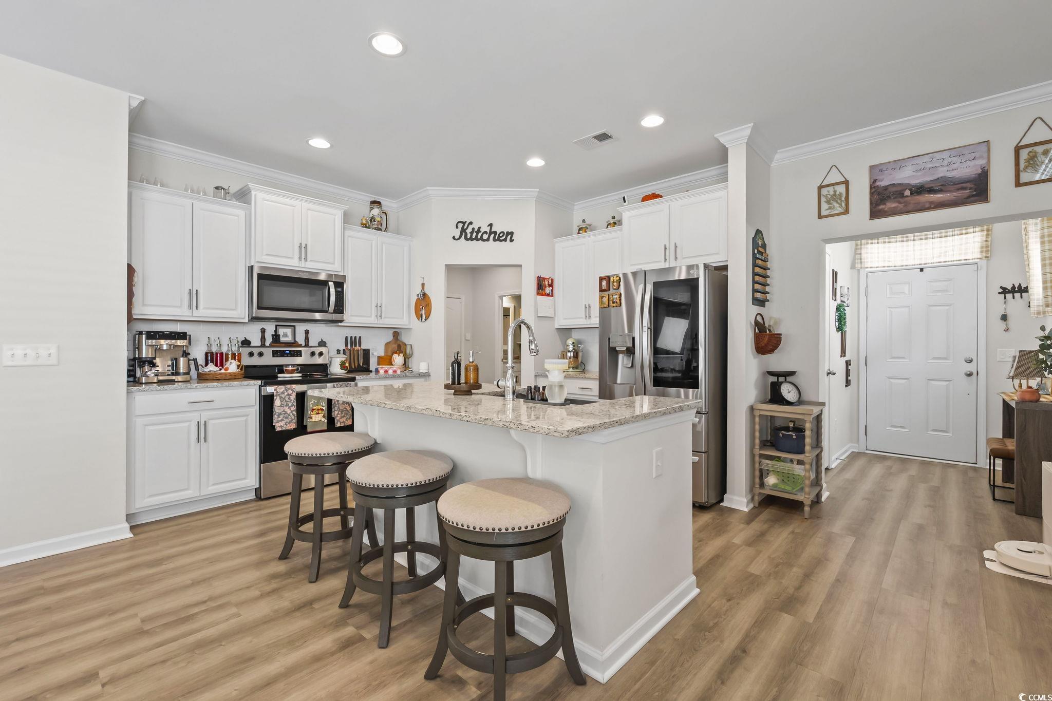 Welcome to this spacious 4 bedroom, 3 bathroom home located in the highly sought-after Riverfront community of Grissett Landing. This property is not in a flood zone and offers a large, flexible layout designed for todays lifestyle. The open-concept main level features a modern kitchen with granite countertops, stainless steel appliances, a center island, and pantry, flowing seamlessly into the dining and living areas. The split-bedroom plan provides privacy with a bright primary suite, complete with a walk-in closet and en-suite bath with dual sinks and walk-in shower. Two additional bedrooms, a full bath, laundry room, and versatile flex space complete the first floor. Upstairs, youll find a loft, another large bedroom, and a full bath that work perfectly as a guest suite, media room, or home office. Out back, enjoy the fully fenced yard with covered patio, ideal for entertaining, gardening, or relaxing by the firepit. This home comes with low HOA fees and community access to the Waccamaw River with a private dock for boating, fishing, or kayaking. Located just minutes from downtown Conway and with easy access to Hwy 22, youll be close to Myrtle Beach while still enjoying the quiet charm of a riverfront neighborhood. This move-in ready home offers space, privacy, and extras you wont want to miss.
