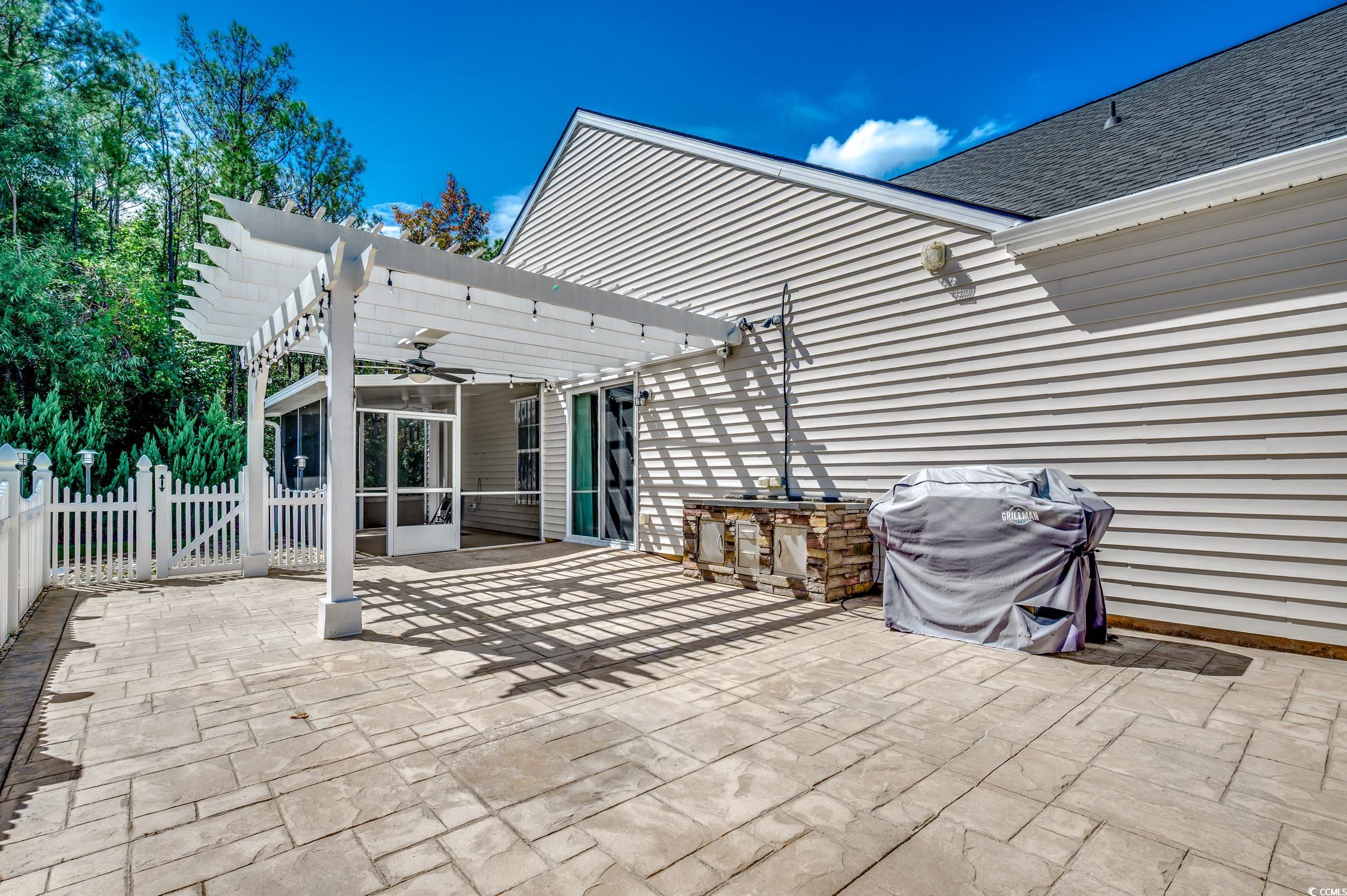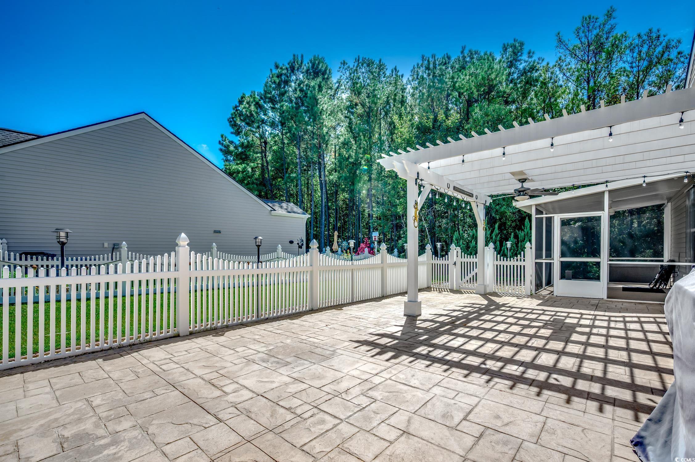 Welcome to one of Carolina Crossings most private, generous lotsthis stunning Fulton model 4 BR / 2 BA single family home is loaded with high-end touches and thoughtful upgrades. Step into a grand open layout accentuated by cathedral ceilings, 9-ft ceilings and 8-ft doors, and gleaming engineered hardwood floors. The heart of the home shines with a gas stove, stainless steel appliances, granite countertops, pantry, and a walk-in shower that gives your daily routine a lift. Outside is your own oasis: a screened porch, large stamped concrete patio with pergola, curbed landscape edges and walkways, and a propane gas line ready for grilling. A full-house Generac generator powered by a buried propane tank gives true peace of mind. In 2024 the roof was replaced; in 2025 the HVAC is brand new. Youll also enjoy a charming brick front, front porch, pristine white vinyl fencing, and the lush, private yard you wont find everywhere. This home doesnt just sit in Carolina Crossing it stands out. Dont miss your chance to live in comfort, style, and privacy.