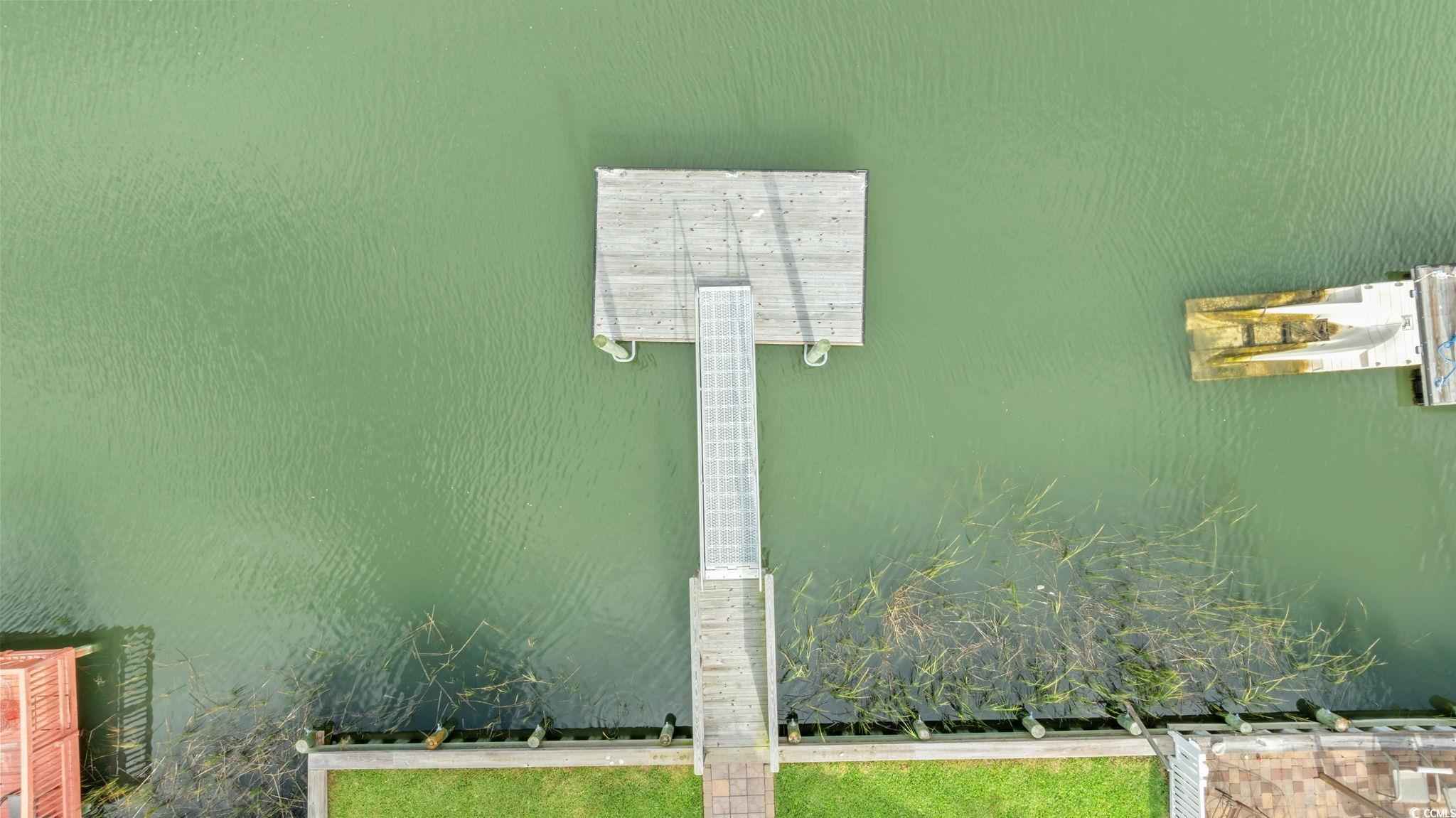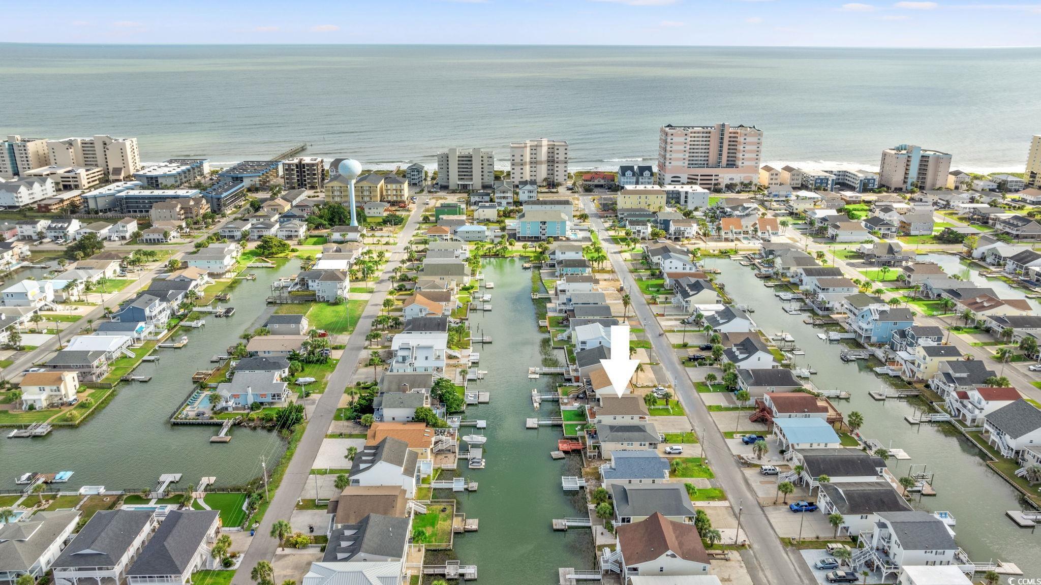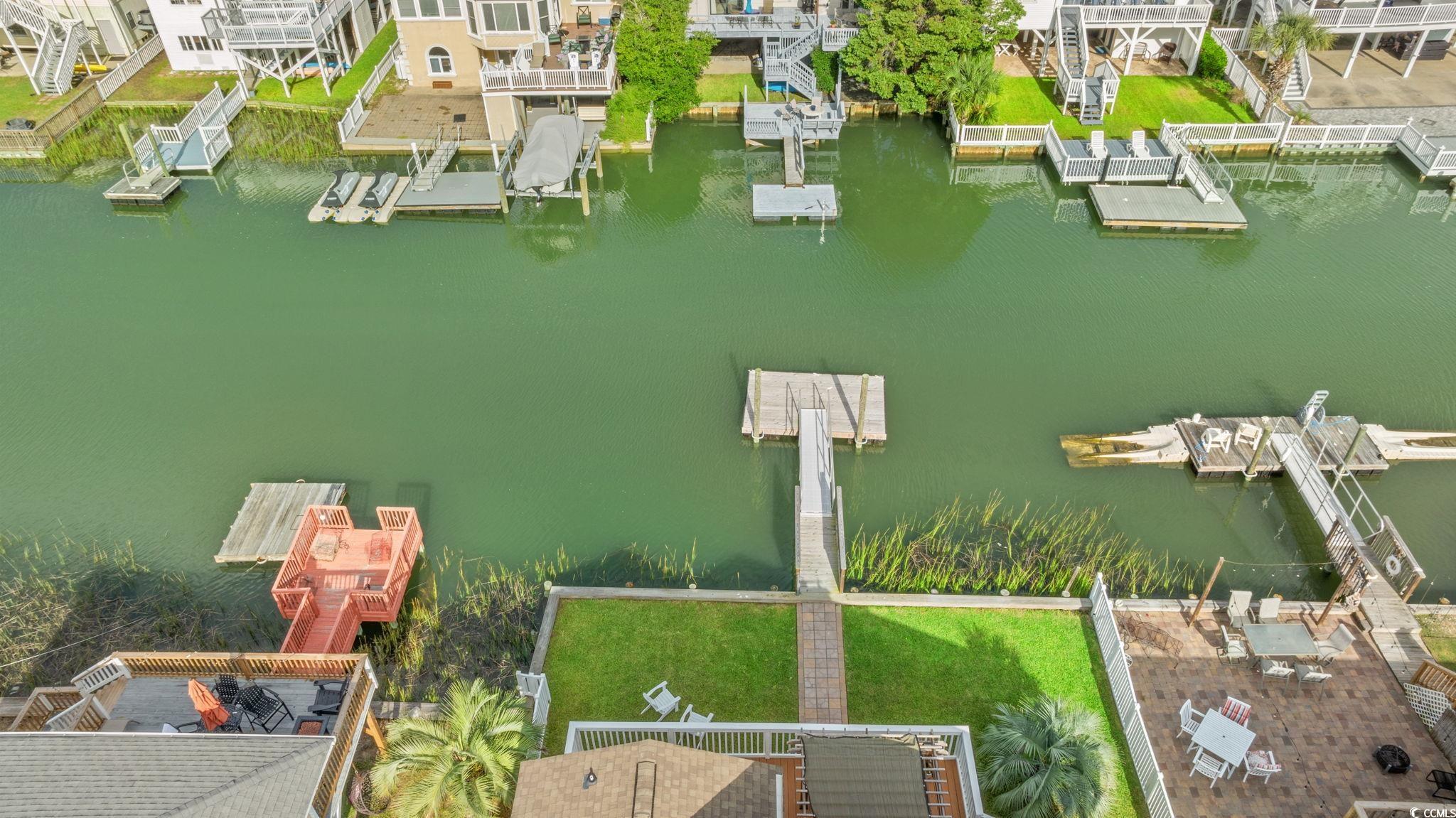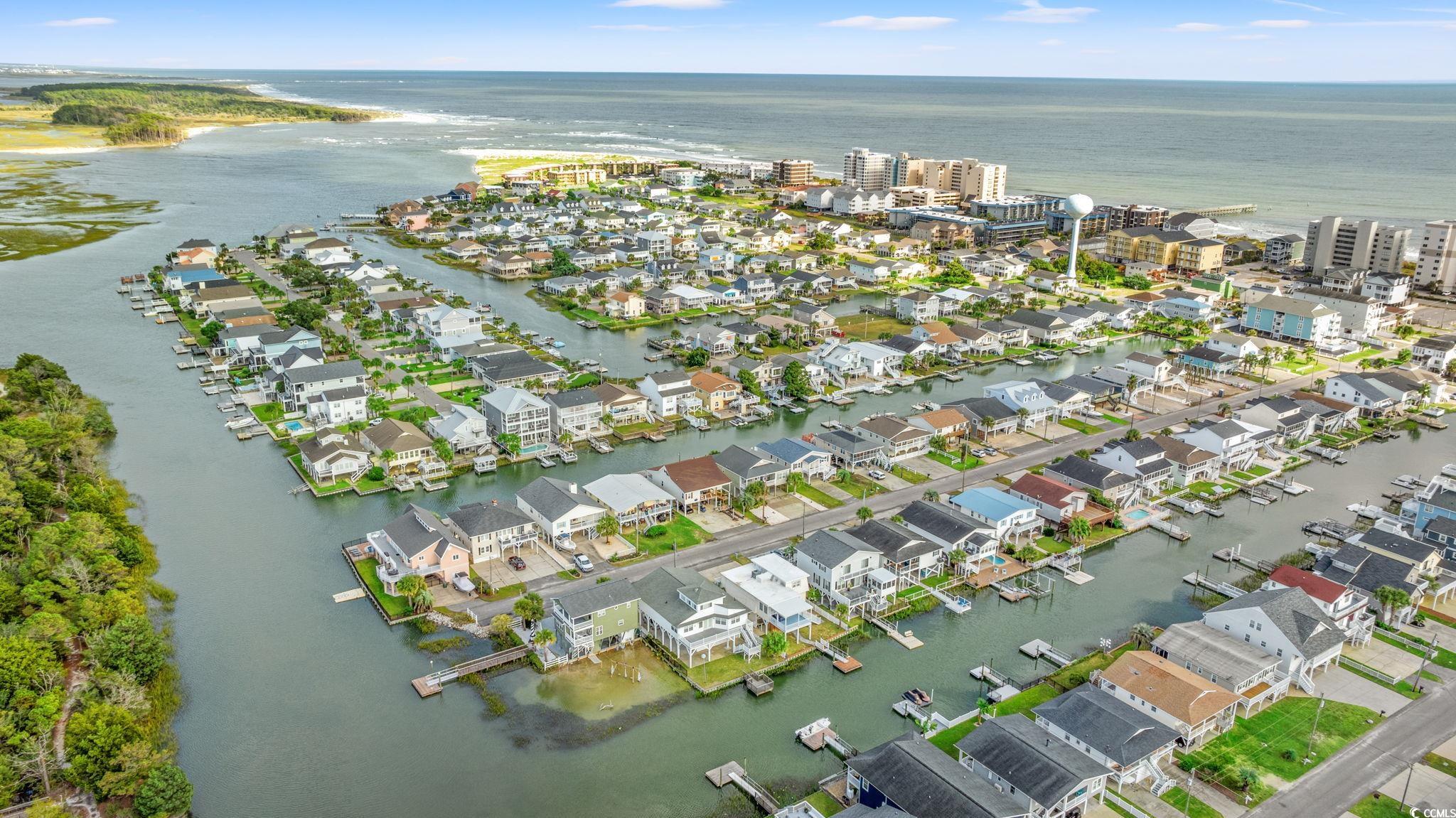 CHANNEL LOT! Here's your chance to own a charming beach house two blocks from the ocean,on the ""inside of Cherry Grove"", near a bird sanctuary! This elevated beach house is a single level floorplanthat lives largewith 4 bedrooms , 2 baths, eat-in kitchen, two decks and a large entertaining patio and ""extended back yard"". The living and dining area are the heart of the home withglass doors creating an indoor/outdoor living space opening onto a walkout deck with views!Lots of upgrades to see! Gorgeous, maintenance-free wood-looking tile floors throughout the home,new seawall and boat dock built in 2024, paver walkway to dock, two new gas tankless water heaters, and a gas line for gas grill connection. Well-manicured yard and covered patio entertaining area are fully fenced in and the ground level storage area has tons of storage featuring enclosed golf cart parking, a handy half bath, laundry area, and outdoor shower. This home has no HOA and plenty of parking for a boator RV. Potential rental projections included in documents. Don't delay on this incredible opportunity!