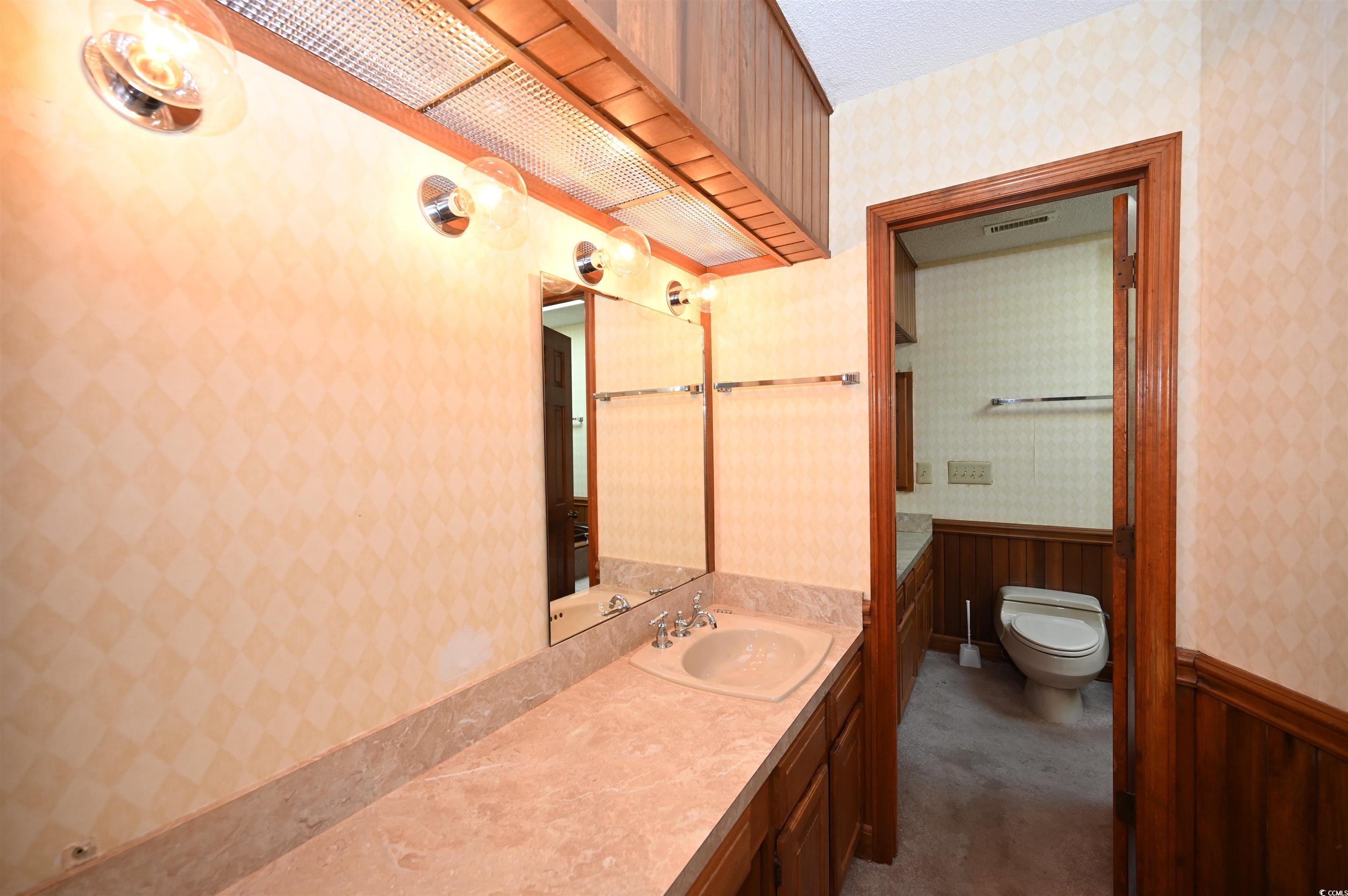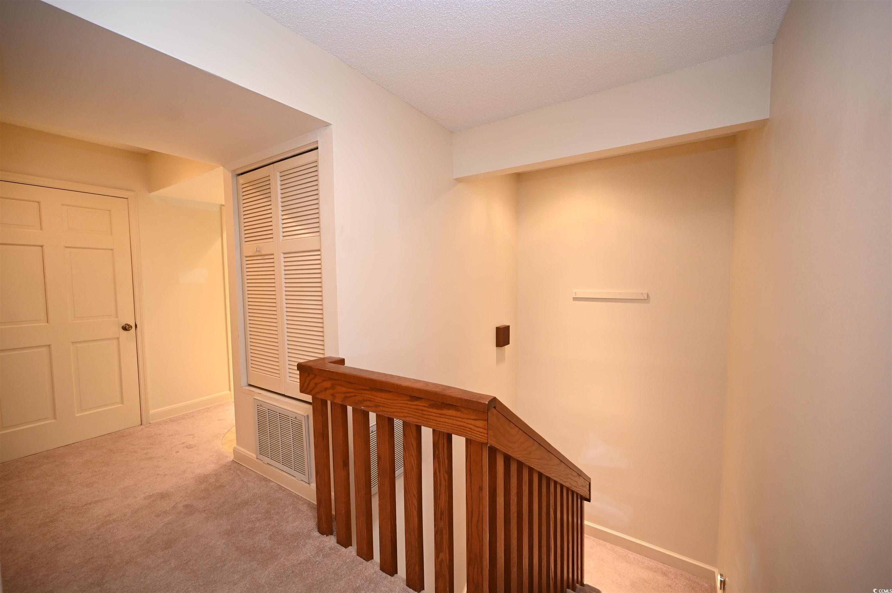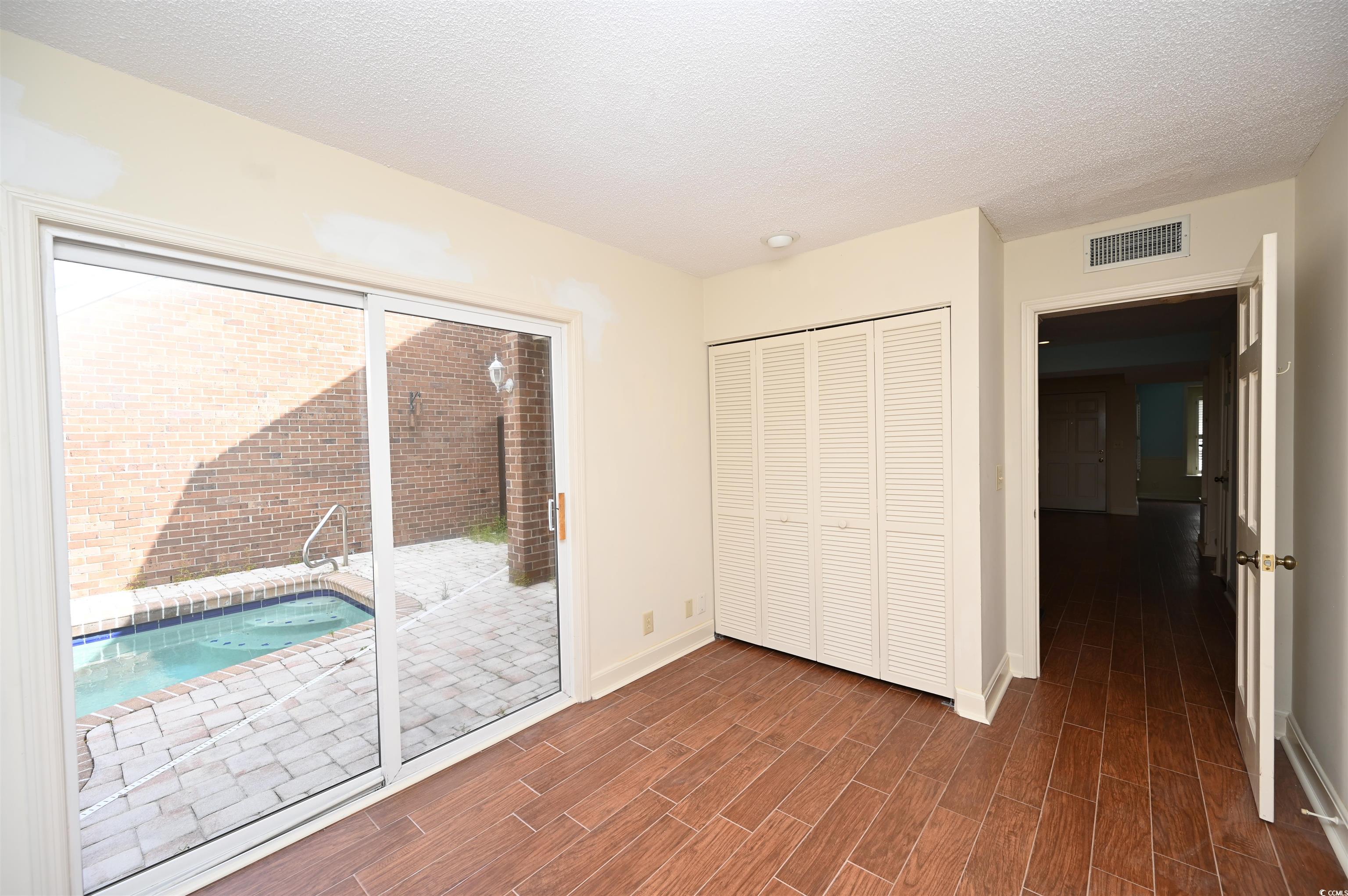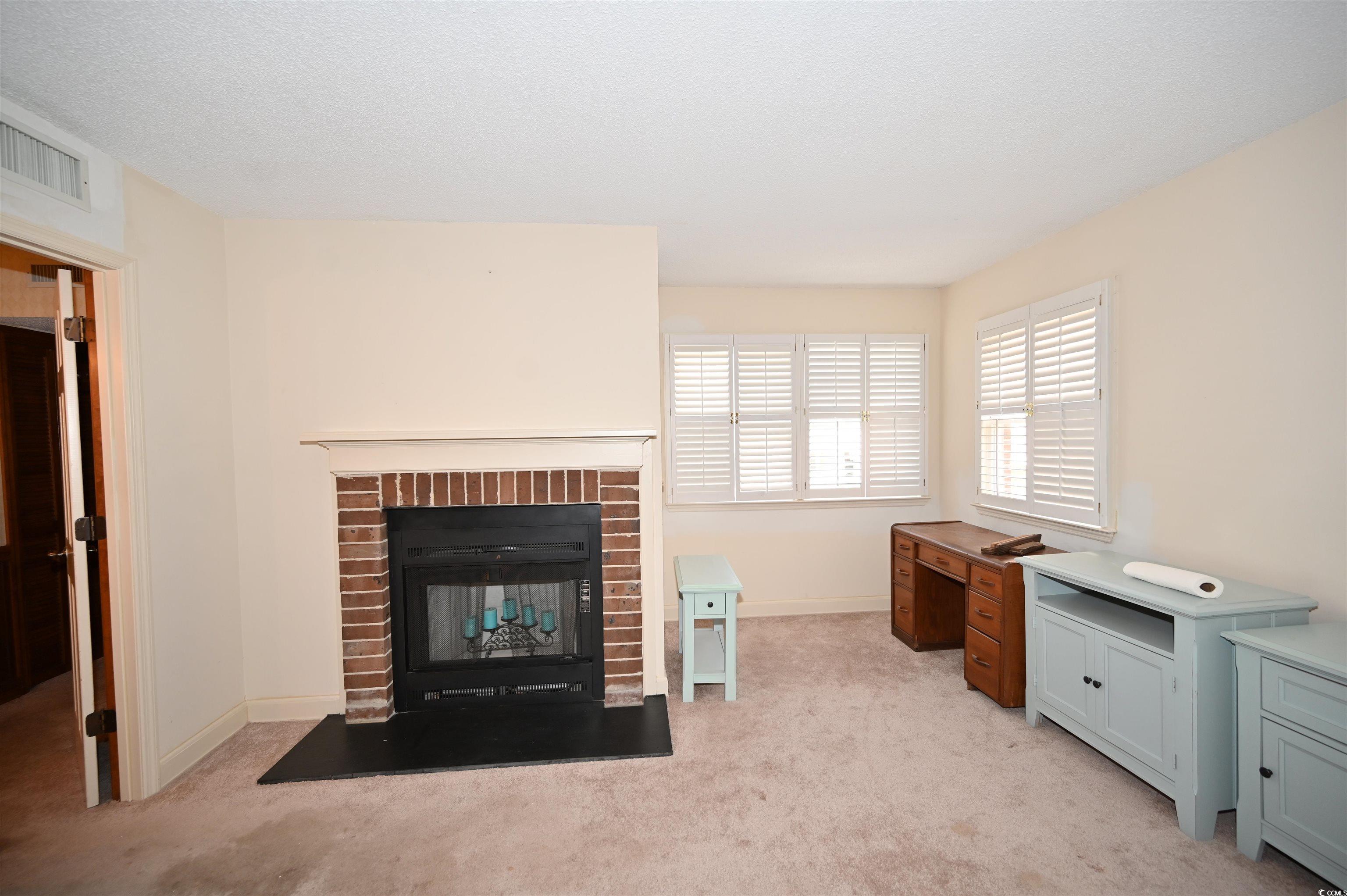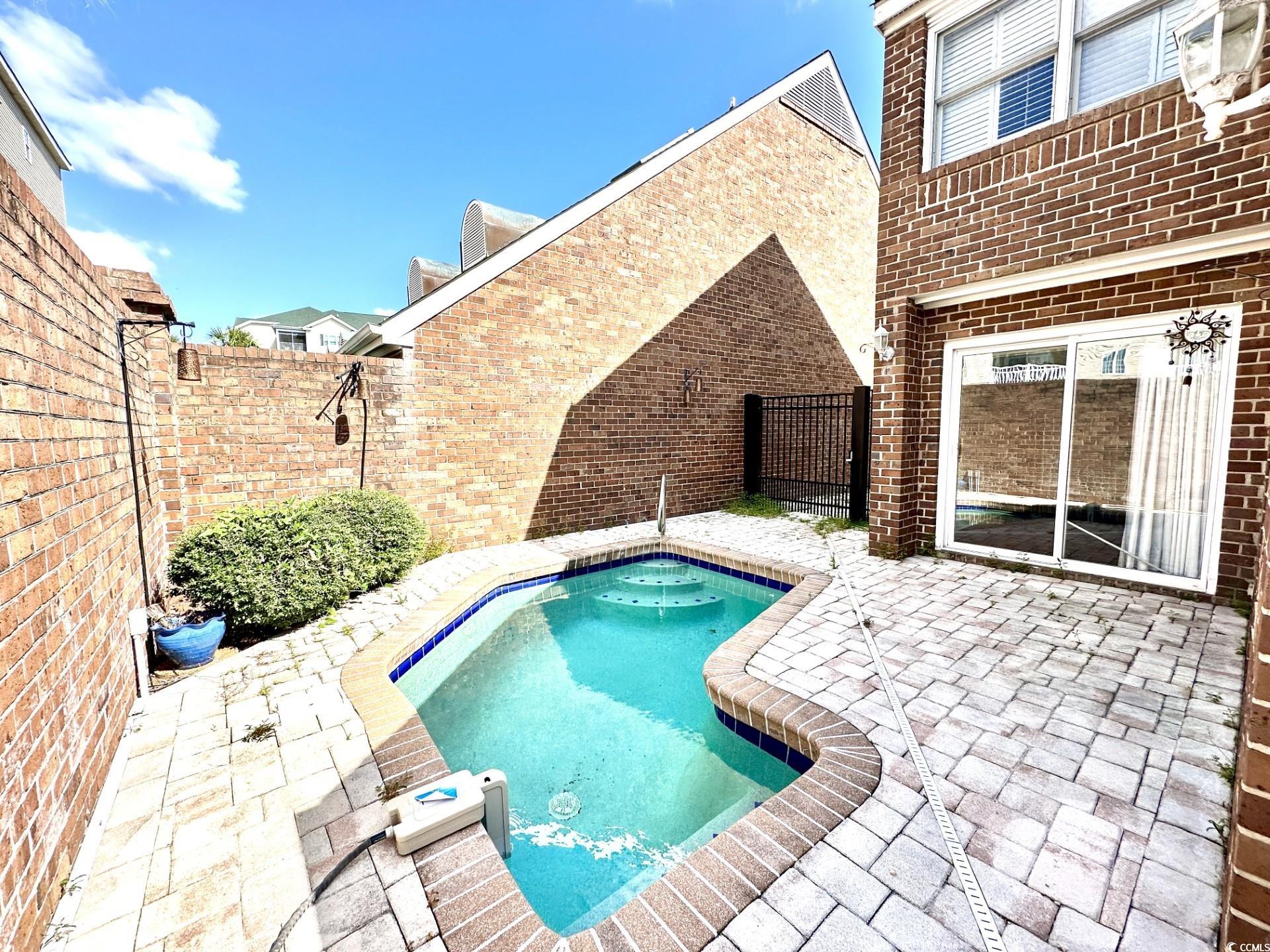 DIAMOND IN THE ROUGH! ONLY 2 BLOCKS TO THE BEACH! This Three bedroom, two full bathroom all brick home is tucked away in Courtyard Villas By The Sea, a charming community with only 10 unique homes. With tons of potential, it features a cozy fireplace in the family room and another in the spacious upstairs master suite. Two bedrooms and a full bath are located on the first floor, while the master suite upstairs boasts double sinks, a separate shower, and a jacuzzi tub. Youll also find a convenient laundry room with ample storage. The backyard offers your own private oasis with a built-in pool, which is perfect for relaxing or entertaining. Just a short walk to the beach, Ocean Drive, Main Street, and endless dining, shops, and entertainment. This home is a true Shaggers delight! Buyer is responsible for all measurement verifications. Dont wait! Schedule your showing today!