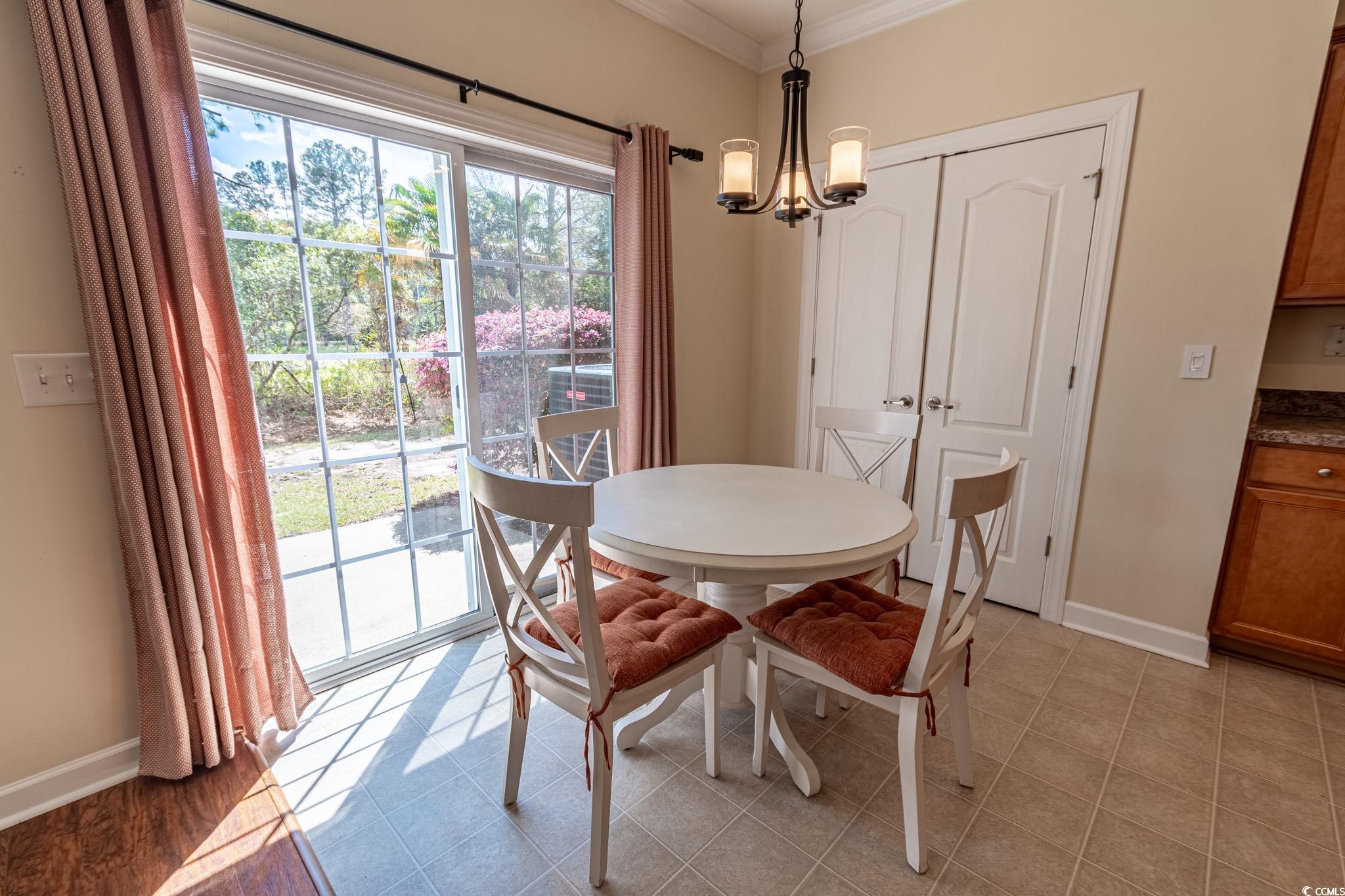 Spacious three-bedroom, two-and-a-half-bath townhouse with a two-car garage located in the desirable Fairways at Wild Wing community. The living room features vaulted ceilings and a ceiling fan, with LVP and laminate flooring throughout the main areas and cozy carpet in the bedrooms. The kitchen offers black appliances, a breakfast nook, work island, and pantry. A convenient laundry room and half bath are also located on the first floor. Upstairs, youll find all three bedrooms, including the primary suite with a ceiling fan, walk-in closet, and private bath featuring dual sinks, a tub/shower combination, and a linen closet. The two additional bedrooms each include ceiling fans and share a full hallway bath. Relax on the backyard patio while enjoying peaceful views of the tree line. Fairways at Wild Wing offers a community pool and is conveniently located near shopping, dining, entertainment, and just a short drive to the beach or downtown Conway. Square footage is approximate; buyers should verify.
