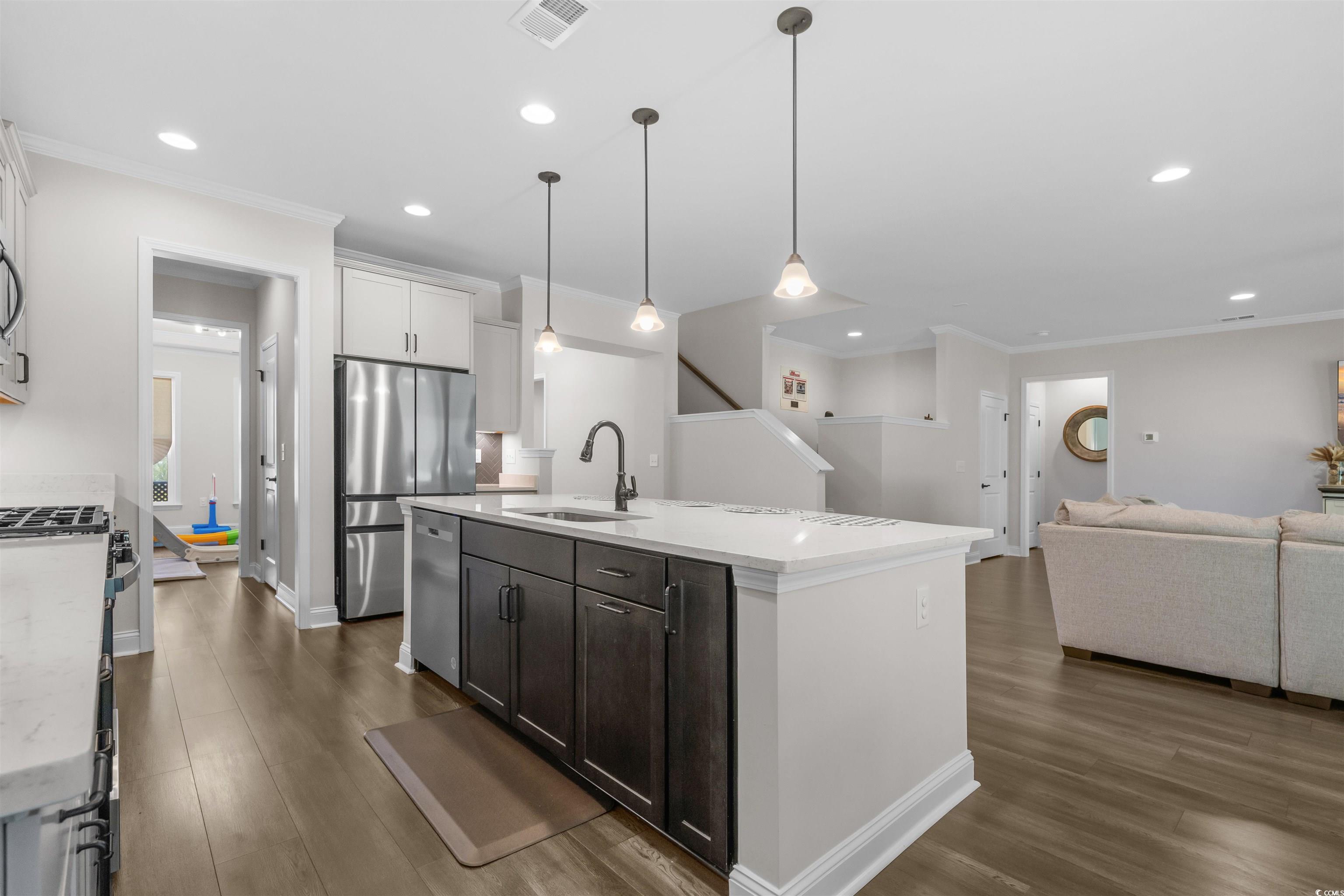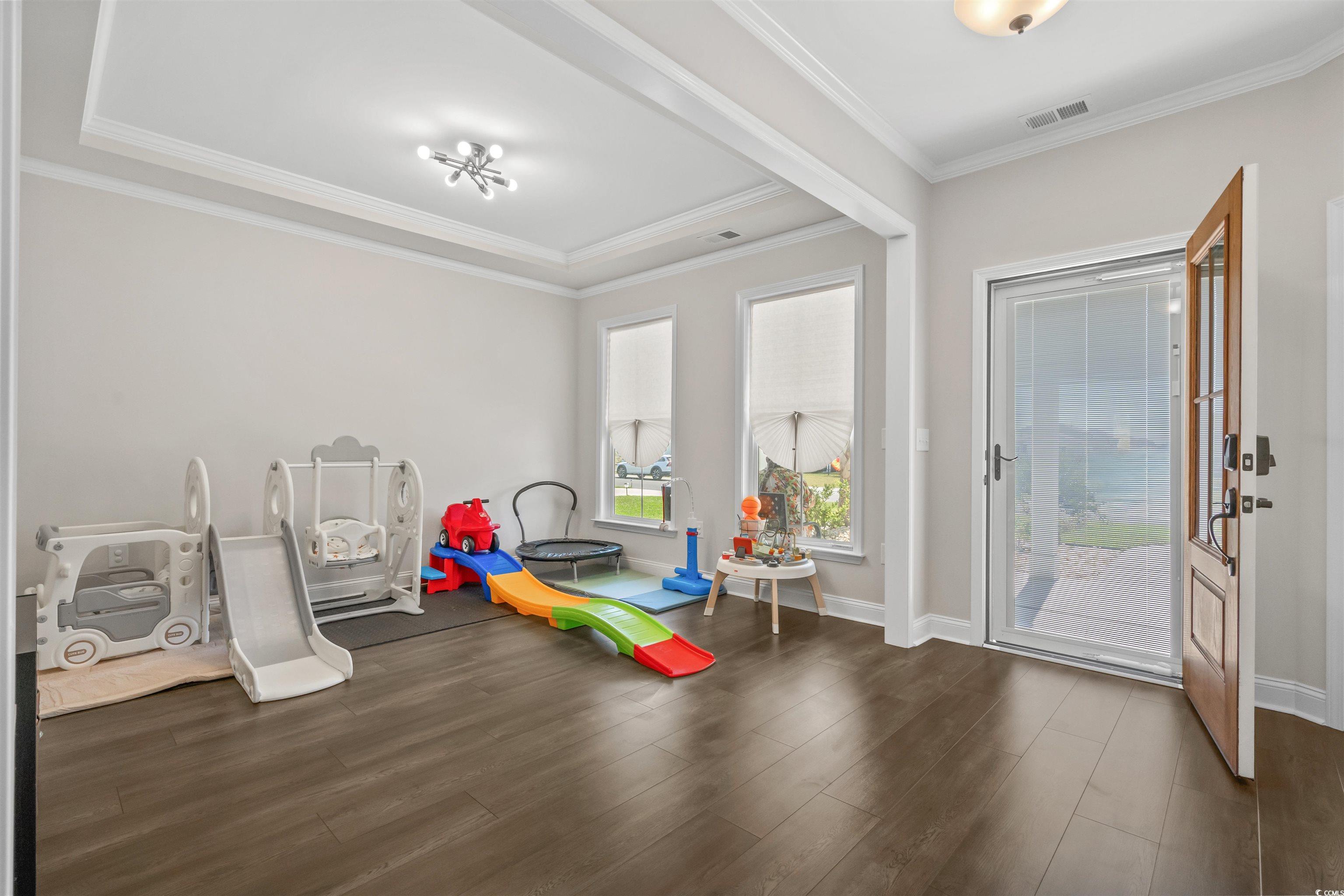 Welcome to this remarkable 4-bedroom, 3.5-bathroom home located in the highly desirable Berkshire Forest community in Carolina Forest! Boasting a spacious and thoughtfully designed layout, this home offers comfort, functionality, and elegant details throughout. As you arrive, youll be greeted by beautiful landscaping and a charming front porch, perfect for enjoying quiet mornings. Step inside to find a formal dining room with elegant tray ceilings to your rightcurrently used as a playroomand a private office with a stylish glass door to your left. The heart of the home is the chef-inspired kitchen, fully equipped with stainless steel appliances, a work island, an expansive walk-in pantry, and abundant cabinet spacea true dream for any culinary enthusiast! The master suite is a serene retreat, featuring tray ceilings, a double-sink vanity, walk-in shower, garden tub, and a massive walk-in closet. Upstairs, you'll find a spacious loft-style living area, a second office/flex space, and three additional bedrooms. Step out onto the second-story balcony overlooking the front yarda perfect spot to unwind. The yard includes a new irrigation system to make lawn care effortless. But the home is just the beginningBerkshire Forest offers resort-style amenities including: multiple community pools, clubhouse & recreation center, tennis courts, playground, fitness center, and a scenic lake with walking trails for peaceful strolls and relaxation! This is more than just a homeit's a lifestyle. Dont miss your chance to be part of this vibrant and welcoming community. Schedule your showing today!