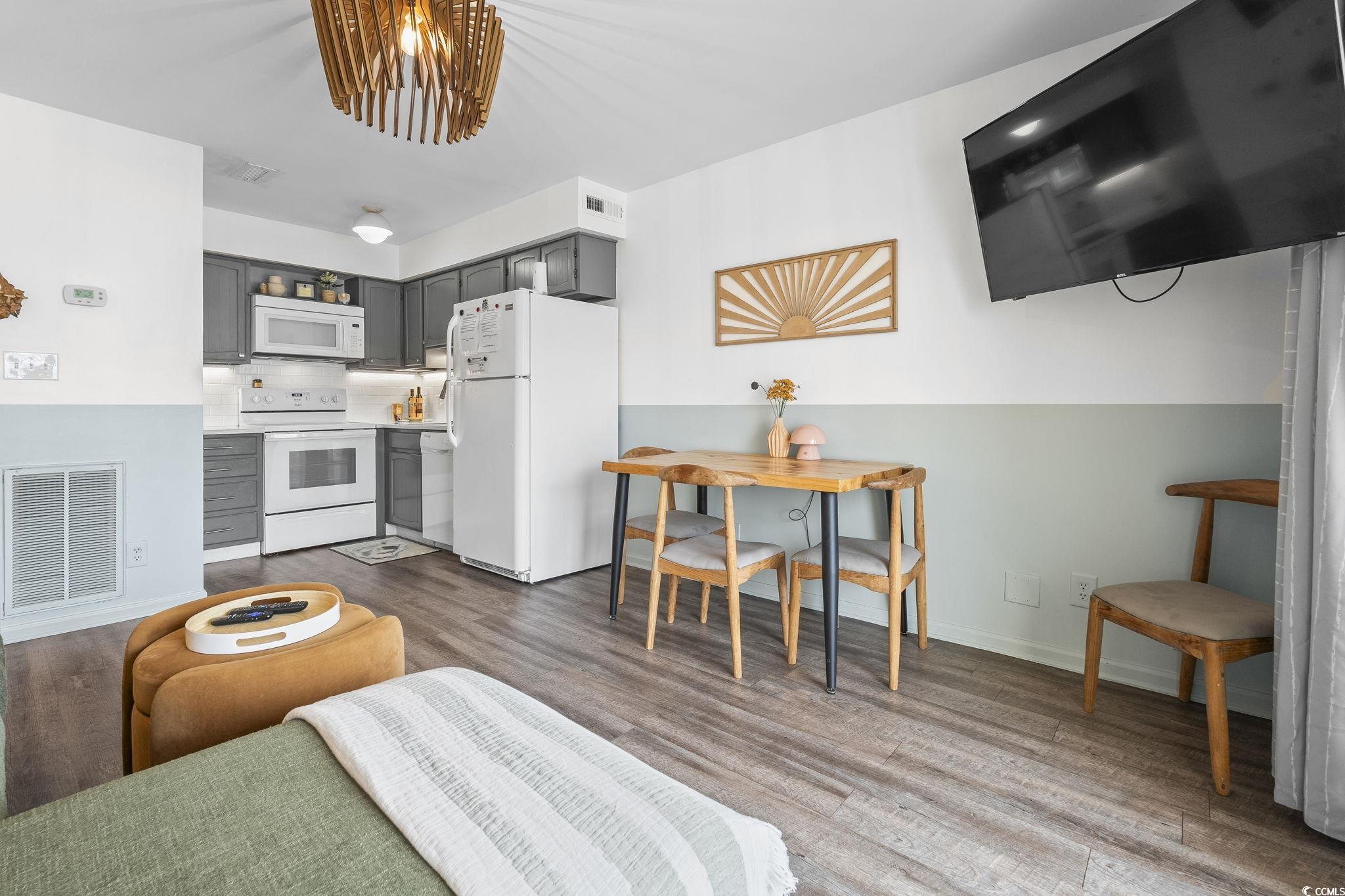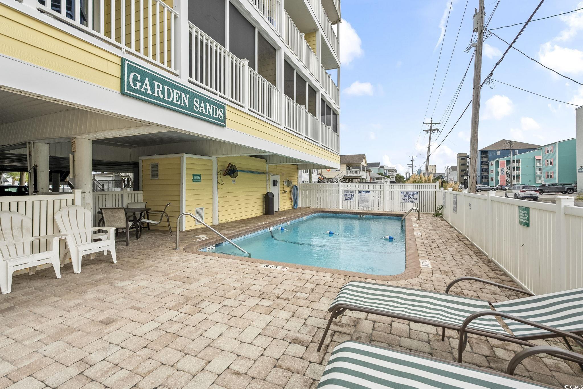 Discover your perfect beachside escape! This move-in ready, first floor, 2 bedroom, 1 bath condo in the charming complex of Garden Sands, located in the heart of Garden City Beach is fully furnished and waiting for you. Relax on your private covered balcony, enjoying the sights and sounds of the nearby Atlantic Ocean, with direct beach access just across the street. Impeccably maintained and stylishly decorated, this unit comes furnished and includes a stackable washer and dryer for added convenience. This low-rise community offers a private pool, covered parking, and affordable HOA fees. Steps from the iconic Garden City Pier, restaurants, shops, and local attractions, this condo is your getaway to coastal living. Want to make it a rental? This complex offers short term and long term rentals so go ahead and start the AIRBNB you have always dreamed of. Act fact and schedule your showing today.