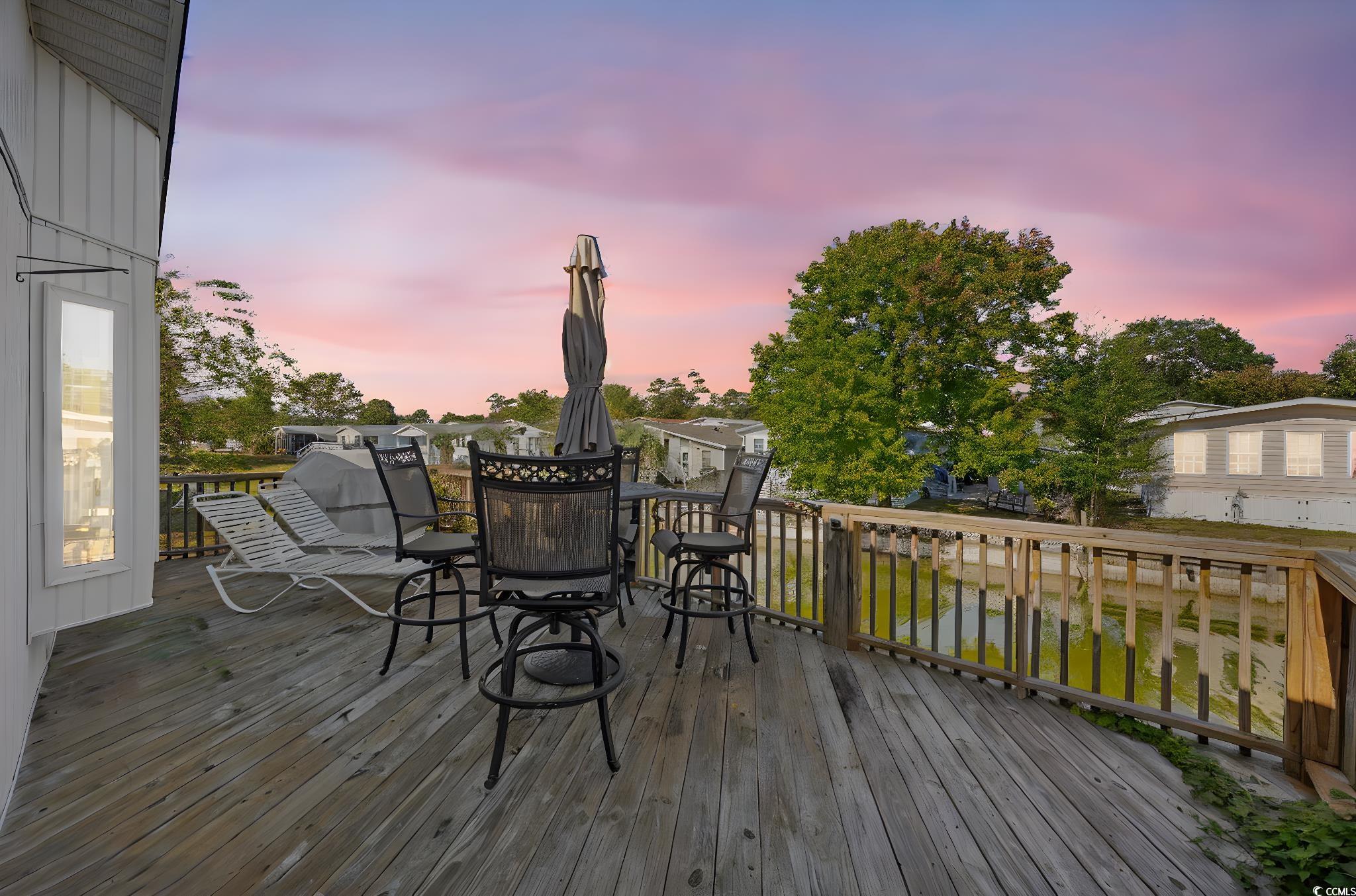 Welcome to Oceanside Village, a sought-after gated beachfront community in beautiful Surfside Beach, SC! This charming 2 bed, 2 bath home offers 972 sq ft of well-designed living space just minutes from the sand. Step inside to an open-concept kitchen and living area featuring laminate flooring, stainless steel appliances, and a butcher block countertop that adds warmth and style. The spacious master suite includes a private en-suite bath with walk-in shower, while the second bedroom is thoughtfully set up to accommodate guests or serve as an ideal short-term rental space. The family bathroom features newer vanity and a shower/tub combination for convenience. Additional highlights include a laundry room, attached storage shed/golf cart garage, and a covered carport. This property boasts a premium lot, with an oversized wooden deck overlooking the water, perfect for grilling, relaxing, and enjoying the coastal breeze. Oceanside Village residents enjoy private beach access with parking, plus resort-style amenities such as indoor and outdoor pools, fitness center, tennis and pickleball courts, fishing lakes, and a playground. Located close to the best of the Grand Strand, youll find Surfside Beach Pier, Murrells Inlet MarshWalk with many restaurants and bars, top golf courses and miniature golf, Huntington Beach State Park and Brookgreen Gardens nearby. Enjoy the perfect mix of relaxation and fun in this turnkey coastal getaway or investment opportunity!