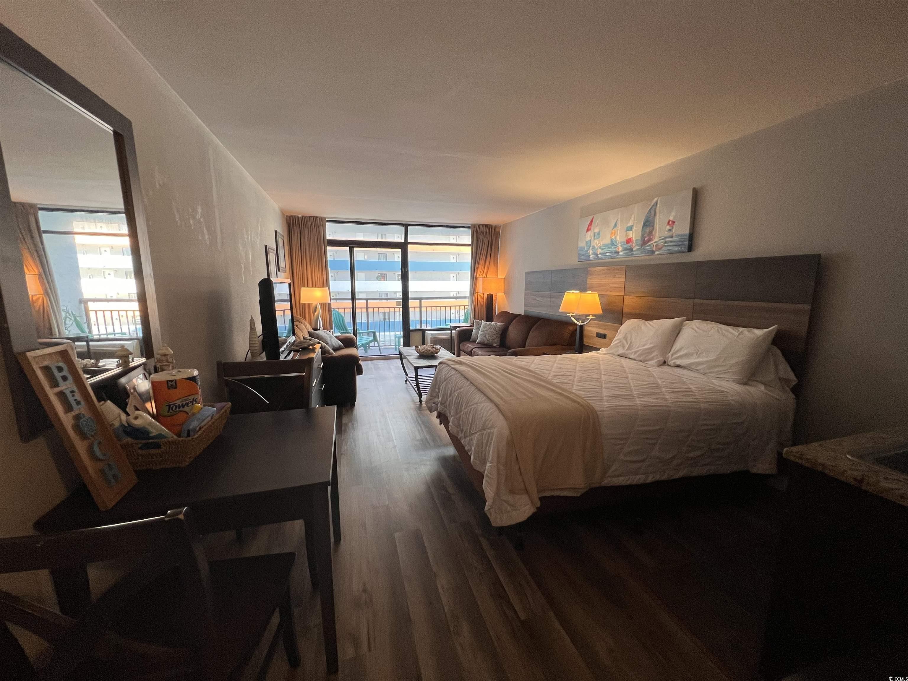 Welcome to Landmark Resort Unit 814 - a comfortable and spacious getaway in the heart of Myrtle Beach! This inviting efficiency unit overlooks the indoor pool and features a cozy queen bed, as well as a living area with a pull-out sofa, perfect for accommodating extra guests. The kitchenette features a microwave, mini fridge, toaster, and Keurig coffee makereverything you need to prepare a quick meal or enjoy your morning brew. The private balcony provides a relaxing spot to unwind, offering a view overlooking the resort's rooftop. Enjoy endless fun and relaxation with the resorts incredible amenities, including multiple indoor and outdoor pools, lazy river, kiddie pools, and several hot tubsall heated during the winter months. Landmark Resort also offers direct beach access, a convenience store, arcade, laundromat, and fitness center, making it the perfect spot for a vacation retreat or investment property in Myrtle Beach!