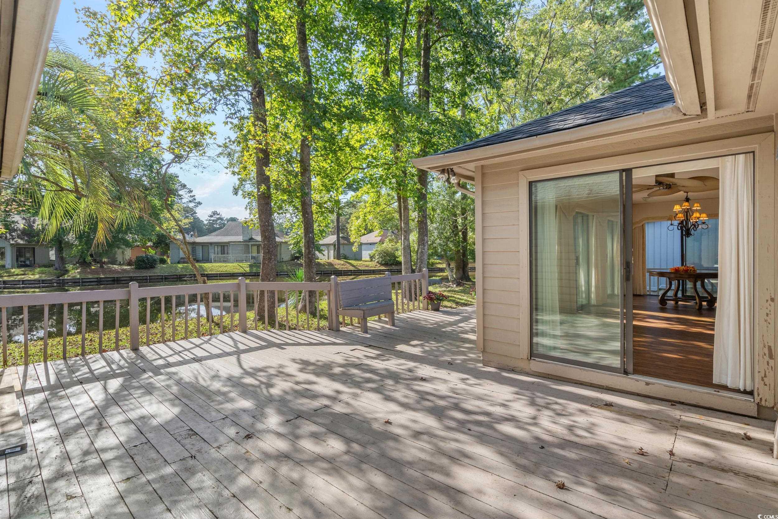 OPEN HOUSE 11/15 11-1pm Nestled on a peaceful lakefront lot in the sought-after 55+ community of Myrtle Trace, this charming 3-bedroom, 2-bath home offers an inviting floor plan designed for easy living and entertaining. The spacious family room features a cozy fireplace, built-ins, and direct access to the patioperfect for relaxing or hosting guests. Enjoy meals in the nicely sized dining area or in the beautiful kitchen, complete with abundant cabinet space, plenty of countertop area, a tile backsplash, and convenient access to the Carolina room. The luxurious primary suite includes French doors leading to the patio, a large walk-in closet with built-in shelving, and walk in tiled shower and vanity. Two additional bedroomsone featuring a Murphy bedshare a full bath with a tub/shower combination. A laundry area with upper cabinets adds convenience.Outside, the patio provides a tranquil setting for your morning coffee or unwinding in the evening with wine and appetizers while enjoying the lake views. Let me also mention it has 2 large attached storage areas and one is big enough for a small workshop. Myrtle Trace amenities include a saltwater pool, clubhouse, bocce and shuffleboard courts, plus a full calendar of community activitiesmonthly parties, game nights, and holiday celebrations. Ideally located near shopping, dining, medical facilities, historic downtown Conway, top golf courses like Burning Ridge, Tanger Outlets, and just minutes from the beach and all Myrtle Beach attractions. Whether youre looking for your forever home or the perfect coastal retreat, this one is a must-see!