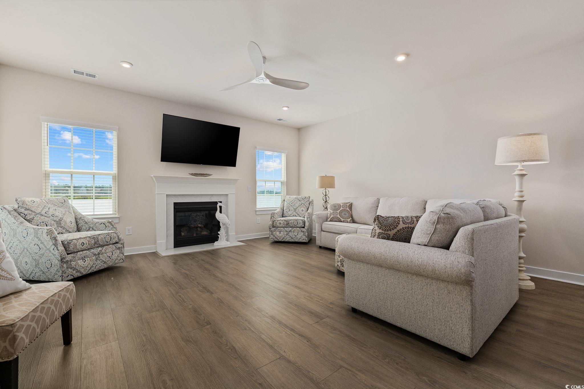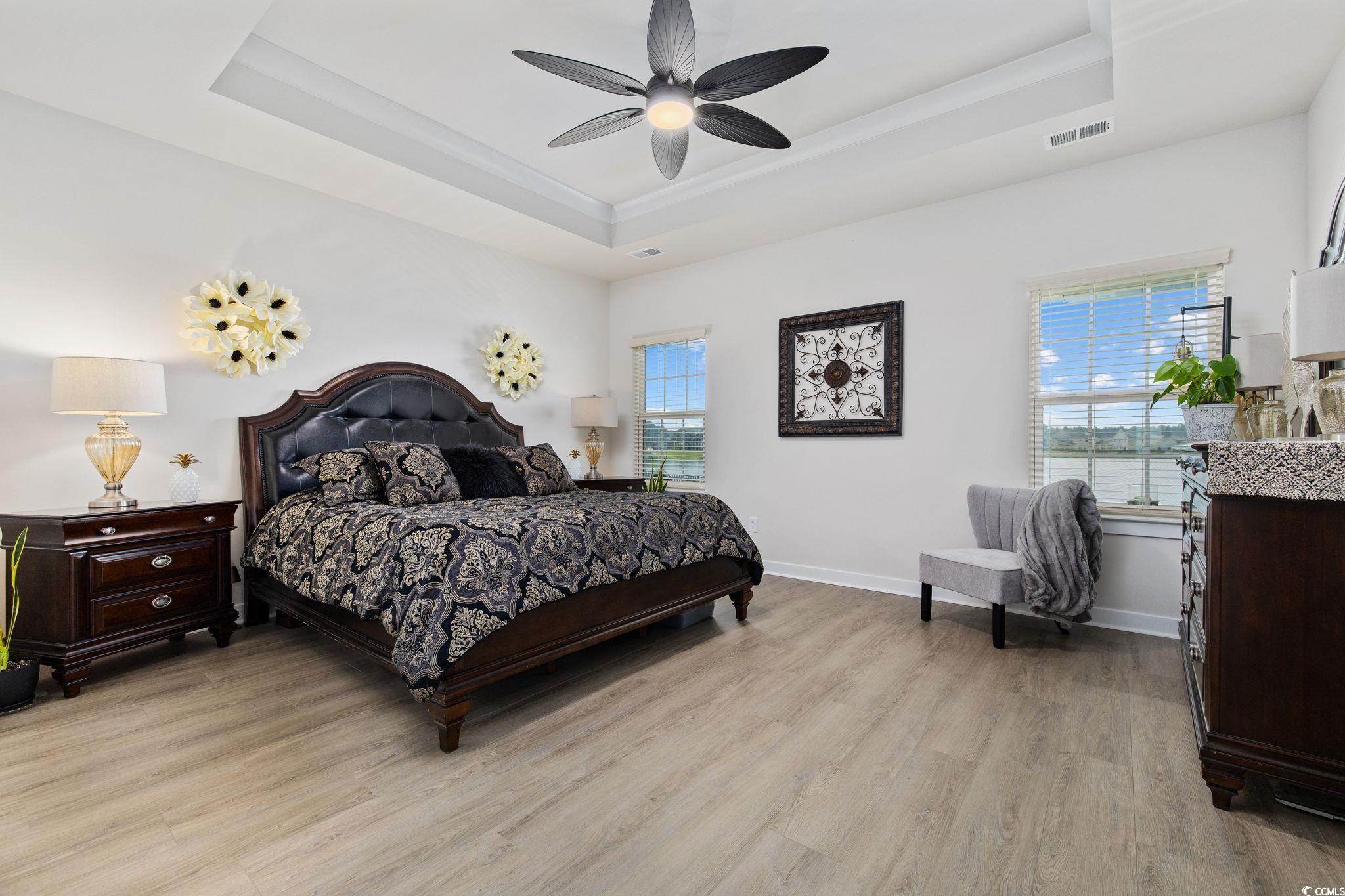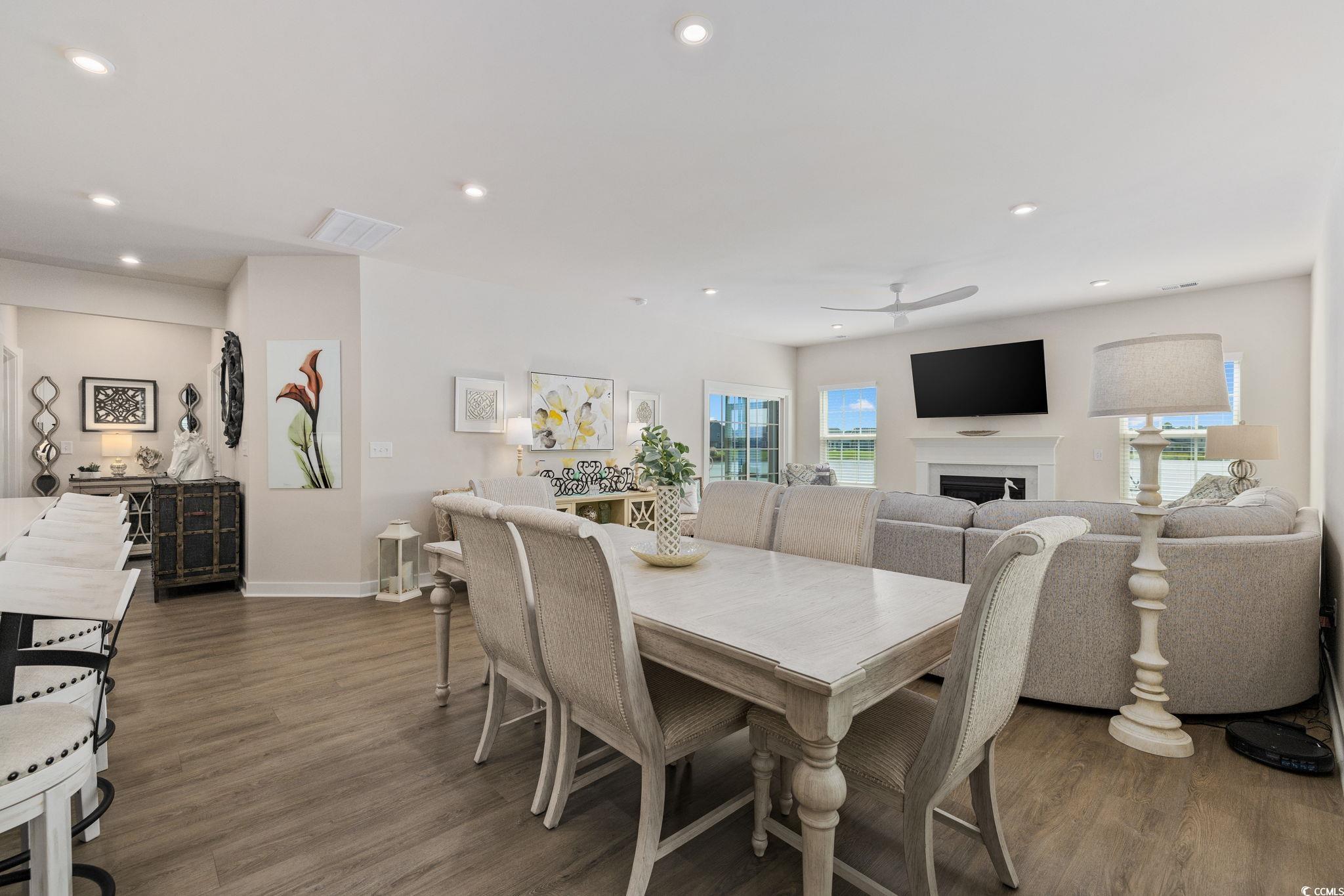 Welcome to Indigo Bay, a premier gated community in the heart of Carolina Forest, where lakeside living meets effortless luxury just five miles from the beach. Centered around a breathtaking 56-acre recreational lake, Indigo Bay is a serene escape designed for connection, recreation, and relaxation. Located toward the rear of the community on one of the most desirable lakefront lots, this like-new 2024 single-level home offers one of the longest and most captivating views of Indigo Bay. Wake up to the sound of nature, spend your mornings kayaking or paddle boarding, and enjoy peaceful evening walks along the wide sidewalks that wind through the neighborhood. Built with durable and stylish Hardie Board siding, this home combines lasting quality with timeless curb appeal. Inside, youll find 3 bedrooms and 2 baths with an open-concept layout that fills every space with natural light and warmth. Luxury vinyl plank flooring flows throughout, adding a modern, seamless touch to the home. The spacious primary suite overlooks the lake and features a custom-built closet and a spa-inspired bath with a double vanity and a walk-in shower featuring dual shower heads and a built-in bench seat for added comfort. The chef-inspired kitchen showcases soft-close cabinetry, double ovens, a striking two-toned island, and a beautiful porcelain farmhouse sink. Generous counter space makes meal preparation a breeze, while large windows invite you to prepare your meals as you take in the tranquil lake views. Elegant details like crown molding in the foyer and a cozy gas fireplace create a sense of refined comfort. Enjoy the expansive covered front porch with its tiled floor, perfect for welcoming guests or relaxing with your morning coffee. Out back, the screened-in porch provides a private retreat for peaceful sunsets over the water. The home also includes a full irrigation system and a garage with a convenient bump-out, ideal for a workshop or extra storage. Every detail of this home invites you to slow down, unwind, and savor the serenity that surrounds you. Beyond your backyard, the amenities of Indigo Bay bring an unmatched sense of community and leisure. Residents enjoy access to a two-story clubhouse with a fitness center and pool, pickleball and basketball courts, a dog park, and wide scenic sidewalks perfect for walking, jogging, or biking. All of this, just five miles from the beach and minutes from shopping, dining, and the best of Carolina Forest living. Move-in ready and meticulously maintained, this home captures the essence of refined, relaxed lakefront livingall while enjoying life at the beach. This is more than just a home; its a lifestyle. Welcome home to Indigo Bay. *Owner is a licensed South Carolina real estate agent.*