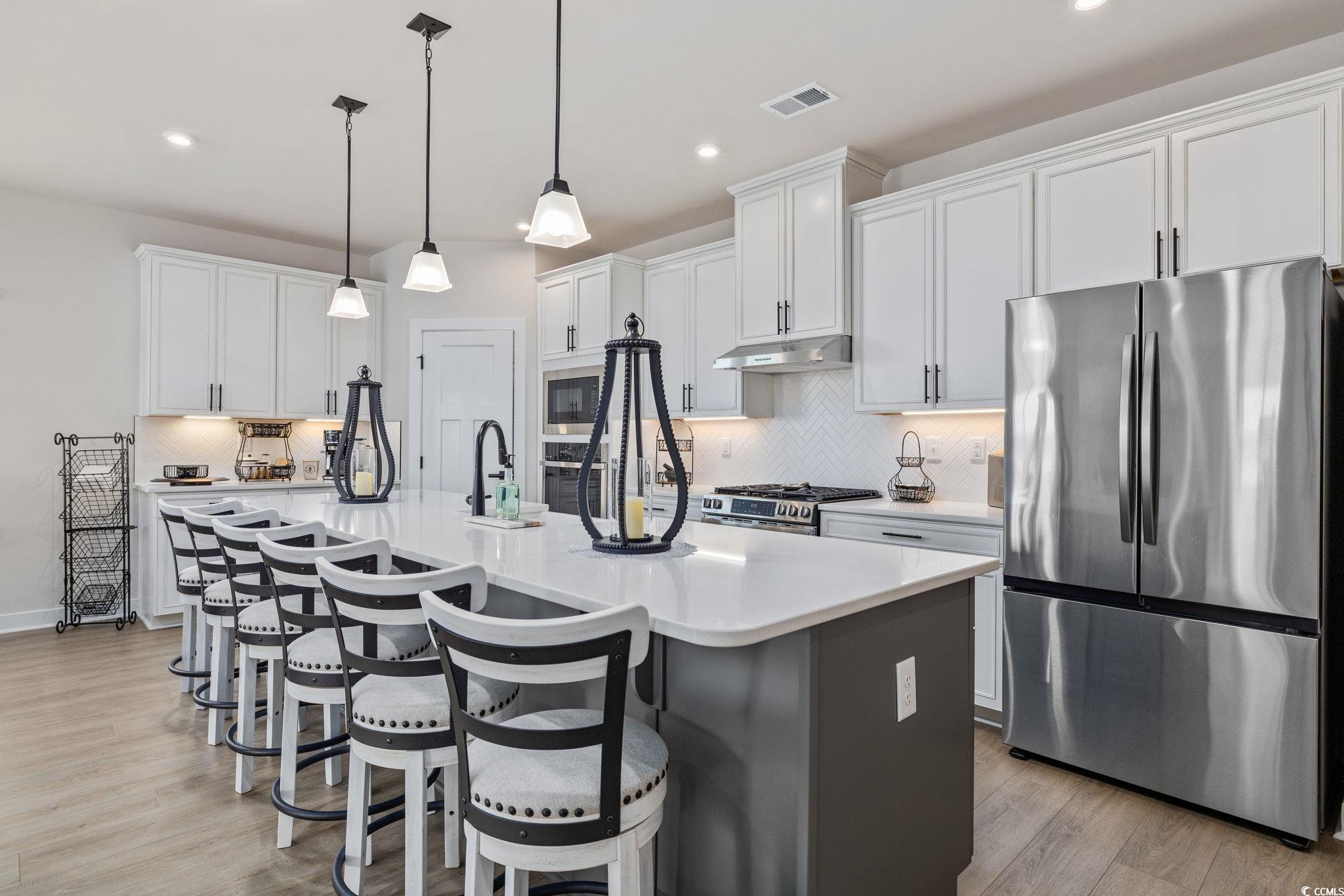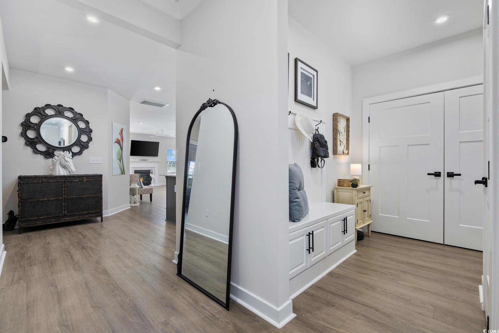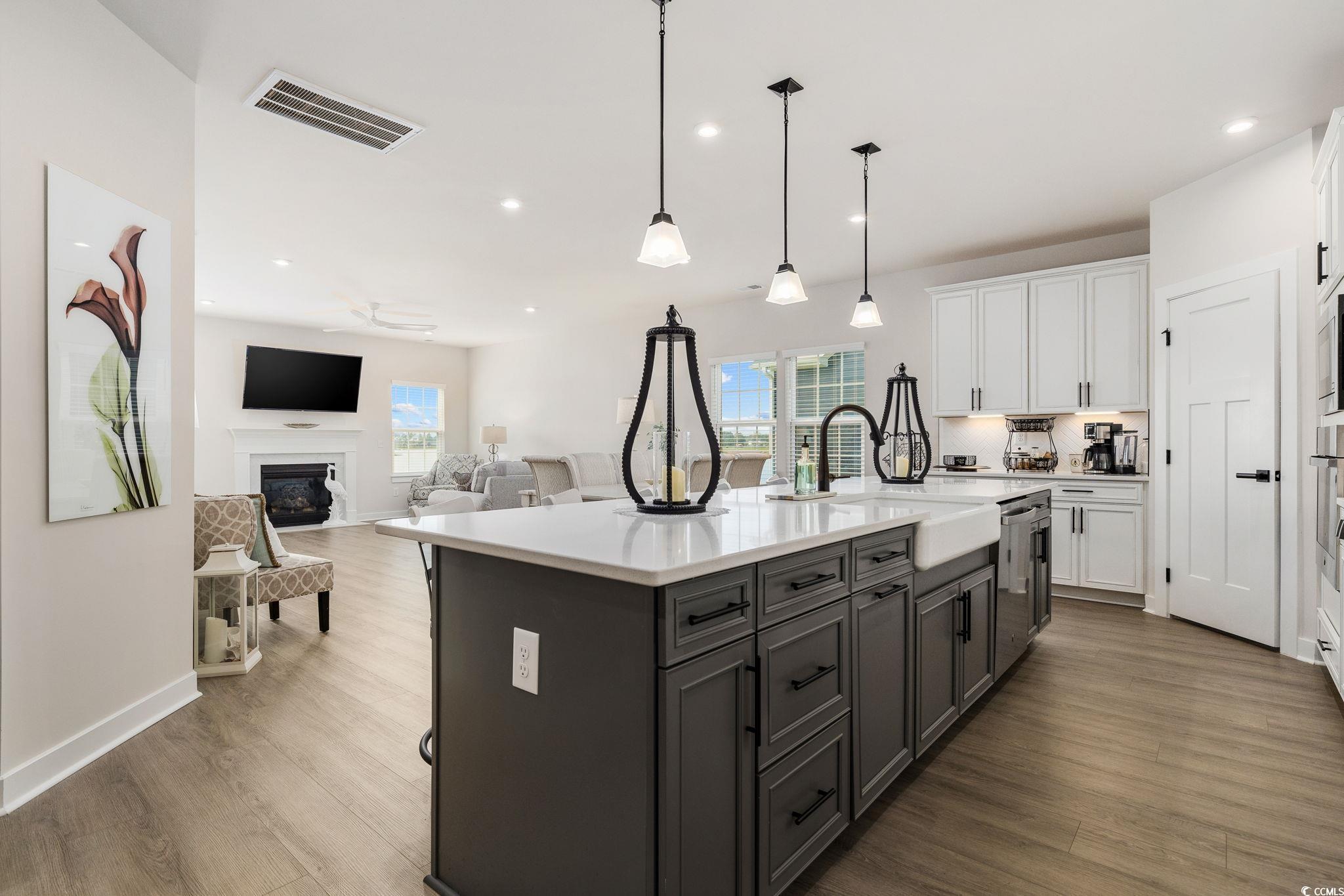 Welcome to Indigo Bay, a premier gated community in the heart of Carolina Forest, where lakeside living meets effortless luxury just five miles from the beach. Centered around a breathtaking 56-acre recreational lake, Indigo Bay is a serene escape designed for connection, recreation, and relaxation. Located toward the rear of the community on one of the most desirable lakefront lots, this like-new 2024 single-level home offers one of the longest and most captivating views of Indigo Bay. Wake up to the sound of nature, spend your mornings kayaking or paddle boarding, and enjoy peaceful evening walks along the wide sidewalks that wind through the neighborhood. Built with durable and stylish Hardie Board siding, this home combines lasting quality with timeless curb appeal. Inside, youll find 3 bedrooms and 2 baths with an open-concept layout that fills every space with natural light and warmth. Luxury vinyl plank flooring flows throughout, adding a modern, seamless touch to the home. The spacious primary suite overlooks the lake and features a custom-built closet and a spa-inspired bath with a double vanity and a walk-in shower featuring dual shower heads and a built-in bench seat for added comfort. The chef-inspired kitchen showcases soft-close cabinetry, double ovens, a striking two-toned island, and a beautiful porcelain farmhouse sink. Generous counter space makes meal preparation a breeze, while large windows invite you to prepare your meals as you take in the tranquil lake views. Elegant details like crown molding in the foyer and a cozy gas fireplace create a sense of refined comfort. Enjoy the expansive covered front porch with its tiled floor, perfect for welcoming guests or relaxing with your morning coffee. Out back, the screened-in porch provides a private retreat for peaceful sunsets over the water. The home also includes a full irrigation system and a garage with a convenient bump-out, ideal for a workshop or extra storage. Every detail of this home invites you to slow down, unwind, and savor the serenity that surrounds you. Beyond your backyard, the amenities of Indigo Bay bring an unmatched sense of community and leisure. Residents enjoy access to a two-story clubhouse with a fitness center and pool, pickleball and basketball courts, a dog park, and wide scenic sidewalks perfect for walking, jogging, or biking. All of this, just five miles from the beach and minutes from shopping, dining, and the best of Carolina Forest living. Move-in ready and meticulously maintained, this home captures the essence of refined, relaxed lakefront livingall while enjoying life at the beach. This is more than just a home; its a lifestyle. Welcome home to Indigo Bay. *Owner is a licensed South Carolina real estate agent.*