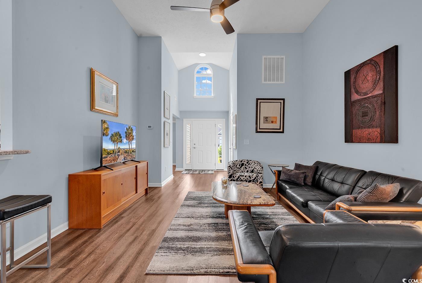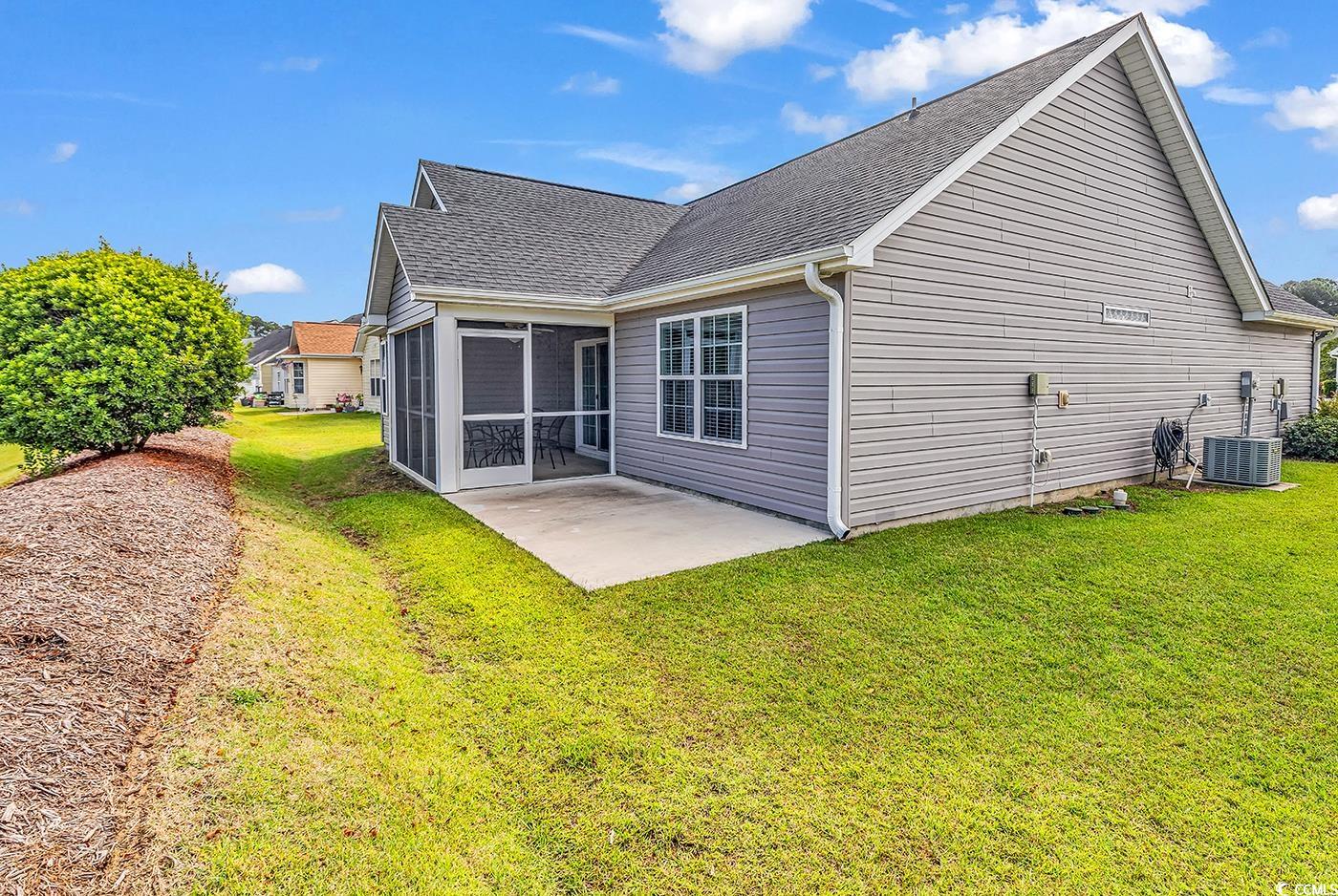 Beautiful Archway floor plan by Flagship Construction features a single level home with 3 Bedrooms, two bathrooms, screened porch, and a two-car garage in The Village at Palmetto Greens in Longs, SC. Home is immucalate, light and bright with beautiful, soothing colors and custom light fixtures/faucets. Low maintenance luxury vinyl flooring throughout and NO carpet. New HVAC unit in 2025 and a smart, programmable thermostat to ensure energy efficiency. Desirable open concept living area features soaring 13 foot vaulted ceilings and a transom window above the front door, so room feels much larger - very bright and spacious. Beautiful white cabinetry in kitchen, granite countertops, a new garbage disposal, pantry, and Frigidaire stainless steel appliances, including the French door refrigerator. Breakfast bar and bay window in the breakfast nook adds additional lighting/openness. Primary bedroom is very relaxing- features a tray ceiling and a spacious walk-in closet. Primary bathroom is light and bright with a transom window over the shower, corner seat in shower, granite countertop vanity, linen closet, and a knee wall providing separation from the toilet. Desirable split level floor plan gives everyone privacy. Second bedroom has vaulted ceilings for a spacious feel. The second bathroom features a transom window, granite countertop, and shower with a corner seat. Ceiling fans are in ALL bedrooms and the living room. Screened porch is perfect for relaxing or entertaining outdoors. Patio provides a space for grilling or relaxing in the Carolina sunshine. Cathedral style interior doors, neutral luxury vinyl flooring, white cabinetry, granite and sleek faucets throughout the home - every detail was thoughtfully selected. Floor plan was customized to have the washer and dryer inside - just off the garage entrance- with hanging space for laundry along with a storage closet and even a door to close off laundry room from the living area. Washer and dryer both convey. Irrigation system to keep lawn beautiful all year long; gutters were also installed. Pull-down attic space above garage for storing holiday items. Low Homeowner's dues here include trash pick up. You are only minutes to shopping, restuarants, grocery stores, thrift stores, golf courses, and McCleod Hospital. Home may also be sold Partially furnished - ask your agent. This home is a Must See - One owner and better than new- you won't need to do one thing! Can be sold partially furnished. Motivated Seller- Bring Offer.