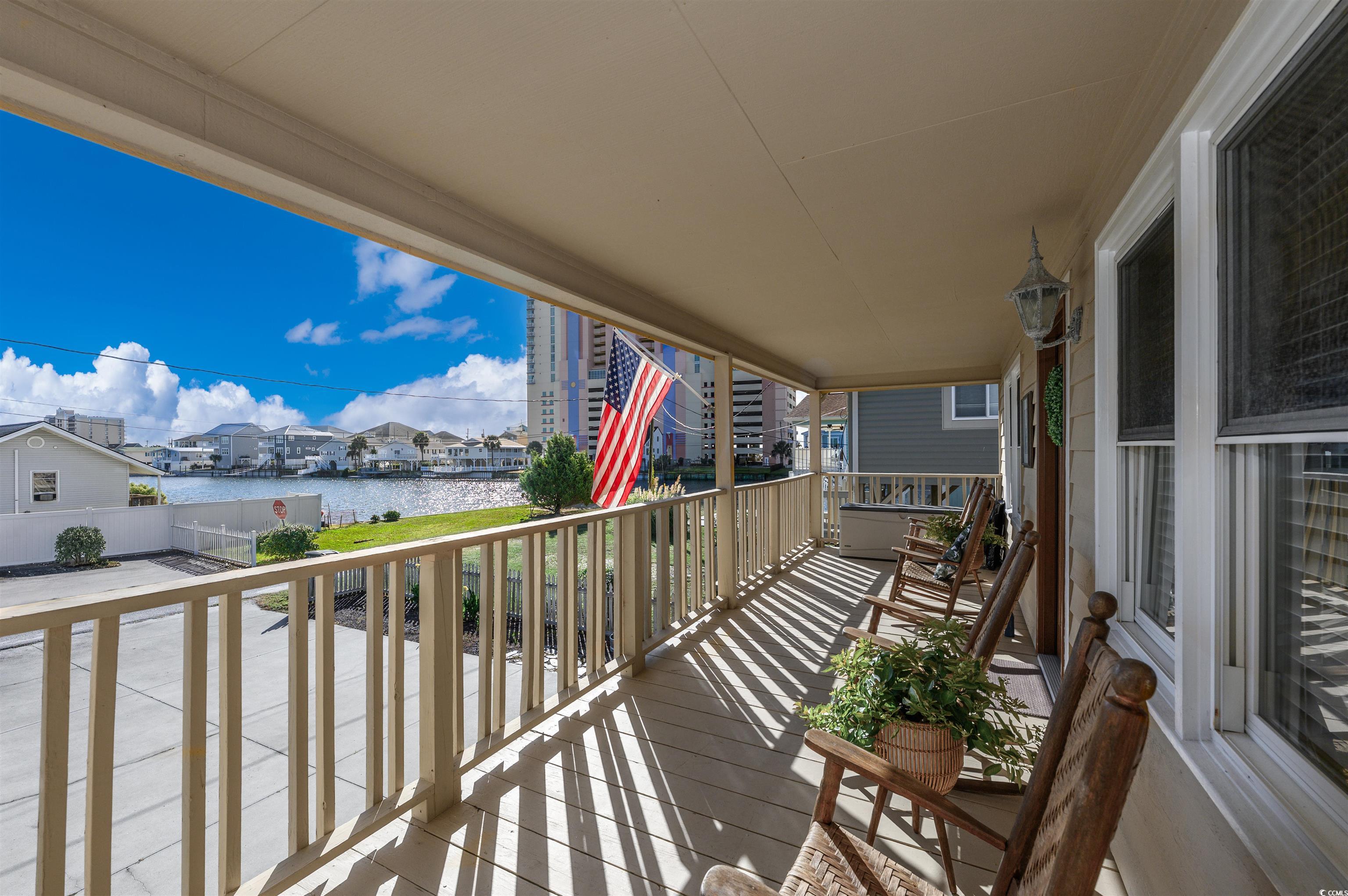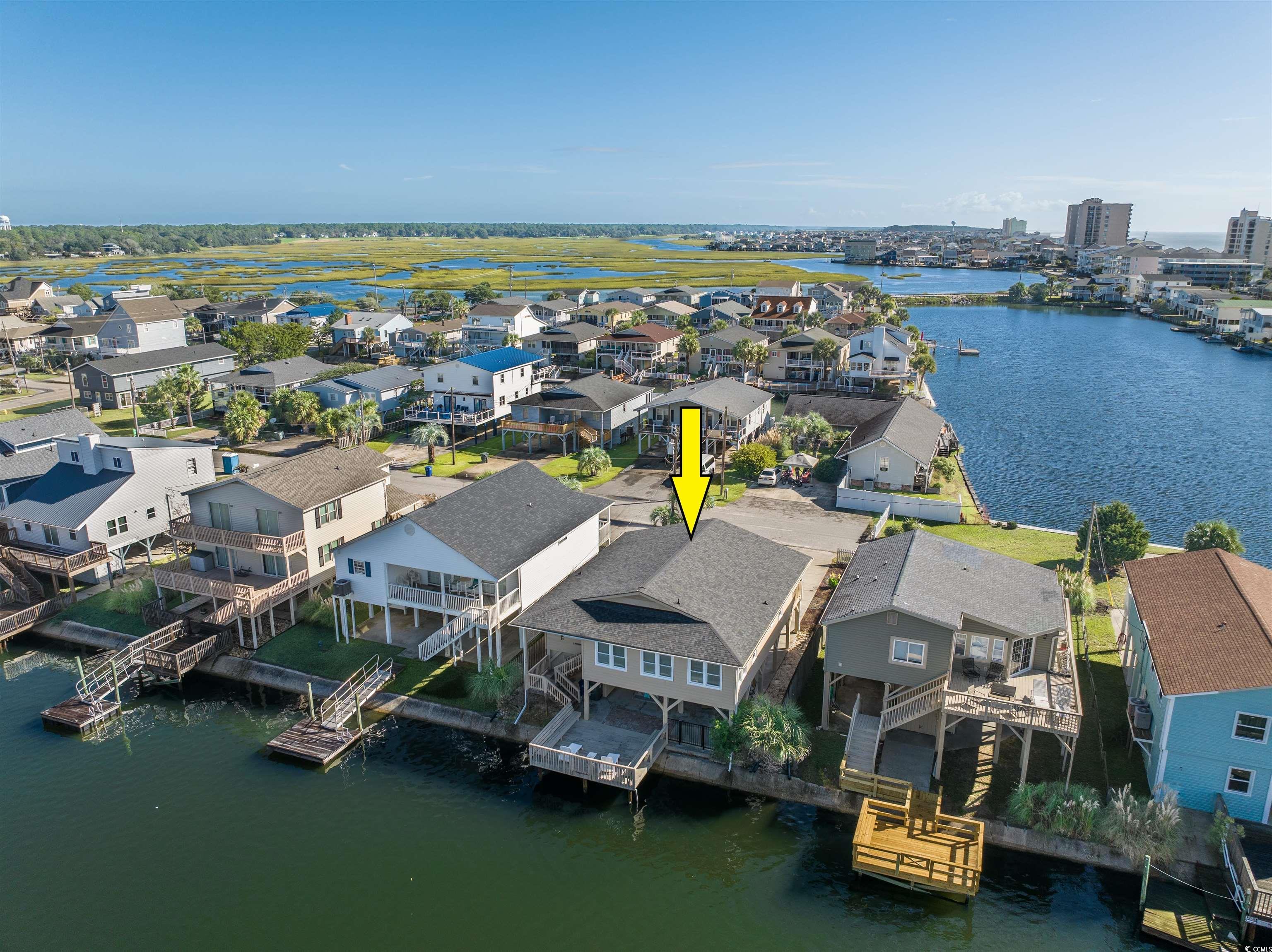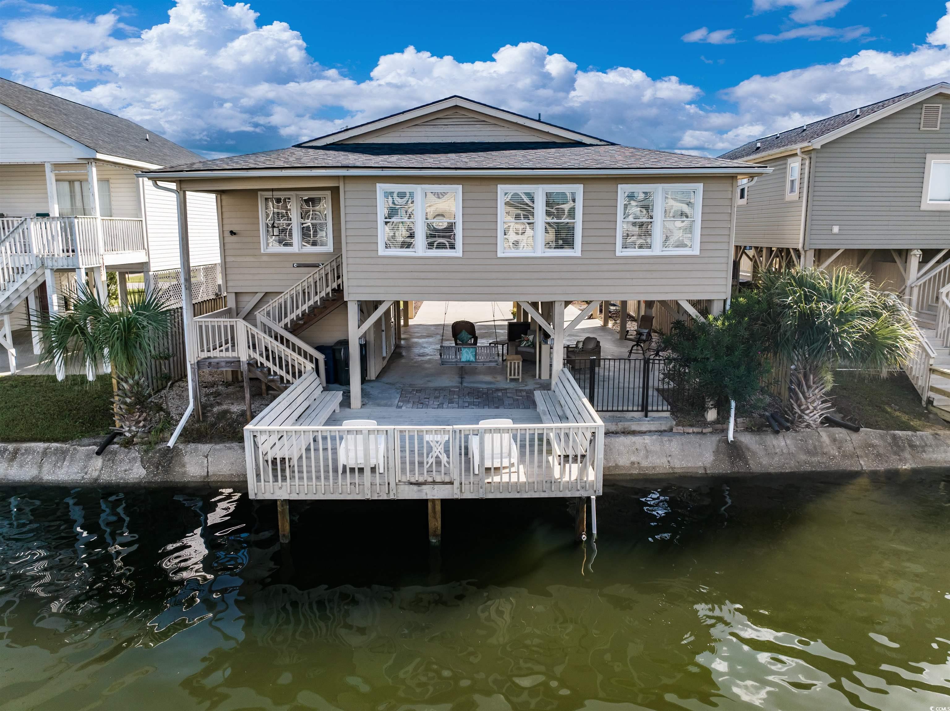 Looking for your perfect oasis at the beach - this is it! This beach house has it all and you and your guests will fall in love. It is the timeless beach house vibe mixed with updated modern conveniences. As soon as you pull up to the home, you will immediately begin to relax. Enjoy the ocean breeze while you rock your cares away and sip coffee on your freshly painted front porch. Or if you are feeling athletic and ambitious, grab some time on the water with your favorite water sport right in your backyard - paddle board, canoe and more. The home sits directly on the water in the Cherry Grove channel area so your access to fun is a snap. Although this home has not been on the rental market in the past (awesome condition and never rented) - this home will definitely ""show you the money"" on a rental program boasting 4 bedrooms, with water views from most all angles AND just steps to the beach. Being a raised beach house, this property has so many entertaining spots. As you enter the new stain glass front door upstairs, you are welcomed into the open concept living room and dining room with plenty for game night activities. The all white and upgraded kitchen also has an open concept so you do not miss a thing while you are whipping up your favorite gourmet meal. The kitchen has white custom cabinets, quartz countertops and plenty of space to let your culinary skills go wild. The kitchen also includes a new stainless undermounted double kitchen with Moen faucet. With the classic beach house footprint, there are 2 bedrooms with a shared bathroom on both sides of the home. The bathrooms have been upgraded to include barn doors entry to conserve space and add character. The porches, Carolina Room and deck overlooking the water (only 3 years old) will provide so many great spots for reading your favorite book, sipping on your favorite cold beverage and connecting with nature. The brick pavers to the deck are ecologically friendly. After a great day on the beach enjoying the waves, step into the downstairs outdoor shower to rinse the sand away and drop your cooler, chairs and beach towels in the downstairs laundry area before starting the evening entertainment. Under the home, there is so much fun to gather for family picnics, football parties and more. Light up the grill for burger night or try your hand at creating a seafood boil. This well-maintained home includes double insulated windows, a termite bond and the HVAC include a an ultraviolet light and twice yearly service plan. The Cherry Grove community is a peninsula in North Myrtle Beach located on the north end. It is the ideal spot to gather for fun. The beach wraps around to the Inlet with views of Waites Island the last beach in South Carolina. Take a relaxing stroll on the beach to hunt for shells and sharks teeth. Fishing will become one of your favorite past times with convenient access to the public boat ramp located just at the end of 53rd Ave North and Cherry Grove Fishing Pier located at 53th Ave North. You can ride in style in a low speed golf cart to the beach, restaurants, putt-putt courses and nightlife. The infamous Boulineau's grocery and shops are so close with ice cream treats, local seafood supplies and beach souvenirs and you don't even have to get in your car. The City of North Myrtle Beach has so much to offer including wide beaches, boating, golfing, free summer concerts, many main street festivals thru out the year. Do not miss your chance to finally get a beach getaway for your own personal enjoyment or an income generating opportunity. At this price and location - this home will go fast.