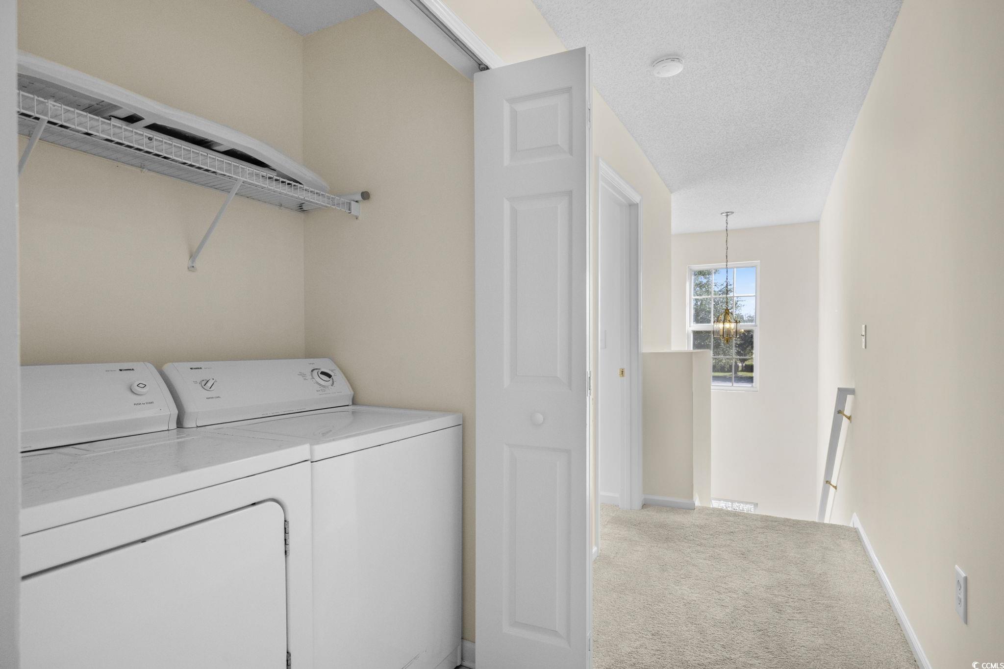 Welcome to 136 Sardis Drive, a beautiful lakefront townhome in the Sawgrass East community in the heart of Carolina Forest. This townhome features a private 1-car garage and a screened in back porch overlooking the water, perfect for relaxing in the afternoons. As you enter through the front door you will see your living room laid out directly beside your kitchen. This inviting open concept floor plan has ample natural light and flows beautifully. You will also find your half bathroom conveniently located on the first floor for easy access. Upstairs you will find 2 bedrooms both featuring en-suite baths, vaulted ceilings, and ceiling fans, as well as the laundry room. This highly sought after community is conveniently located near grocery stores, restaurants, shopping, and so much more. Sawgrass East is a beautifully manicured neighborhood with large trees, ponds, a community pool, and lots of lush landscaping. Schedule your showing today so you do not miss on this opportunity in the heart of Carolina Forest!