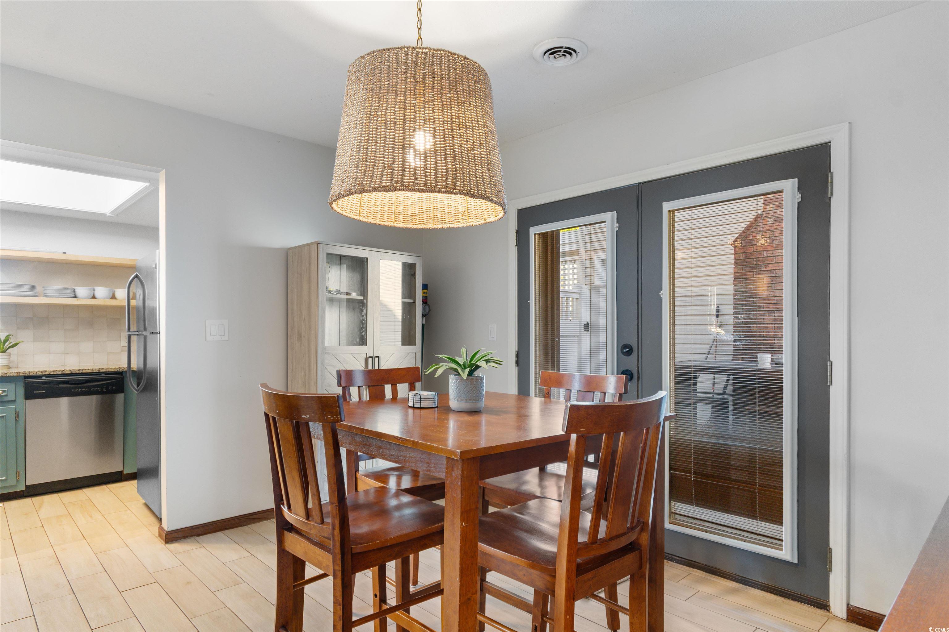 Welcome to The Lobster House - a charming coastal retreat just blocks from the ocean in the highly desirable Crescent Beach area! This home is perfect as a primary residence, vacation getaway, investment property with excellent rental history or 1031 Exchange. The kitchen features granite countertops, a bar seating area, and stainless steel appliances. The main living area offers beautiful tile flooring and a cozy fireplace, leading out to a private patiocomplete with an outdoor shower, perfect after a day at the beach! Upstairs, youll find two bedrooms with queen beds and bunk beds, along with a private balcony for relaxing in the ocean breeze. A first-floor bedroom adds convenience and flexibility. Golf cart-friendly community with easy beach access makes this an ideal spot to enjoy the coastal lifestyle.