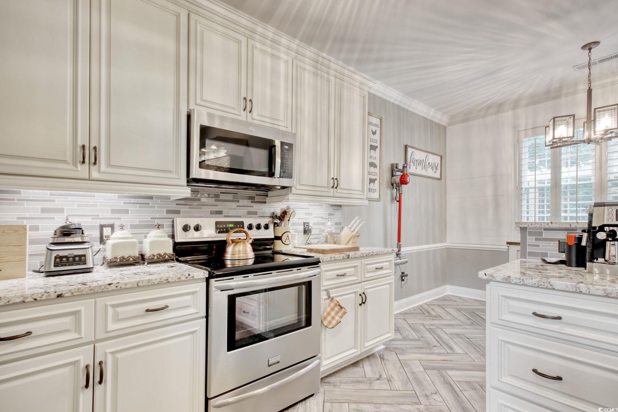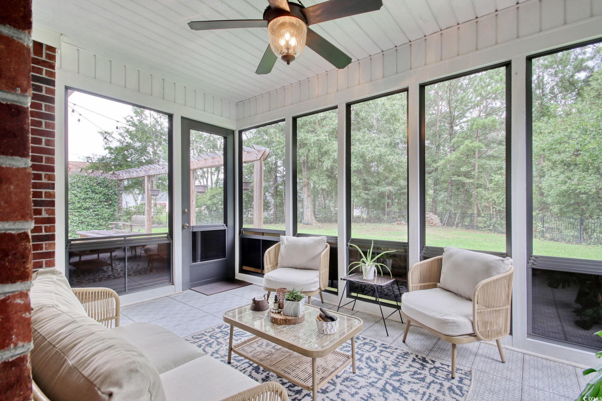 Welcome home to this beautifully crafted, all-brick four-bedroom, three-bathroom retreat, perfectly situated on a spacious cul-de-sac lot just outside the Myrtle Beach city limits. Enjoy peace and privacy while still being minutes from everything the Grand Strand has to offer. - Shopping, restaurants, golf, schools, beaches and so much more!! Step inside and youll immediately notice the thoughtful details. Crown molding throughout, chair rail accents in the dining areas, and soft natural light streaming through plantation shutters that convey with the home. The gourmet-inspired kitchen features soft-close cabinetry, under-cabinet lighting, granite countertops, stainless steel appliances, a pantry, and a breakfast bar perfect for morning coffee or casual gatherings. Vaulted ceilings in the living and dining rooms create an airy, open feel that flows seamlessly into the kitchen, while the gas fireplace sets the stage for cozy evenings in. The spacious primary suite is a true retreat, complete with a custom-designed walk-in closet for organization and a dual-sink vanity for comfortable daily routines. Ceiling fans in every bedroom, the living room, and the screened porch keep the air moving year-round. With Easy Breeze vinyl panels, the porch can be enjoyed in all seasons while overlooking your fully fenced backyard. Offering plenty of room for a private pool or space for pets and kids to play. The side-load garage provides extra storage for vehicles and yard equipment, and the oversized lot allows for a longer driveway and ample parking for family gatherings or holiday celebrations. Every detail here is designed for comfort, convenience, and a lifestyle youll love. This home is listed below its recent appraised value, offering exceptional quality and value in todays market. Schedule your private showing today and make this home yours tomorrow! Square footage is approximate and not guaranteed. Buyer and buyers agent are responsible for verification of all information deemed important.