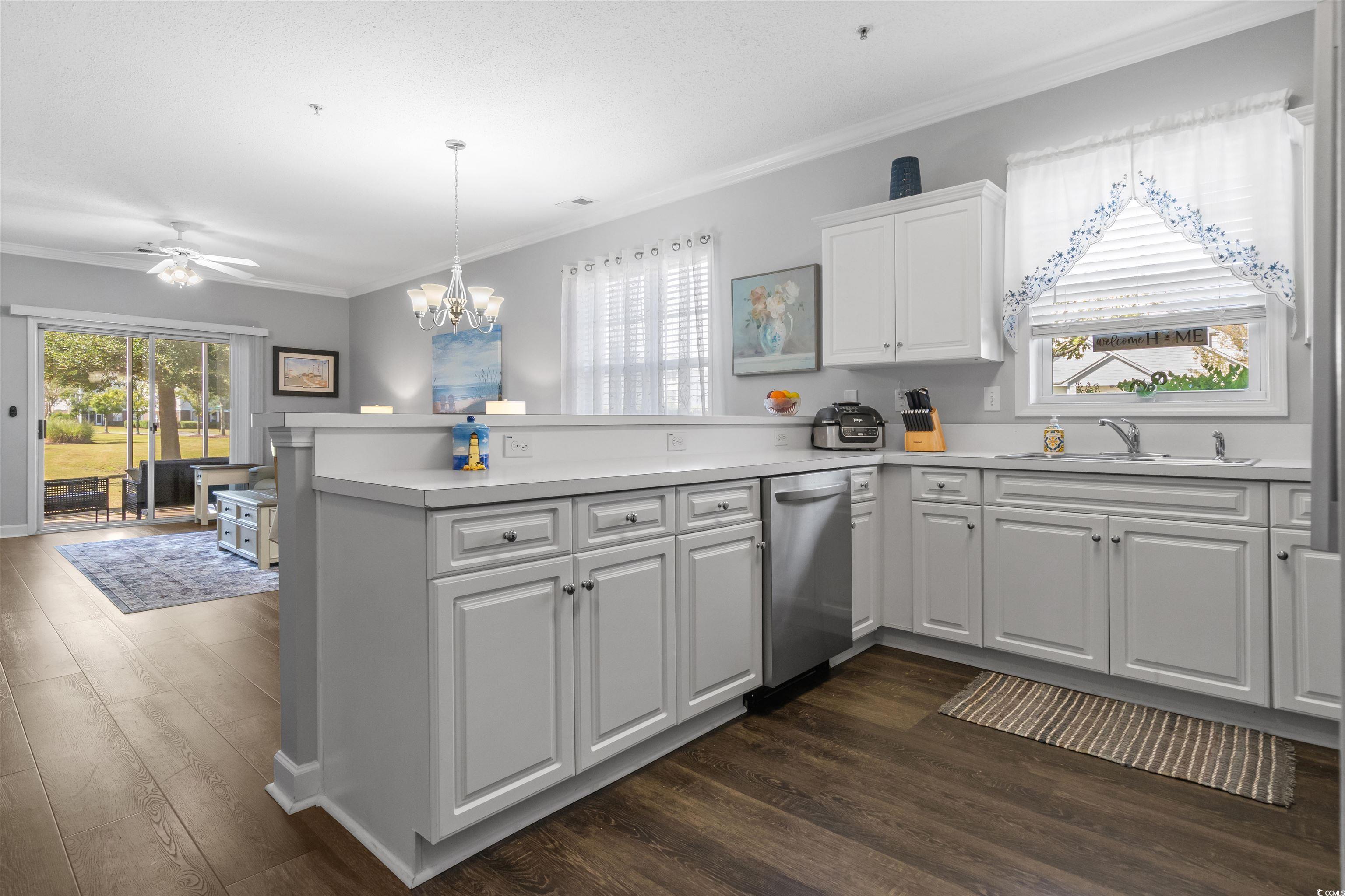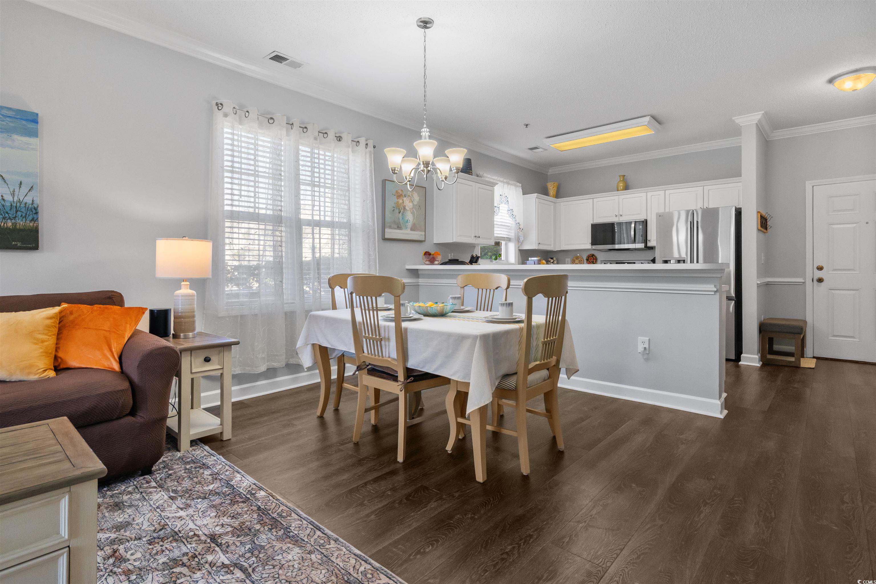 Don't miss this beautifully updated and meticulously maintained 2-bedroom, 2-bathroom first-floor end unit, ideally located in the sought-after Heatherstone community within Berkshire Forest. This home is truly move-in ready and offers modern updates throughout for comfortable coastal living. Step inside to find luxury vinyl plank (LVP) flooring in the main living areas, plush new carpeting in the bedrooms, and a bright, open layout. The kitchen is equipped with sleek stainless steel appliances, stylish light fixtures, and updated vanities and faucets in both bathrooms. Additional upgrades include ceiling fans, a newer washer & dryer, water heater, and HVAC systemeverything you need for peace of mind and convenience. Enjoy the screened-in porch with epoxy flooring and custom sunshadesperfect for relaxing or entertaining. Just a short walk to the community pool, this unit offers an unbeatable location. Located close to shopping, dining, golf courses, entertainment, top-rated schools, medical facilities, and Myrtle Beach International Airport. Plus, you're only a short drive to the beach!