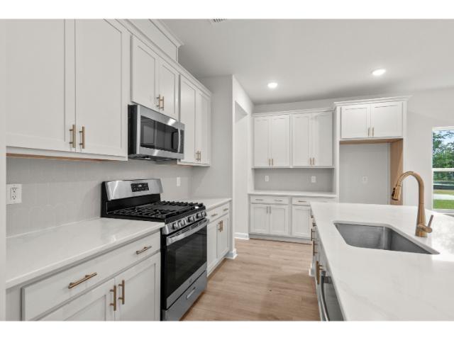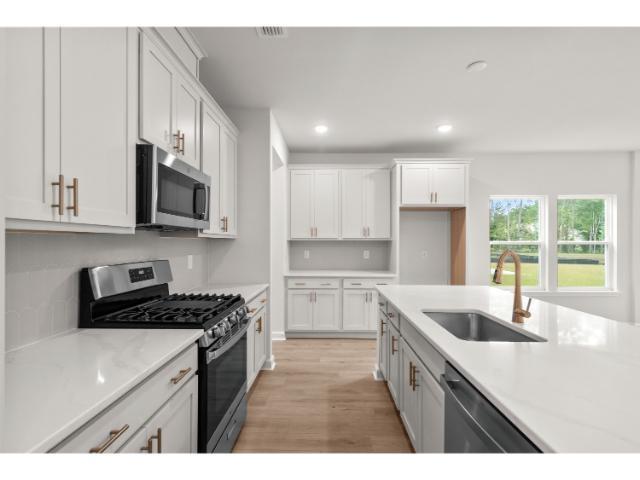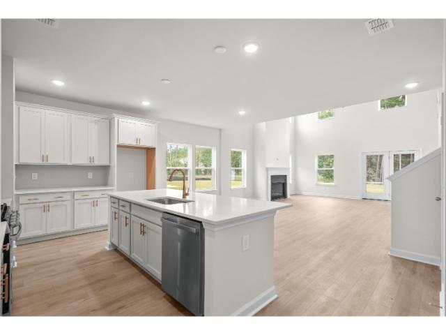 An open-to-below style home with 20-foot ceilings in the family room area with second floor loft above. 4 bedrooms and 3 and a half bath. The Primary Bedroom is on 1st floor, with all others on second floor. Gas Fireplace upgraded LVP flooring, and wood case stairs. Tile shower in Primary Bedroom, gas stainless appliances, gas tankless hot water system, gas heat, and upgraded quartzes counter tops in kitchen and bathrooms.
