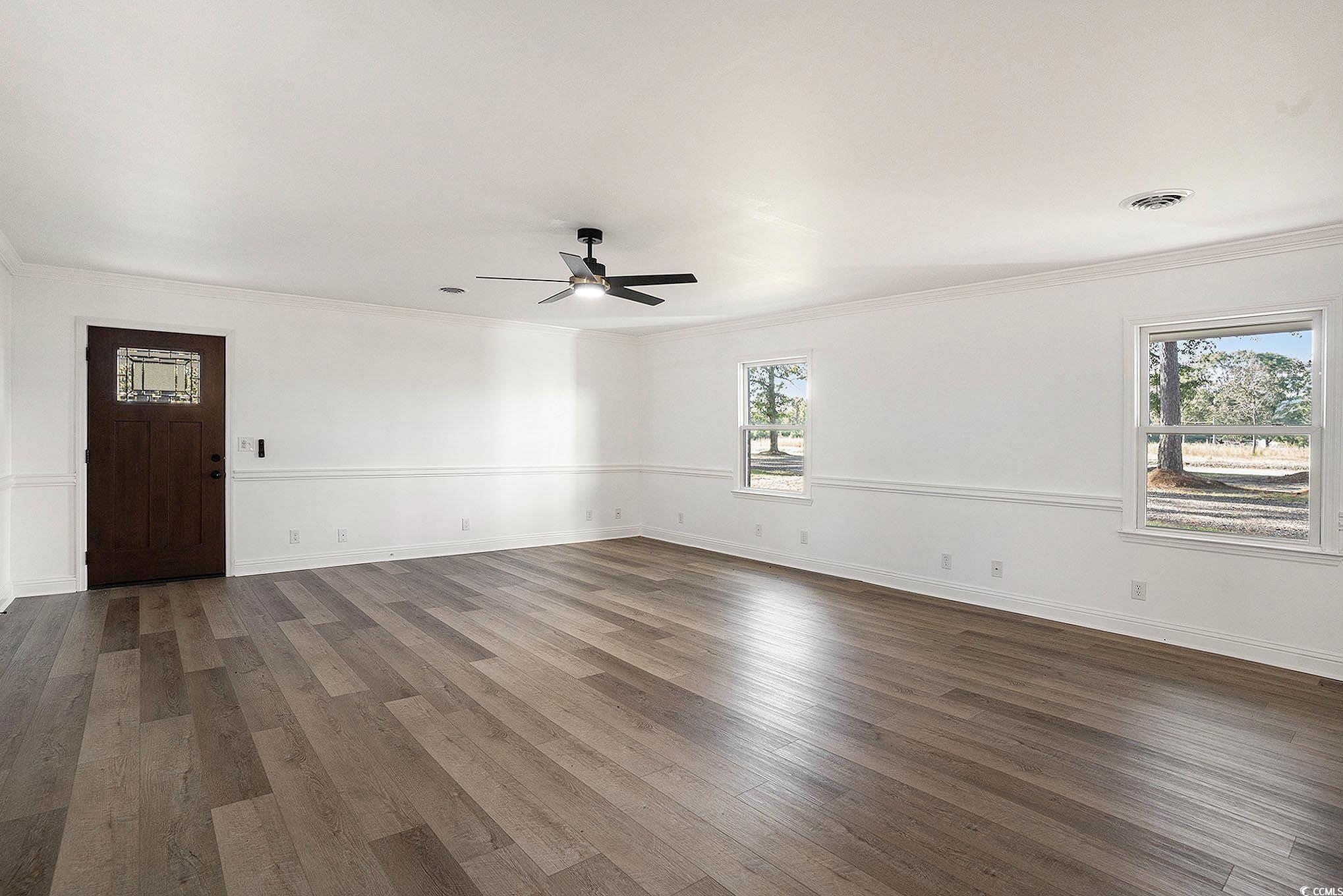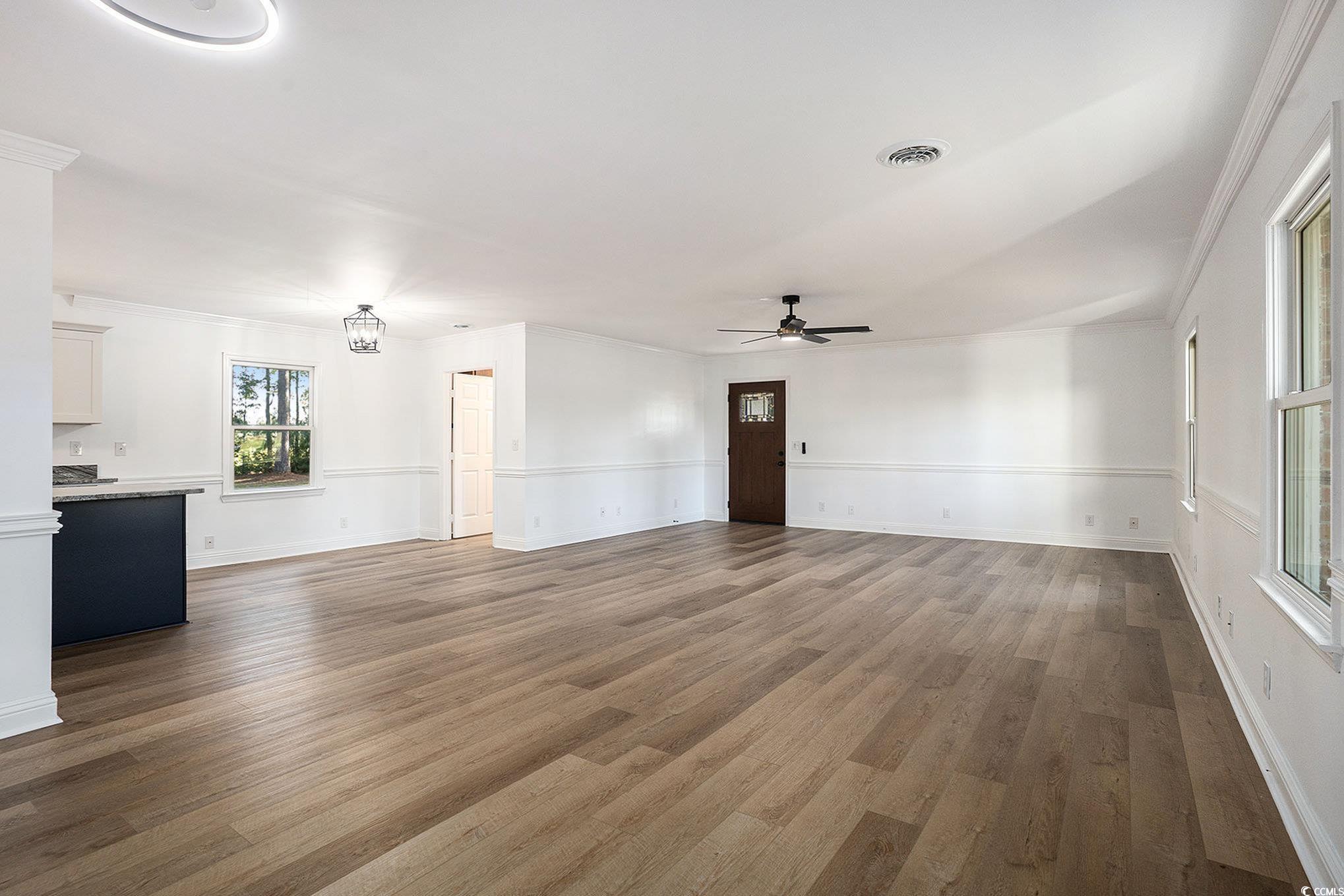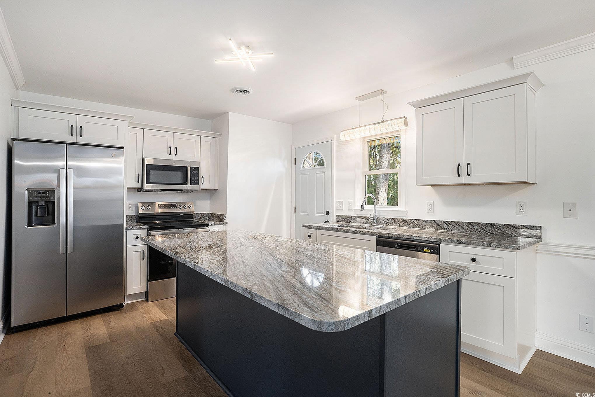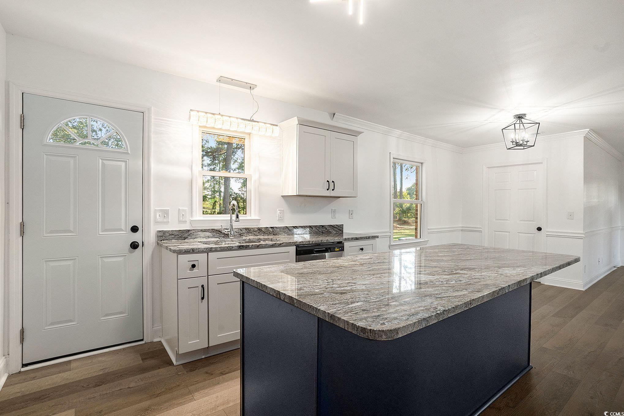Step into this stunningly remodeled brick ranch, perfectly nestled on a peaceful and picturesque 1-acre lot surrounded by natural beauty. Every detail has been thoughtfully updated from top to bottom, blending timeless charm with modern comfort. The open-concept design offers effortless flow throughout, featuring brand-new flooring, elegant crown molding, and an inviting atmosphere made for entertaining or relaxing at home. The gorgeous kitchen boasts all-new cabinets, gleaming granite countertops, and stainless-steel appliances. A spacious laundry room includes a brand-new GE Washer and Dryer for ultimate convenience. Outside, the circular driveway provides ample and enhances the home's welcoming curb appeal. With all the work already done, this move-in ready gem invites you to simply settle in and enjoy country living at its best - just 35 minutes to Pawley's Island, 20 minutes to historic Georgetown, and an easy 60-minute drive to Myrtle Beach.
