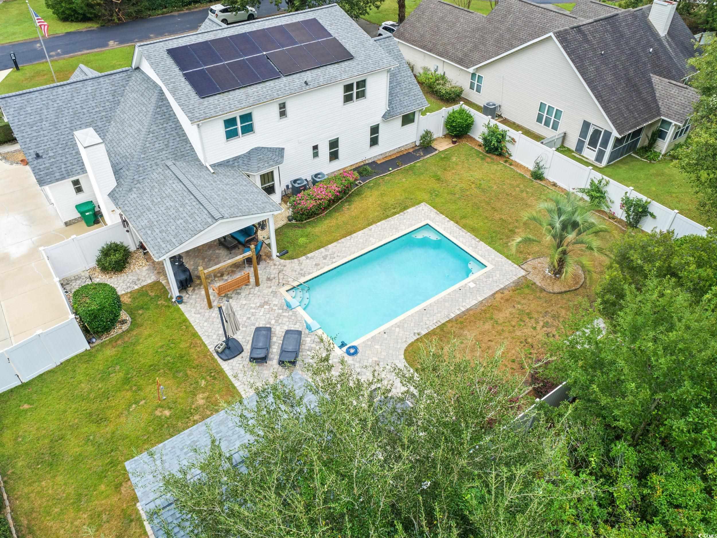 Welcome to this beautifully maintained 4-bedroom, 2.5-bathroom home, ideally situated on a cul-de-sac! Enjoy the spacious, private backyard featuring a refreshing pool and a full privacy fence. Inside, the home offers two generous living areas, and a large kitchen with a rolling island and stainless steel appliances. Brand-new windows throughout the home, along with paid for solar panels provide for ultimate efficiency. The large primary suite is large and complete with a large walk-in closet and a beautifully updated bathroom with a modern walk-in shower and dual vanity. The three other bedrooms are located upstairs with a separate bathroom. A screened in side load garage also provides room for cars and storage. This home is a prime location being close to shopping, grocery stores, and Coastal Carolina University. Dont miss your chance to tour this move-in ready gem schedule your showing today!