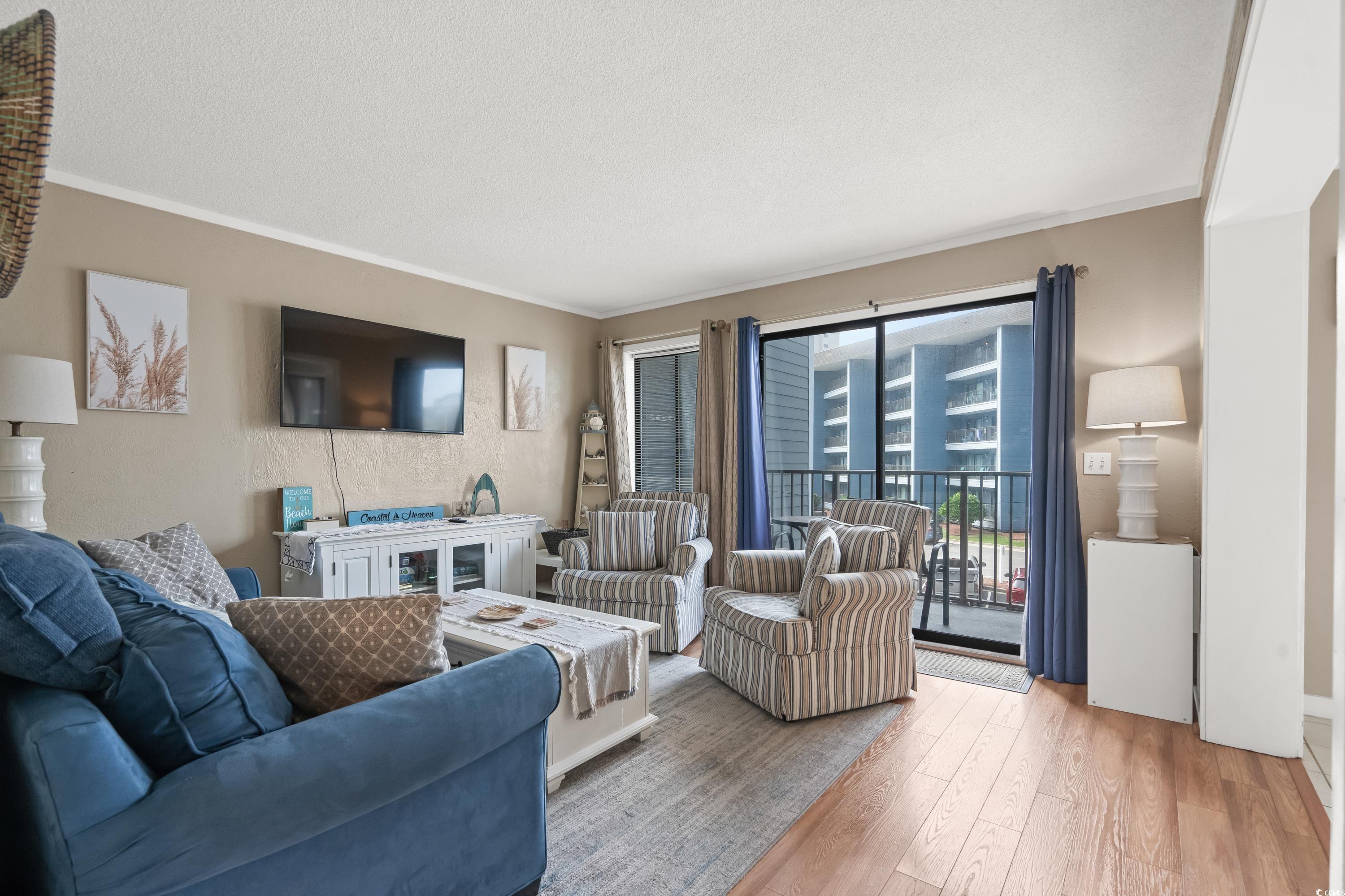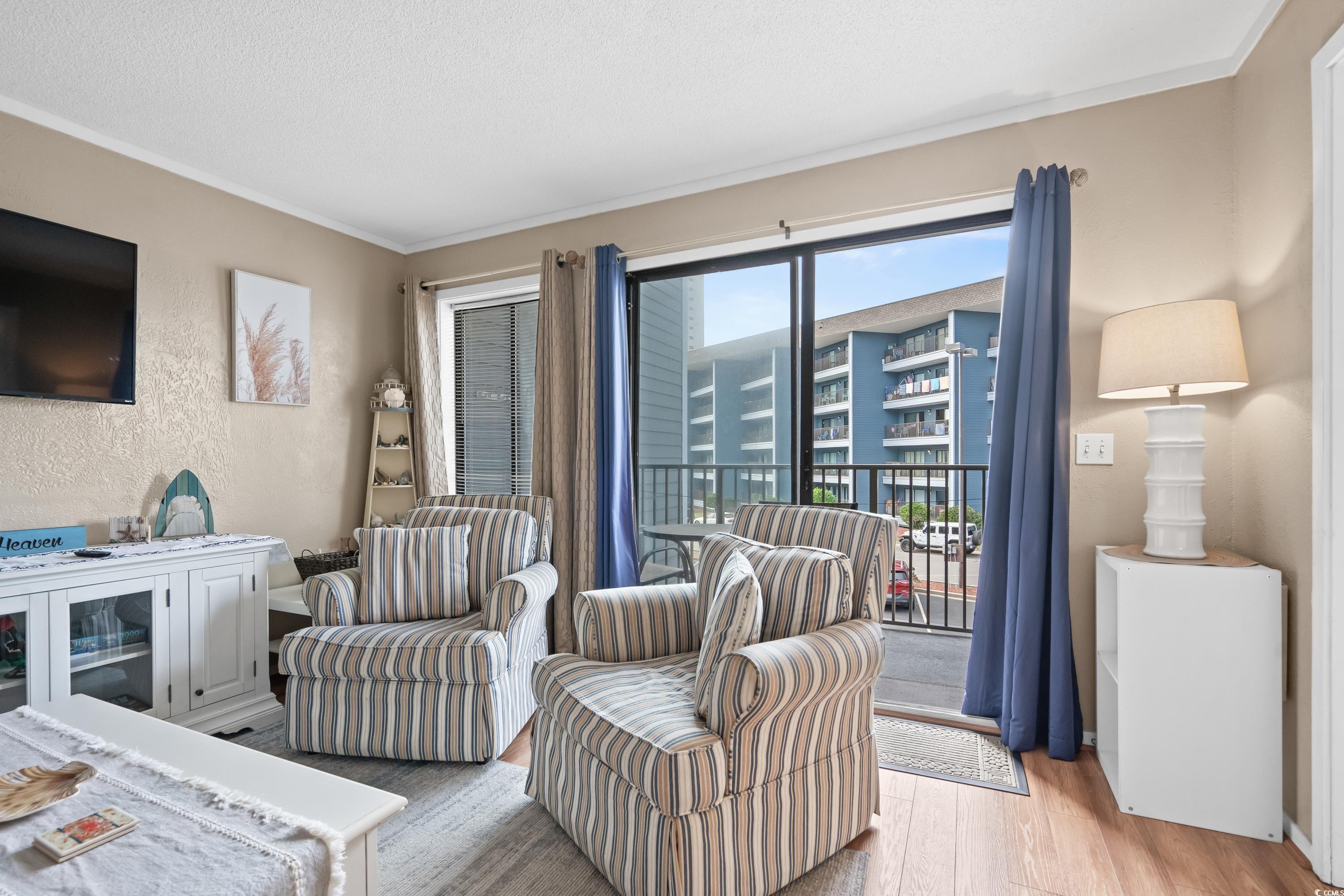 Welcome to this beautifully furnished 2-bedroom, 2-bath condo is situated on the second floor of the gated Myrtle Beach Resort. Tastefully decorated with a bright, coastal inspired theme, it features two sets of sliding doors that open onto an expansive balcony, perfect for enjoying the coastal breeze. The well-coordinated furniture, flooring, and area rugs create a cozy, inviting atmosphere. Whether you're looking for a permanent residence, a vacation retreat, or a savvy investment, this property offers flexibility to meet your needs. Myrtle Beach Resort is a 33-acre oceanfront community with 24-hour security and an array of amenities, including four lighted tennis courts, six swimming pools (two indoors), a lazy river, hot tubs, a fitness center, a bocce court, a game room, and over 700 feet of sandy beach frontage. This resort is located in the heart of the Grand Strand, you're close to everything Myrtle Beach has to offerworld-class golf courses, top-rated schools, fine dining, entertainment shopping, medical facilities, and easy access to Myrtle Beach International Airport. And, of course, you're just moments away from the stunning beaches! Dont miss the opportunityschedule your showing today!