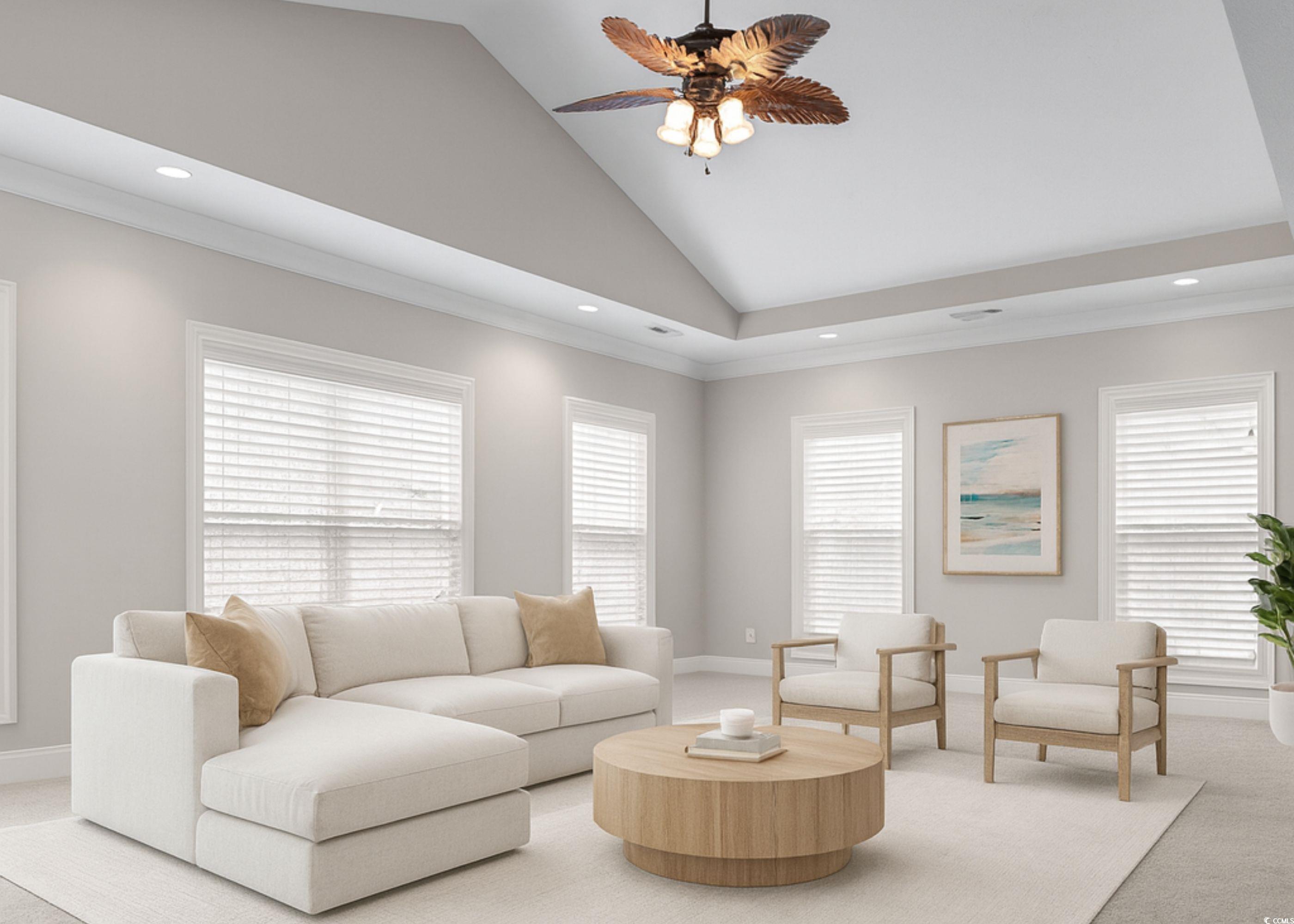 OPEN HOUSE SATURDAY JANUARY 17 12-2PM! LOCATION and CONVENIENCE define this cottage-style raised beach home in golf-cart friendly Market Commonjust a short ride to Myrtle Beach State Park, top restaurants, shopping, and attractions, and within walking distance to the 200-acre Grand Park with ball fields. Enjoy true lock-and-leave living with a low monthly HOA that includes landscaping, trash pickup, and pool service, plus a TWO-CAR GARAGE for beach gear and bikesideal as a primary residence, vacation home, or investment. The St. Lucia floor plansuper spaciousboasts well over 2,000 sq ft of living space. On the ground level, youll find two bedrooms, a laundry/utility room, a full bath, and a paved poolside patio with nearby community pool access. Upstairs features an expansive 25' 20' great room with a tray ceiling and a generous primary suite with dual vanities, a walk-in shower, and a walk-in closet. Fresh interior paint and professionally cleaned carpets make it MOVE-IN READY. Come experience the best of Market Common living! Some photos have been virtually staged.