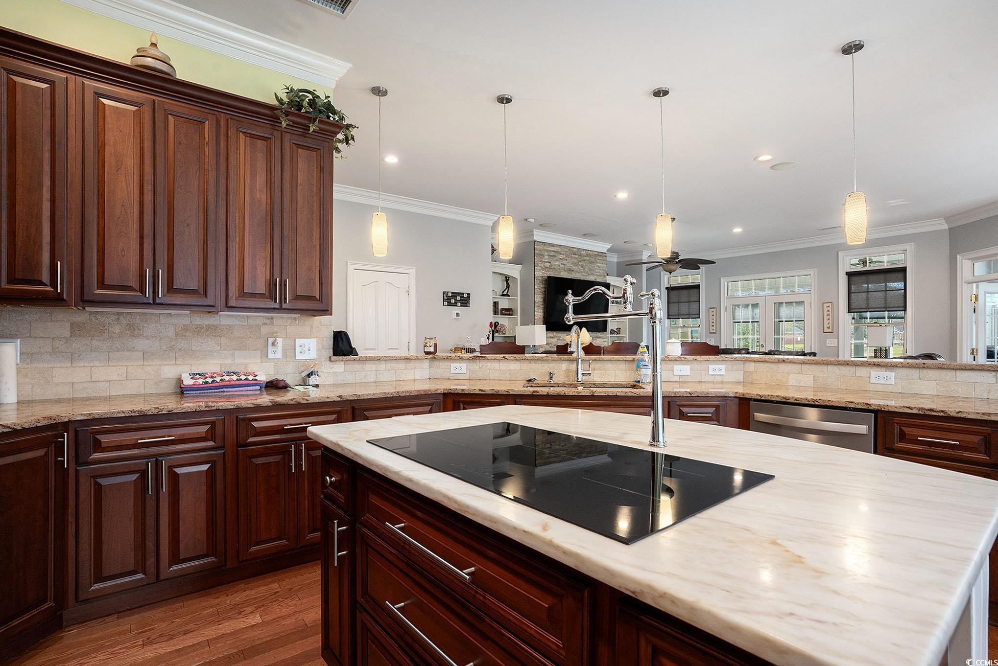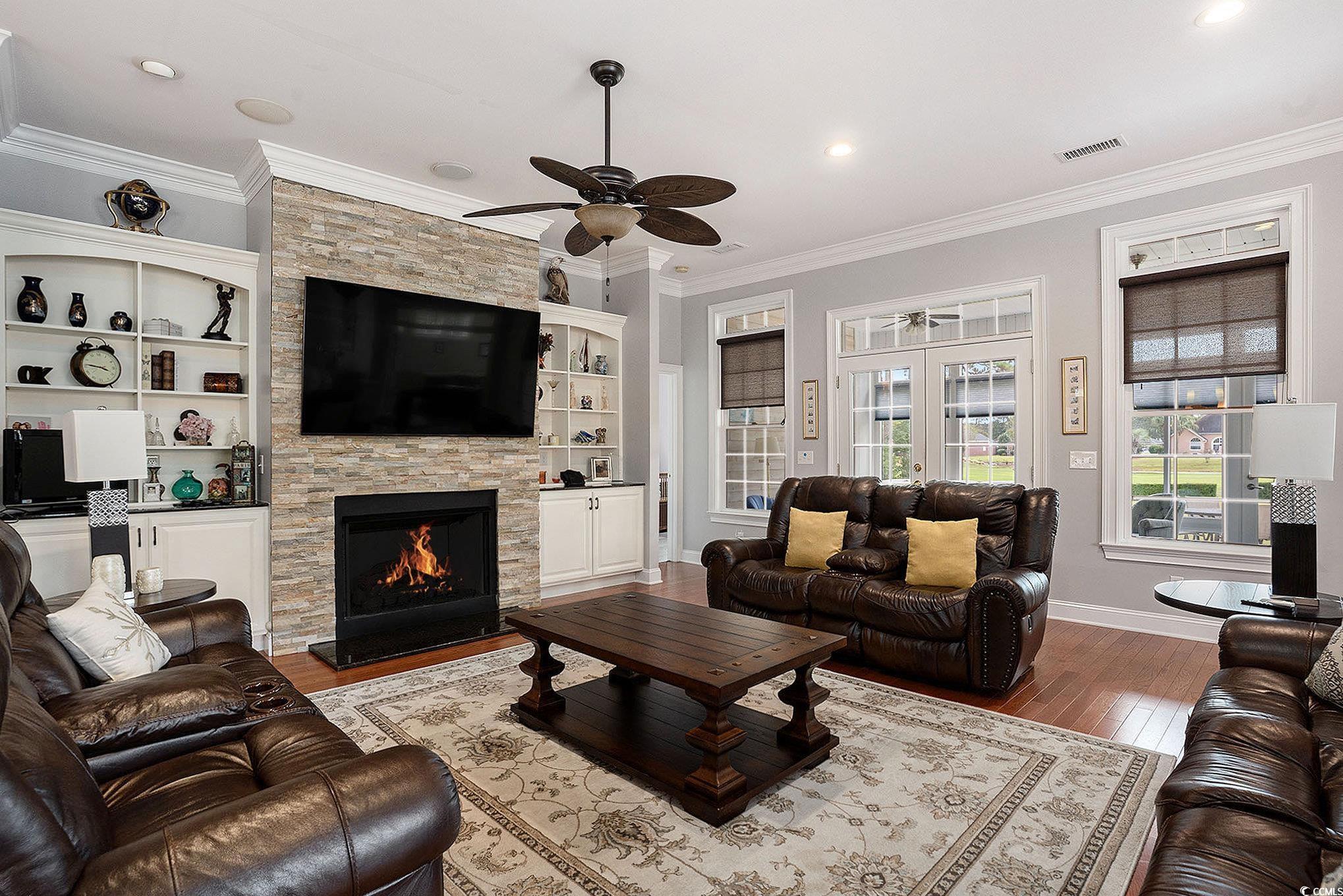Welcome to 512 Allspice Lane - Refined Golf Course Living Experience the perfect blend of elegance, comfort, and function in this exceptional 4-bedroom, 3.5-bath home with a versatile bonus room, ideally positioned within one of Myrtle Beachs most sought-after golf course communities. From the moment you arrive, the beautifully landscaped exterior and oversized 3-car garage set the tone for the craftsmanship that continues inside. Step through the front door to find exquisite details at every turn from crown molding and plantation shutters to a gas fireplace framed by custom built-ins, creating a warm and inviting living space. The gourmet kitchen is a true centerpiece, featuring rich cherry cabinetry with soft-close drawers, a walk-in pantry, and a separate butlers pantry for additional storage and prep space. An enclosed sunroom provides a serene retreat year-round, overlooking the manicured backyard and scenic golf course ideal for morning coffee, evening wine, or weekend entertaining. The dedicated office offers style and sophistication with a custom ceiling design, while the spacious bonus room can easily transform into a media room, guest suite, or playroom. Modern upgrades like a tankless water heater enhance both efficiency and comfort. Residents also enjoy access to premium community amenities including a clubhouse, resort-style pool, and tennis courts all within a picturesque and vibrant setting. Dont miss the opportunity to own this beautifully appointed home in one of Myrtle Beachs premier neighborhoods. Schedule your private tour today and experience golf course living at its finest.