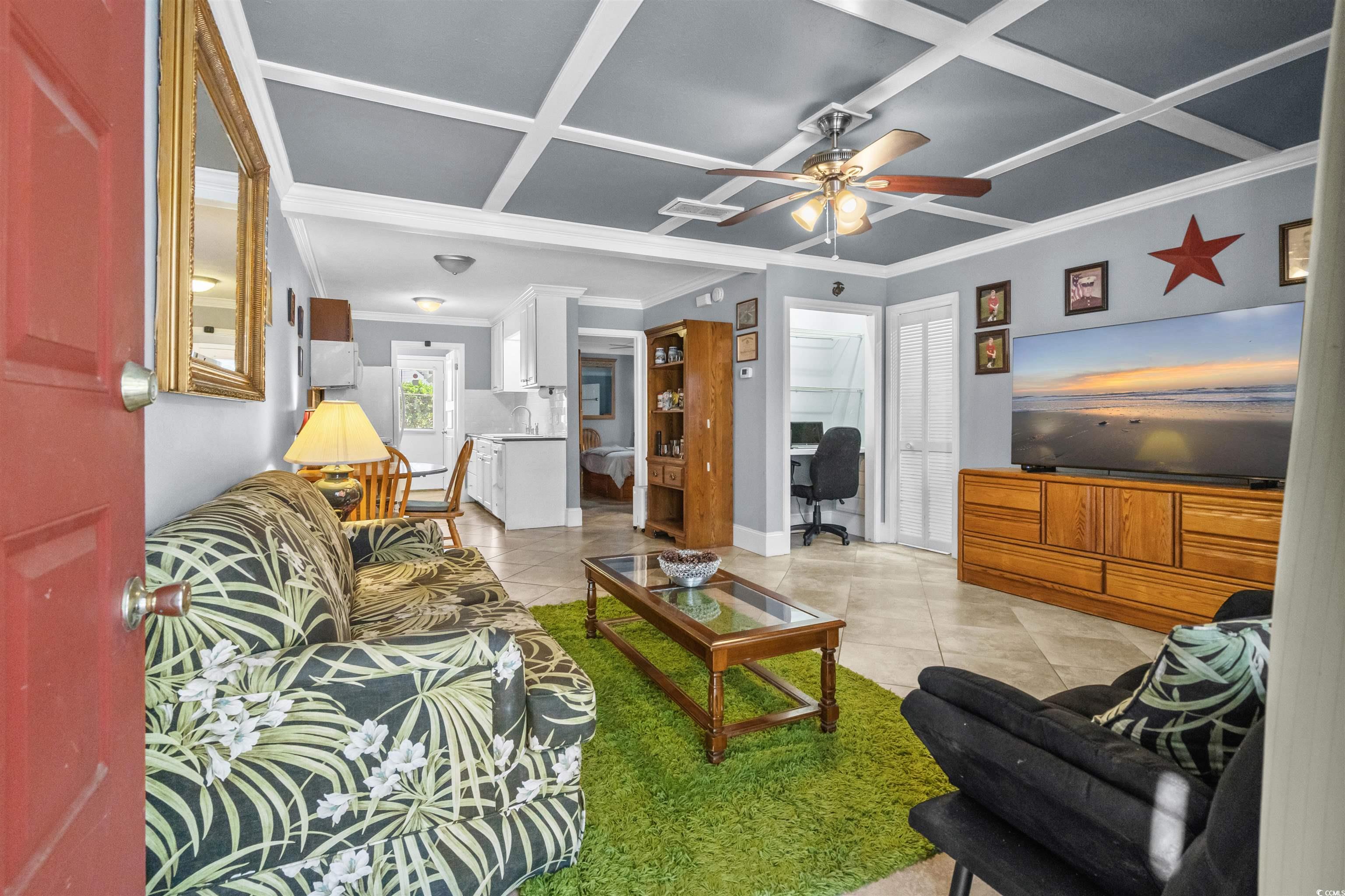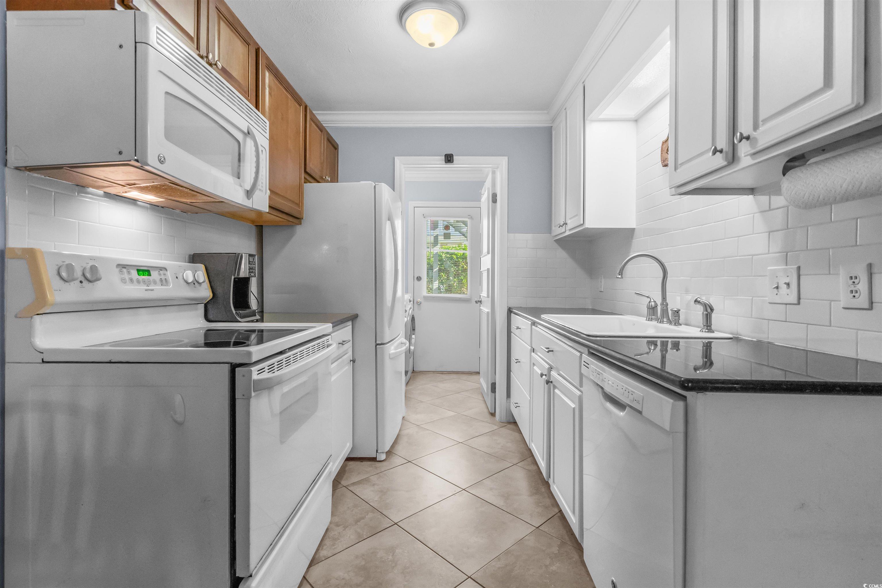Welcome to this lovely 1-bedroom, 1-bathroom unit nestled in the Courtyard at Yardam community. Enjoy peaceful mornings on your inviting front porch, the perfect spot to sip coffee and start your day. Step inside to find tile flooring throughout for easy maintenance and a clean, modern look. The kitchen features granite countertops, a tiled backsplash, and ample cabinet spaceideal for storing all your cooking essentials. A dedicated laundry room includes overhead cabinets for additional storage, helping keep everything organized and making laundry day a breeze. This unit has a new Water Heater and fresh paint throughout. Also the exterior building insurance is included in the low HOA amount. Conveniently located in central Myrtle Beach, this unit is close to shopping, dining, entertainment, the airport, and just minutes from the beach. This unit offers comfort, style, and unbeatable accessibility!