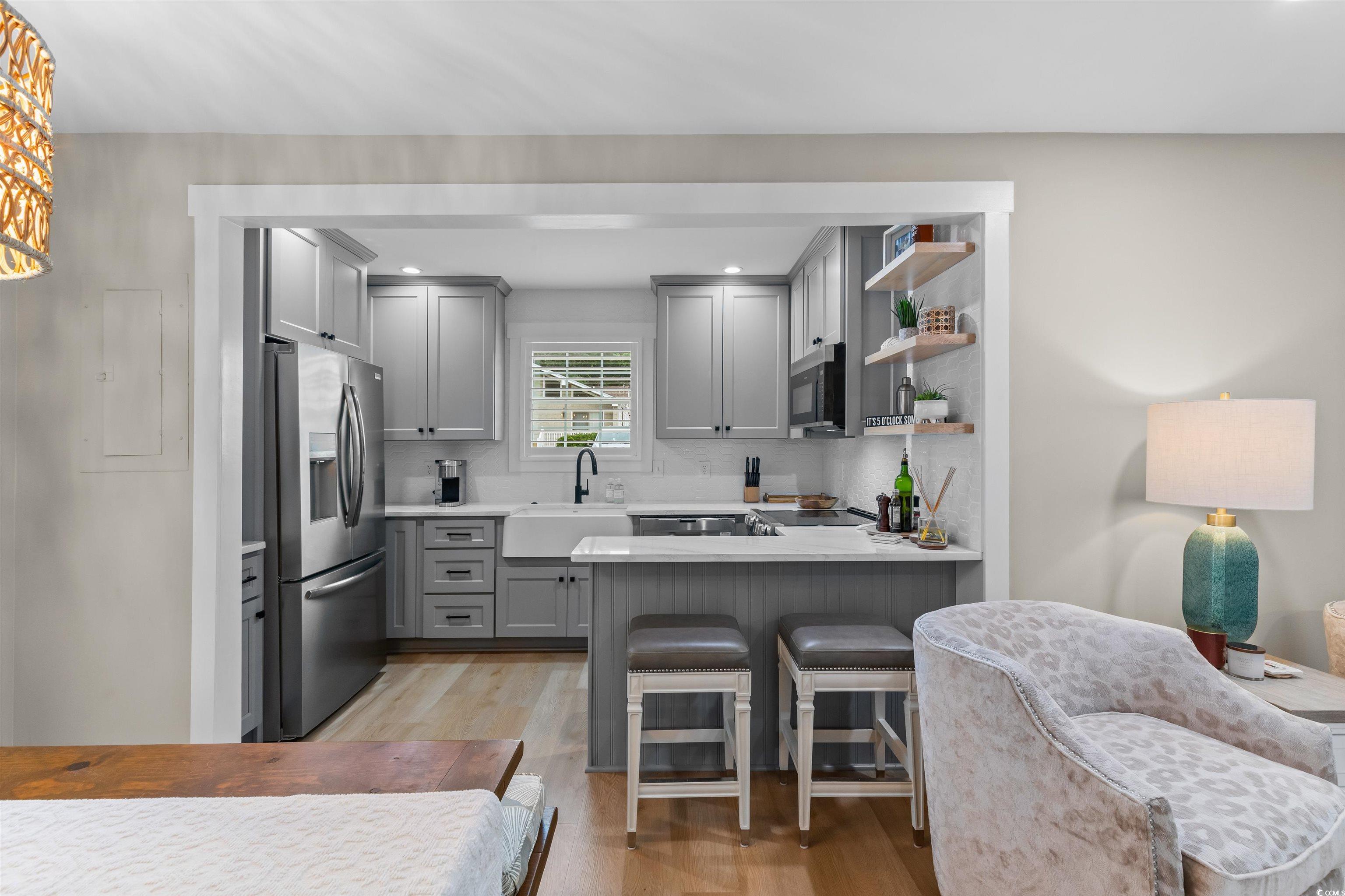 Coastal living dream retreat! 2605 Havens Drive is conveniently located only steps away from the desirable shores of the beautiful Crescent Beach. This stunning, completely remodeled and move in ready beach home offers an elegance that is truly unique! 2605 Havens Drive is a special place offering a first floor owners suite with spa-like primary bath that includes a relaxing soaking tub and floor to ceiling tiled walk-in shower. Quartz countertops and plantation shutters are showcased throughout the home, and the 2nd floor has a convenient beverage center with additional gathering and living spaces. Recent outside updates include hardi-plank siding, partial privacy fence, professional hardscape patio, landscaping and turf- perfect for your guests and all your entertaining needs! Do not miss seeing this simply styled home with new LVP flooring, opulent lighting, and beautiful fixtures throughout! If you are a family looking for a beach lifestyle or an investor looking for luxury accommodations for your even more meticulous guests, do not miss seeing this elegantly appointed, comfortable yet chic beach residence!