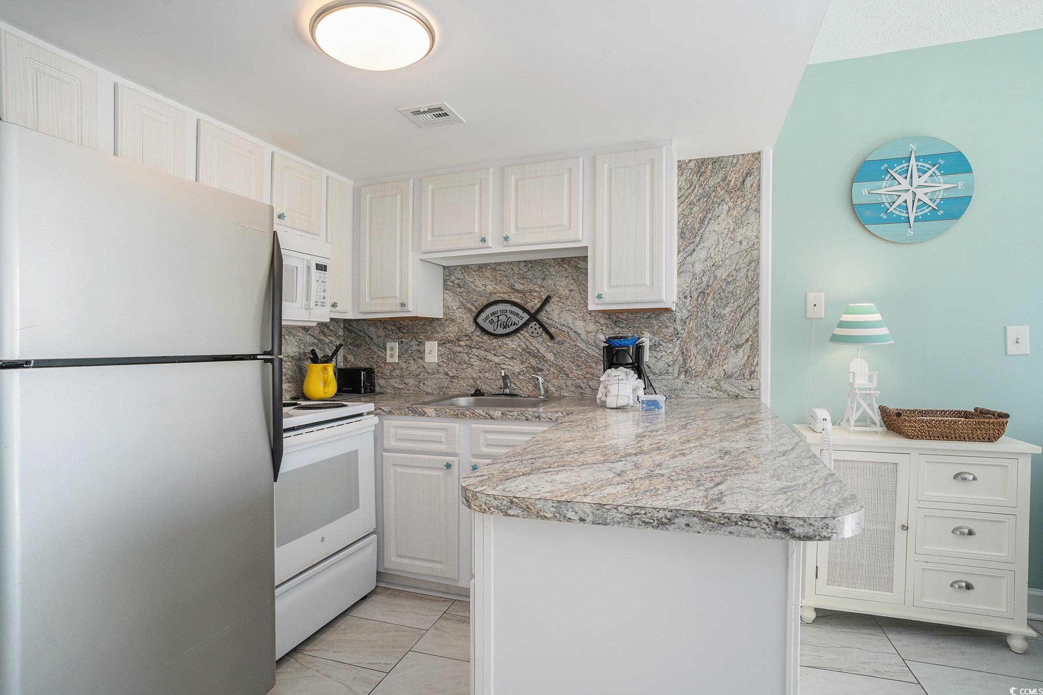 This recently renovated oceanview efficiency condo features fresh paint, tile flooring throughout, and new luxurious bedding, including a bed and sofa bed. The fully equipped kitchen offers ample counter and cabinet space, a full-sized refrigerator, microwave, stove, and oven. Step out onto the balcony to enjoy a fabulous view of the Atlantic Ocean. This unit would be perfect as a primary residence, vacation getaway, or investment property. Located in The Palace Resort, amenities include indoor and outdoor pools, a jacuzzi, sauna, putting green, fitness center, arcade, restaurant, and guest laundry. Just minutes from Myrtle Beach's top dining, shopping, golf, and entertainment,