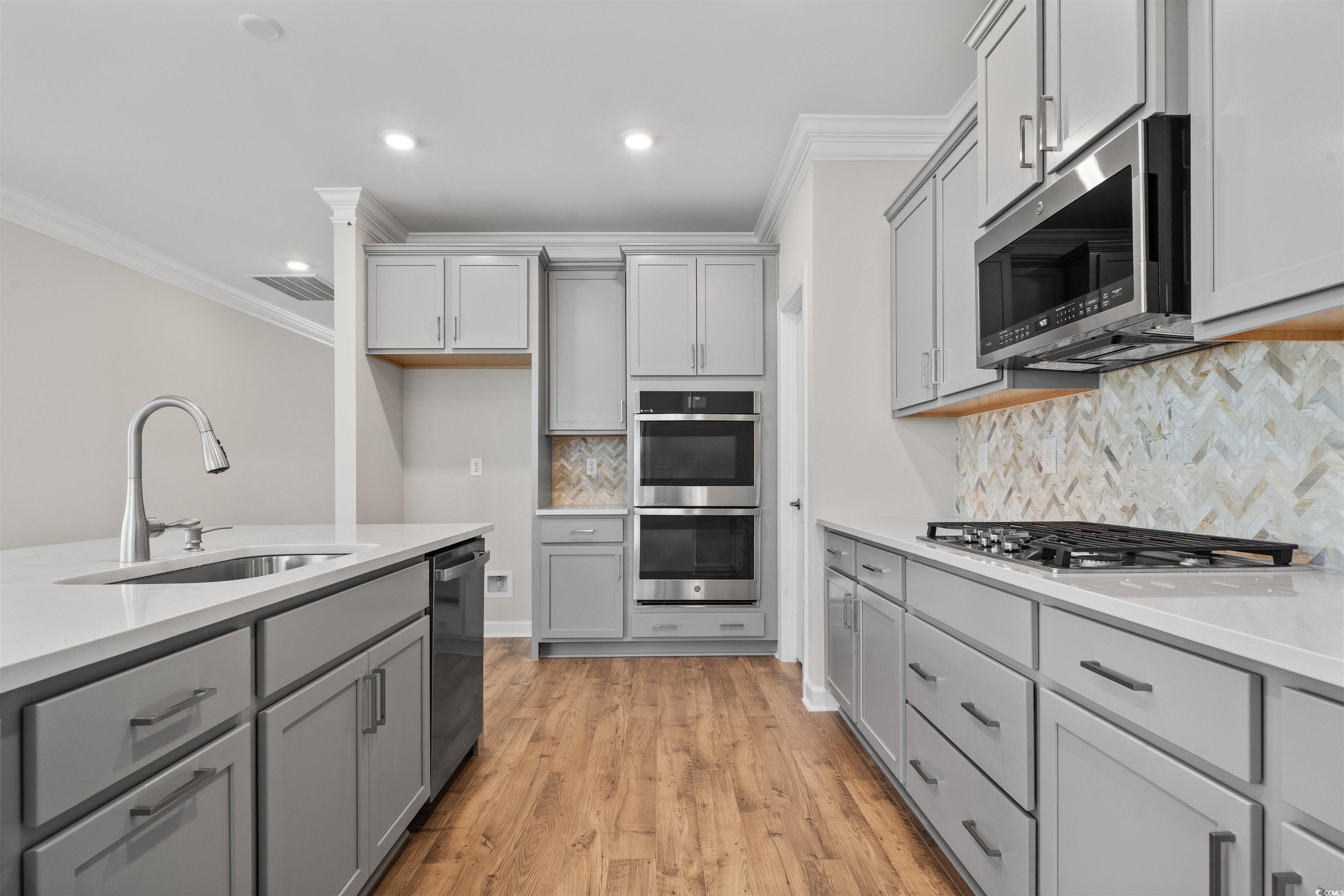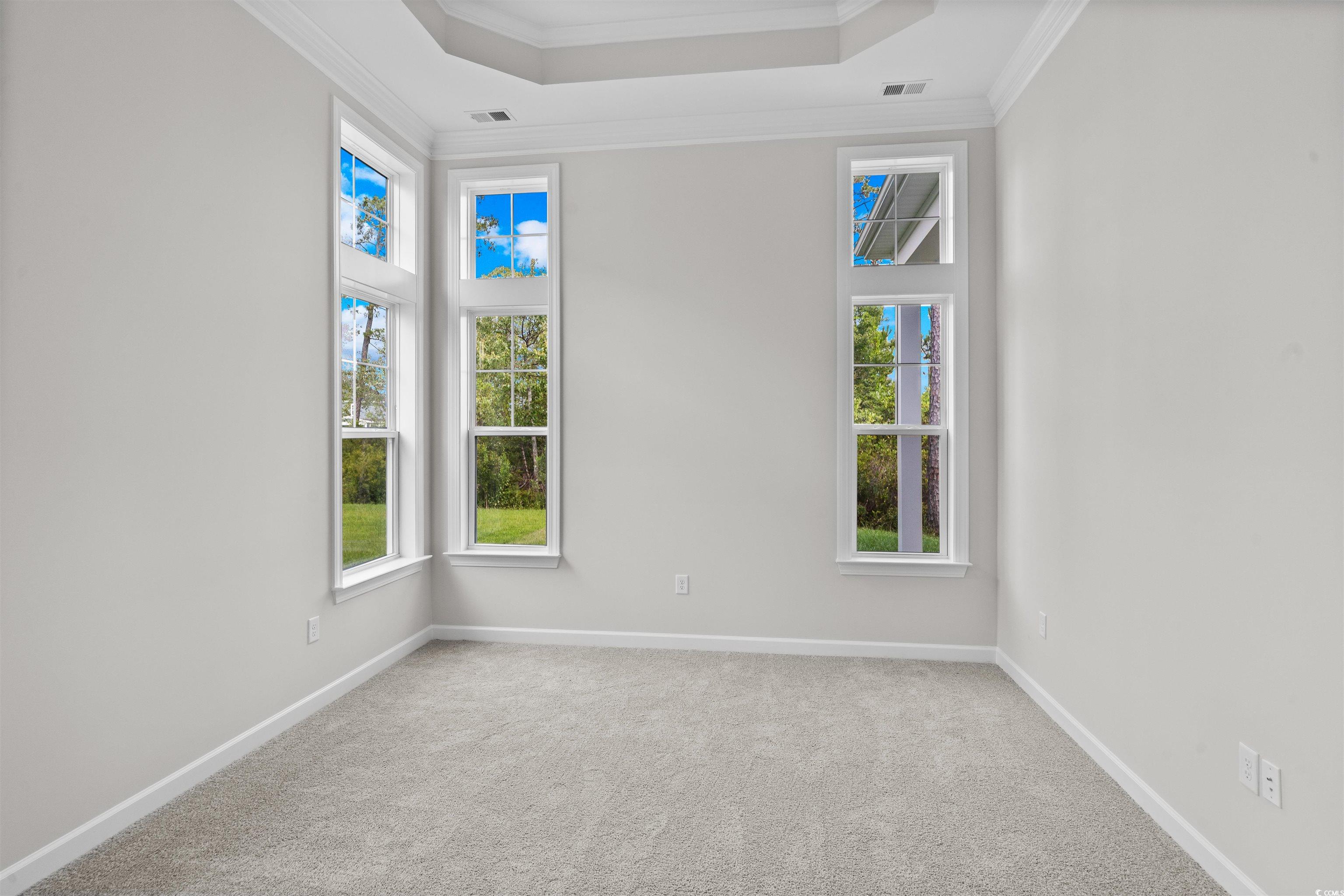 The Newberry is 2,570 finished square feet with four bedrooms, loft and three full baths. As you enter from the covered front porch, you will find an open concept living space with 12' ceilings in the great room with a tray ceiling. The kitchen boasts a gourmet island with additional countertop space and double wall ovens that is great for entertaining guests. Just past the foyer is a drop zone and laundry area with a bench for seating while you unload beach accessories or sand-filled clothes. The owner's suite is just off the living area with a tray ceiling, walk-in closet, double vanity, and a walk-in tiled shower. Welcome to Waterbridge, an established gated community in the sought-after Carolina Forest area of Myrtle Beach! If you are looking for a stunning location to build a new home that is also rich in amenities for you and your family to enjoy, look no further. Living in Waterbridge means living in a location that brings nature to your doorstep. With treelined and water view homesites, you are bound to find the perfect location to build your dream home. The overall coastal cottage-style homes show curb appeal at every angle and the approximately 120 acres of preserved land and 80 acres of lakes help make this the charming community many have come to love. There is no doubt that the bread and butter of Waterbridge are the award-winning, resort-style amenities featured there. Finding things to do just outside your front door will not be hard here. Grab a friend and go enjoy tennis, pickleball, or basketball. Journey out on Palmetto Lake via a boat launch where you can partake in all of the exciting activities lake life has to offer! Gatherings have never been better than at the beautifully crafted clubhouse with a refreshment center and catering-style kitchen. Break a sweat at the 24-hour fitness center, complete with cardio and weight training options. Waterbridge is also home to the largest residential swimming pool in South Carolina which includes Olympic-size swimming lanes, a landscaped island, jetted spa, and a swim-up refreshment center! Pack a bag because you will want to spend the whole day there! Outside of the community, the Myrtle Beach area has so much to offer! From golf to beautiful sprawling beaches with some delicious restaurants nearby, it will not be hard to find things to keep you busy! Nearby malls and outlets are good for some much-needed retail therapy and there is always a plethora of live entertainment and festivals to bring people together. Highly ranked schools in the Carolina Forest area and the close proximity to medical. Photos in this listing are of a similar home and not the actual home.