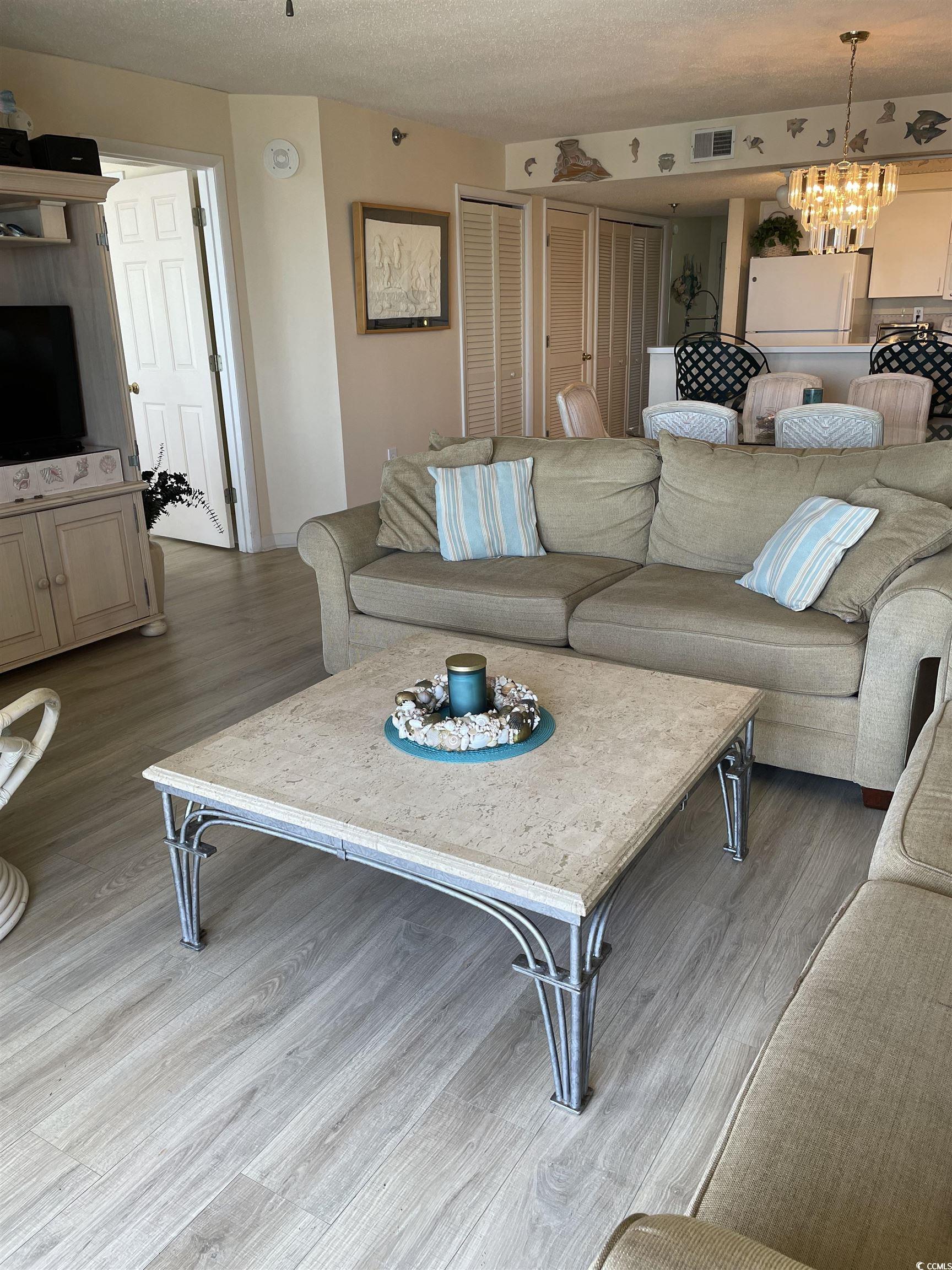 Windy Hill is the place to be. Bring your vision and experience the best of coastal living in this fully furnished 3 bedroom 3 bathroom condo located in one of North Myrtle Beach's most desirable areas. This turnkey, spacious retreat is not only perfect for personal use but also offers comfort, convenience and rental potential. Put in your personal touches while enjoying the unbeatable views of the sparkling Atlantic ocean. The large living room/dining room areas are filled with natural light and flow seamlessly to the balcony where you and your guests can enjoy morning coffee and breathtaking sunrises over the water. This open layout with new luxury vinyl flooring creates a natural flow from room to room, making the home welcoming for both everyday living and entertaining. The primary suite offers a peaceful retreat, with space for a king-sized bed and the rare luxury of a direct ocean view. Walk in closet provides ample space for everyday living. Wake up each morning to the sound of the waves and the salt-kissed breeze. The adjoining primary bathroom provides both function and potential, featuring a double-sink vanity, a jetted garden tub perfect for unwinding, and a separate shower. This suite is an inviting canvas where you can create your own coastal sanctuary with finishes and touches that reflect your style. The second bedroom is equally comfortable, with a queen-sized bed and its own private full bath. Ideal for guests or family, its a welcoming space that offers privacy and convenience. The third bedroom features two twin beds and a private bath, making it a versatile option for children, visiting guests, or even a home office. With a functional layout and plenty of potential, this room can easily be customized into the perfect retreat for any need. At the heart of the condo, the kitchen is designed for both everyday living and entertaining with a new refrigerator, a pantry, plenty of cabinets, space and a functional layout. The new full sized washer and dryer are a plus Attached storage closet provides a place for all your beach items. This is your opportunity to own a beautiful beach front condo in the desired Windy Hill section of North Myrtle Beach. Close to everything. Have your realtor schedule an appointment to see. Sold ""As is"".
