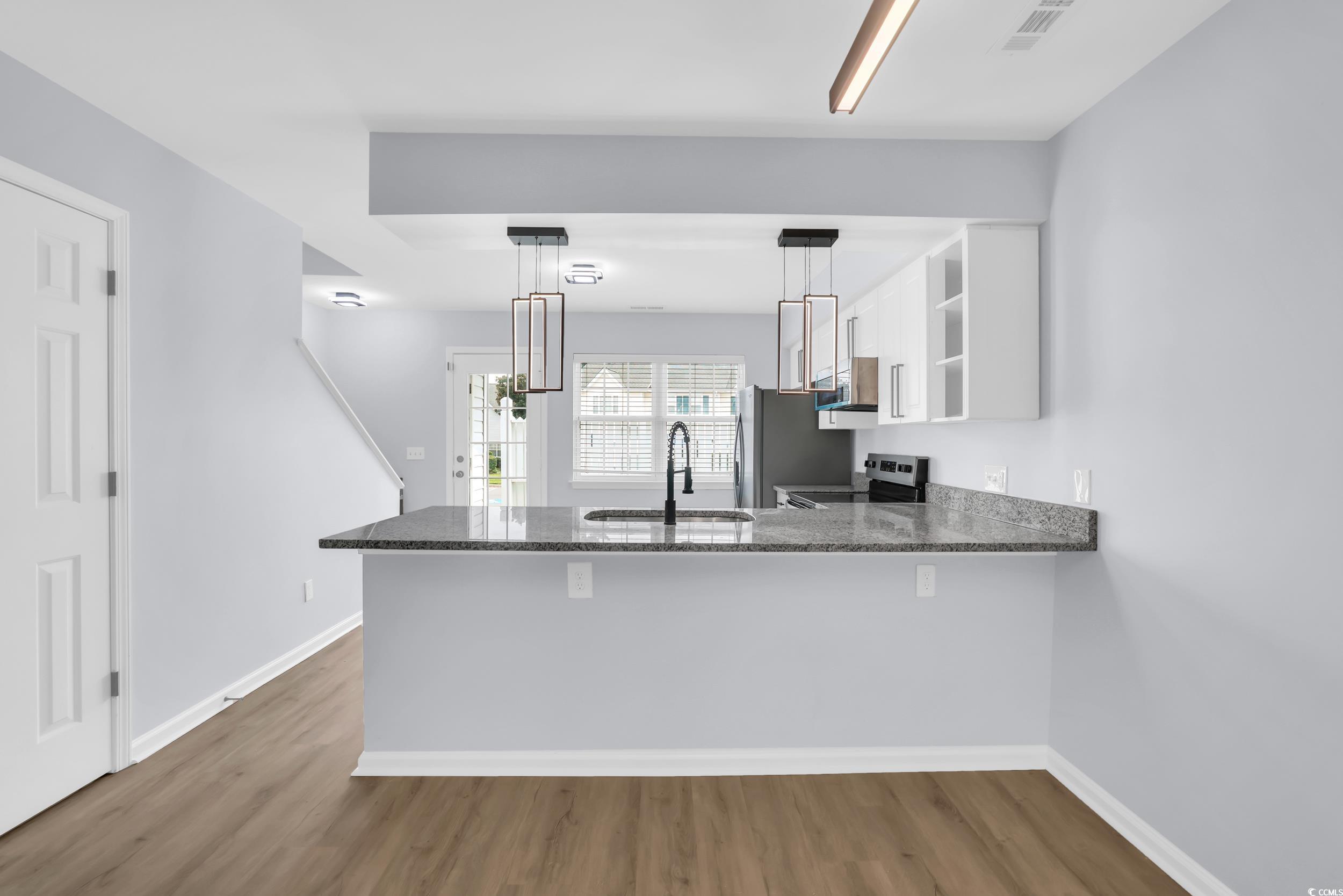 If you are looking for a town home in the heart of North Myrtle Beach, just blocks from the ocean, here you go. This town home has been upgraded and is located in the highly desired Ocean Drive area of North Myrtle Beach. Property features an open concept, LVP flooring, new granite counters in the kitchen as well as new stainless steel appliances, and much more. All lighting has been updated as well as fans. Both bedrooms are spacious and the primary bedroom has a renovated bathroom with custom walk in tile shower and more. There is a half bath on the ground level for guests to use and the property also had a laundry area with full size washer and dryer. This property has been priced to sell if you look at what is for sale in the community and has already sold. You won't beat this one. There is a private patio area off the back of the home and this property is MOVE IN READY. Do not wait around, schedule a showing today!!!