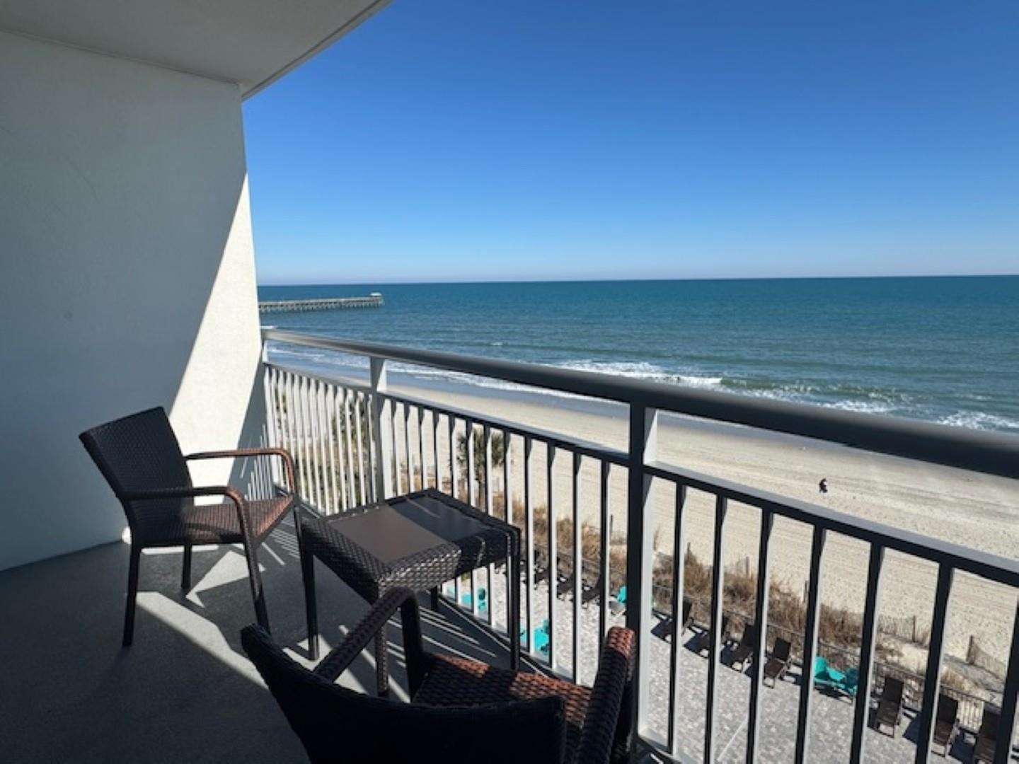 OCEAN FRONT Investment! 1 bedroom w/ larger square footage, sleeps 8. Primary bedroom offering 2 queen sized beds (both brand new box springs and mattresses 2025), a Murphy bed located in the living room, and a brand new Queen sized sleeper sofa in the living room and chair (both 2025). Kitchen & Bathroom granite countertops, stainless appliances, and whirlpool tub. New: 2 TV's (2025), mirror in entry, Dining Table & chairs (1 yr. old), Washer/ Dryer (2 yrs.old), HVAC (4 yrs. old). Newer high rise, floor to ceiling/wall to wall window/slider with direct ocean view from inside the open-concept kitchen/ dining/ living room area. Large tinted slider to private balcony offering views of the pier, Atlantic ocean, and amazing sunsets. Investors take note of the GRI #s! HOA fee includes ""everything"": interior & exterior insurance, electricity in the unit, water & sewer, primary antenna/ cable tv, internet access, pest control, and trash pickup. Amenities include: indoor waterfall pool, ocean front outdoor pools, in & outdoor hot tubs, splash pool for kids, and a lazy river. Walking distance to Wicked Tuna Restaurant, the pier, Boardwalk, Skywheel, game rooms, and many more attractions just steps away.