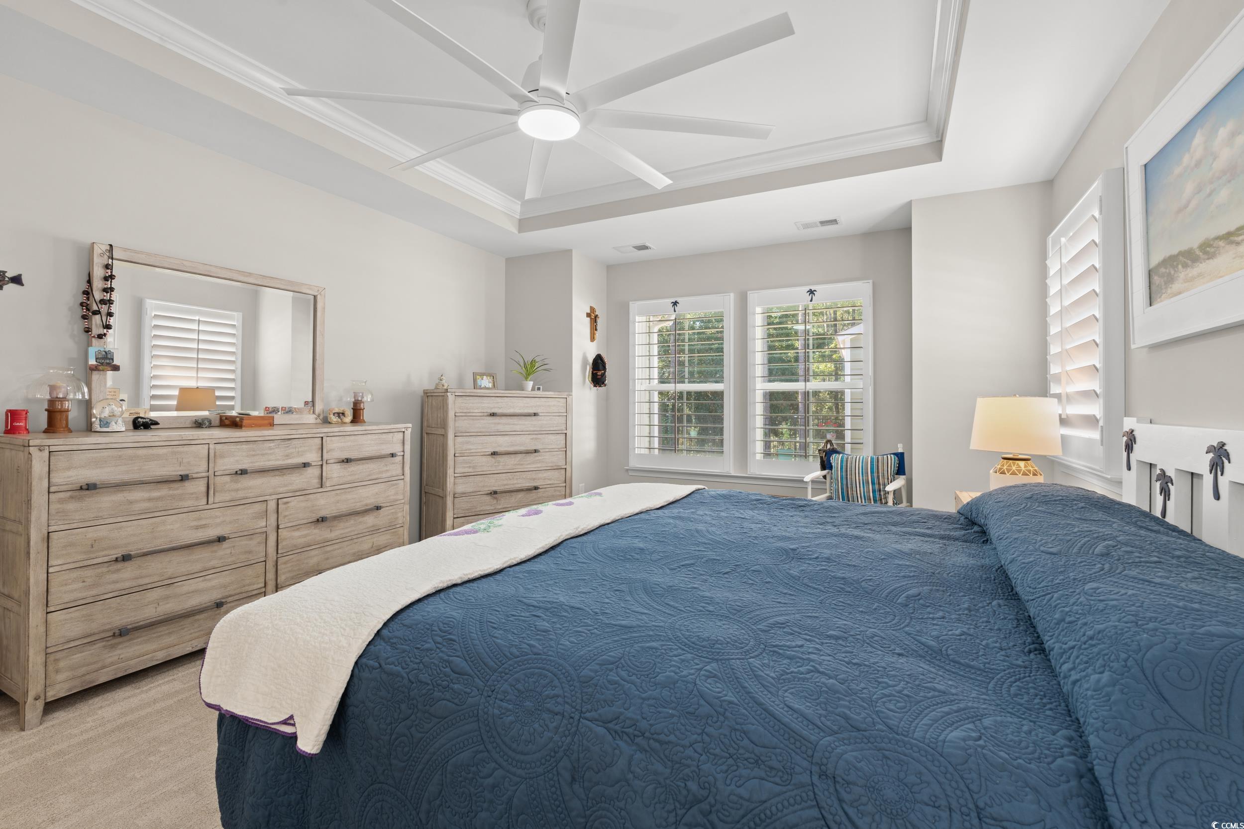 PrimaryBedroom: TrayCeilings, CeilingFans, LinenCloset, WalkInClosets
