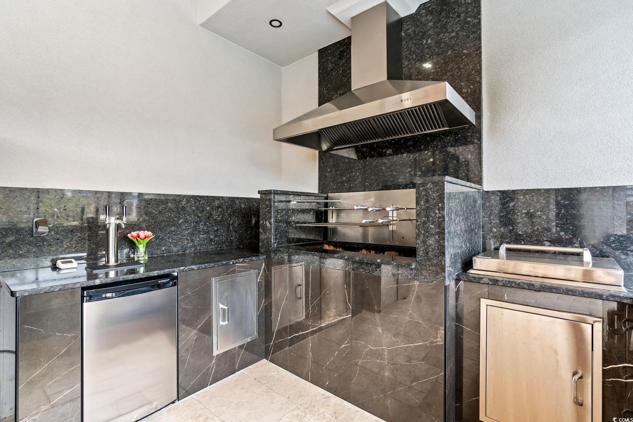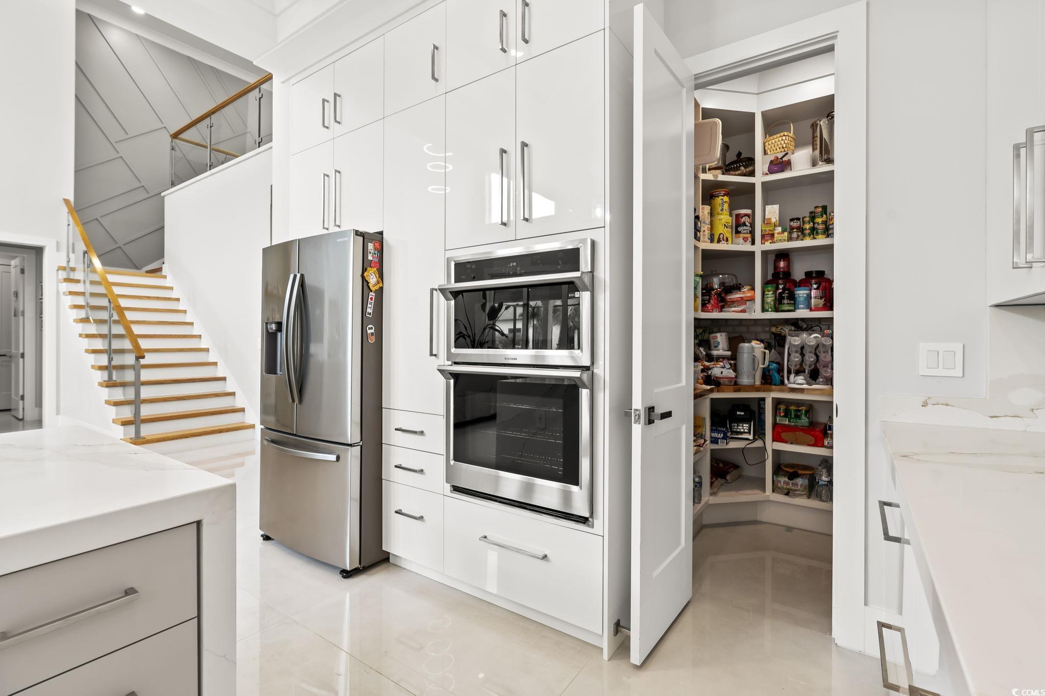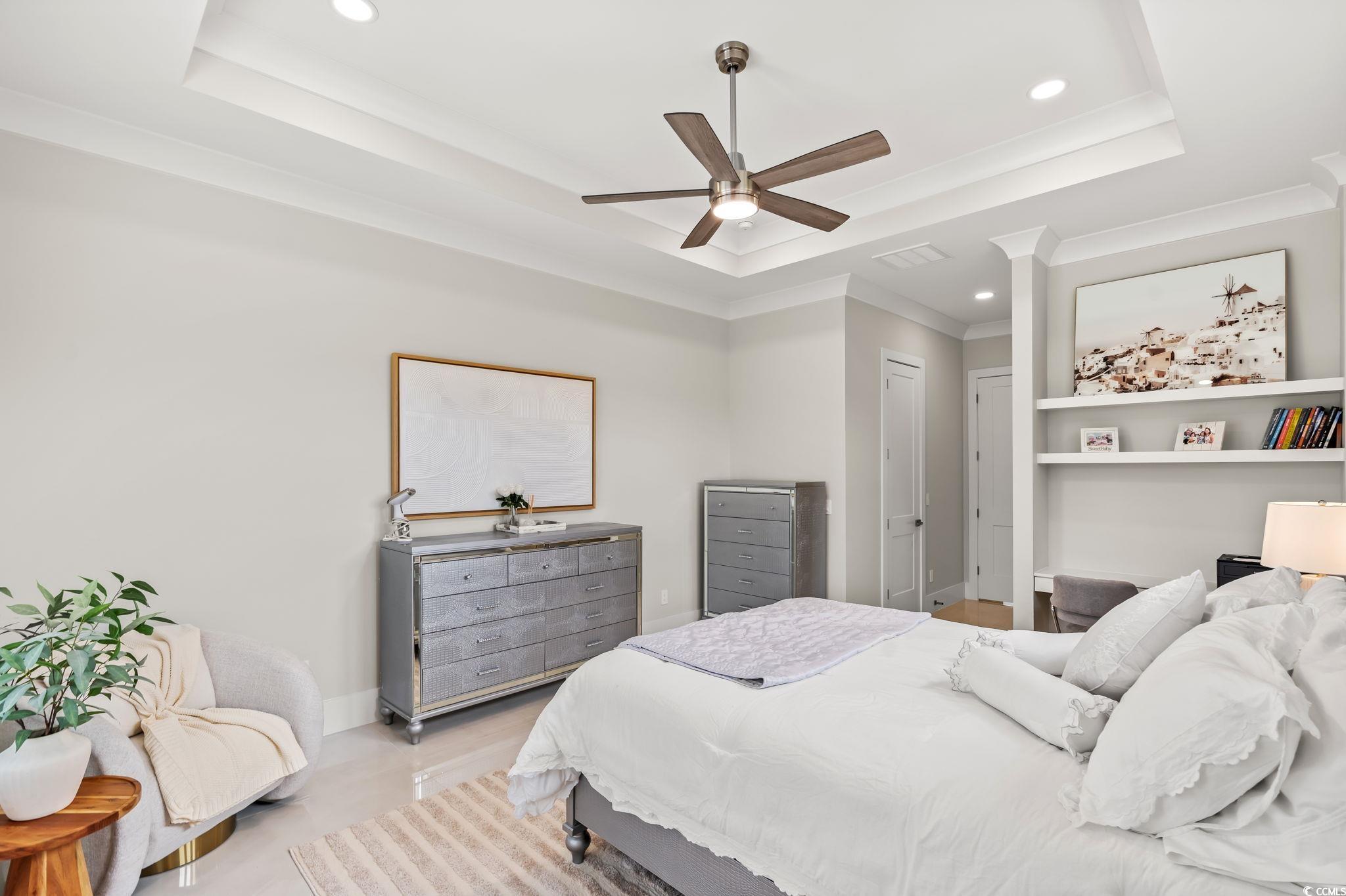 This exquisite custom-built residence is located in the gated community of Carolina Waterway Plantation along the Intracoastal Waterway. The home, featuring 4 bedrooms, 1 office, and 3.5 bathrooms, blends architectural elegance with resort-style living. Built with 2x6 exterior walls, spray foam insulation in the walls and the attic, and a sleek white stucco finish, it is accented by black modern windows, soffit lighting, a paver driveway and walkway, and stone hardscape with palm tree detailing for timeless curb appeal. The outdoor oasis features a metal screen enclosure over the pool. The pool size is 15 x 27 feet, along with an 8 x 8 feet jacuzzi spa, a waterfall wall, travertine tiles pool deck, and a full outdoor kitchen complete with a Brazilian grill, stove, refrigerator, beer keg, and granite countertopsperfect for entertaining family and friends. A half bath, storage room, and wood-paneled porch ceiling add to the luxury experience. Inside, sophistication flows through every detail4 x 4 tile floors throughout the home, high ceilings, crown molding, and wood ceiling accents. The living rooms 22-ft stone-accented wall, gas fireplace, and glass handrail staircase create a grand architectural statement. The chefs kitchen offers quartz countertops, a waterfall island, a gas cooktop, a built-in oven and microwave, and plenty of European glossy cabinetry, custom built-in shelving in the pantry room. All four bedrooms are spacious with tray ceilings and large windows; the primary suite impresses with his-and-hers custom closets and a spa-like bath featuring dual vanities, rainfall showers, and a freestanding soaking tub. Additional highlights include an epoxy-coated garage, smart camera/speaker systems, and professional tropical landscaping. Every element of this home is designed for beauty, comfort, and modern coastal living. The community features a tennis court, an outdoor pool with a clubhouse, Boat and RV parking/storage, and waterway access ramp. Located near stores, restaurants, and a hospital with a short drive to the Atlantic Ocean beaches, this property is your Perfect Dream Home. Don't miss out and schedule your showing today!