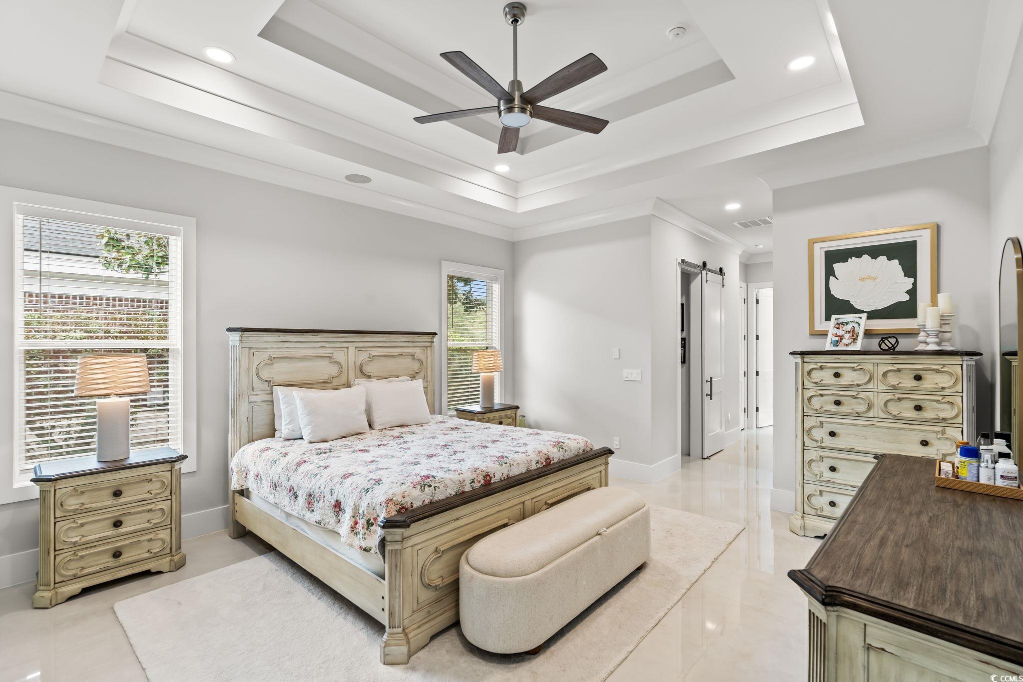 PrimaryBedroom: TrayCeilings, CeilingFans, LinenCloset, MainLevelMaster, WalkInClosets
