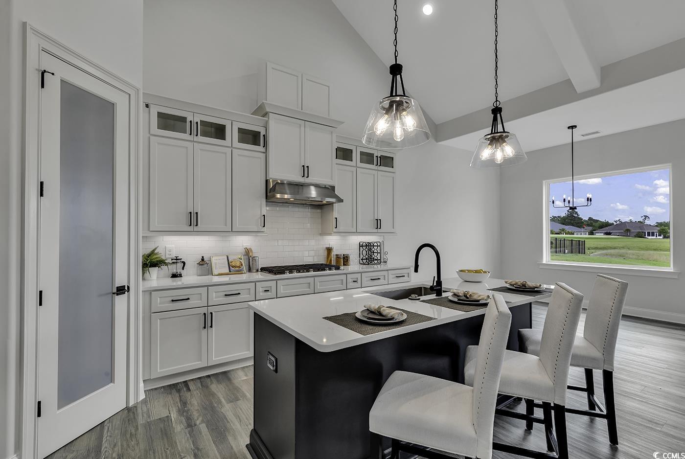 Experience timeless elegance and modern comfort in this stunning 4-bedroom, 4-bath home located in the highly sought-after Pine Lakes neighborhood of Myrtle Beach. One of the last estate lots to be built on!!! A 3 car garage with motor court gives plenty of parking. Expertly crafted by one of the areas premier builders, this home showcases exceptional design, quality finishes, and meticulous attention to detail throughout. The open-concept main level features three spacious bedrooms and three full baths, including a luxurious master suite with his and hers walk-in closets and a spa-inspired bathroom with dual vanities, an oversized walk-in shower, and a linen closet. The great room impresses with vaulted ceilings, a beautiful gas fireplace, and custom built-in cabinetry and bookshelves. The chefs kitchen offers high-end stainless steel appliances, solid wood soft-close cabinetry, quartz countertops, a large island with seating, a walk-in pantry, and both a breakfast nook and formal dining room. A convenient laundry/mud room and 3 car attached garage completes the main floor. Upstairs, a versatile 4th bedroom/bonus room with a full bath provides the perfect guest suite or flex space. Enjoy outdoor living on the spacious covered rear porch and large patio with plenty of room for a pool and entertaining area. Thoughtful details include vaulted and tray ceilings, custom shelving, upgraded trim and closet systems, and an inviting open layout ideal for entertaining. NO HOA! Price and plans subject to change. Pictures are of a similar home and not the actual home.
