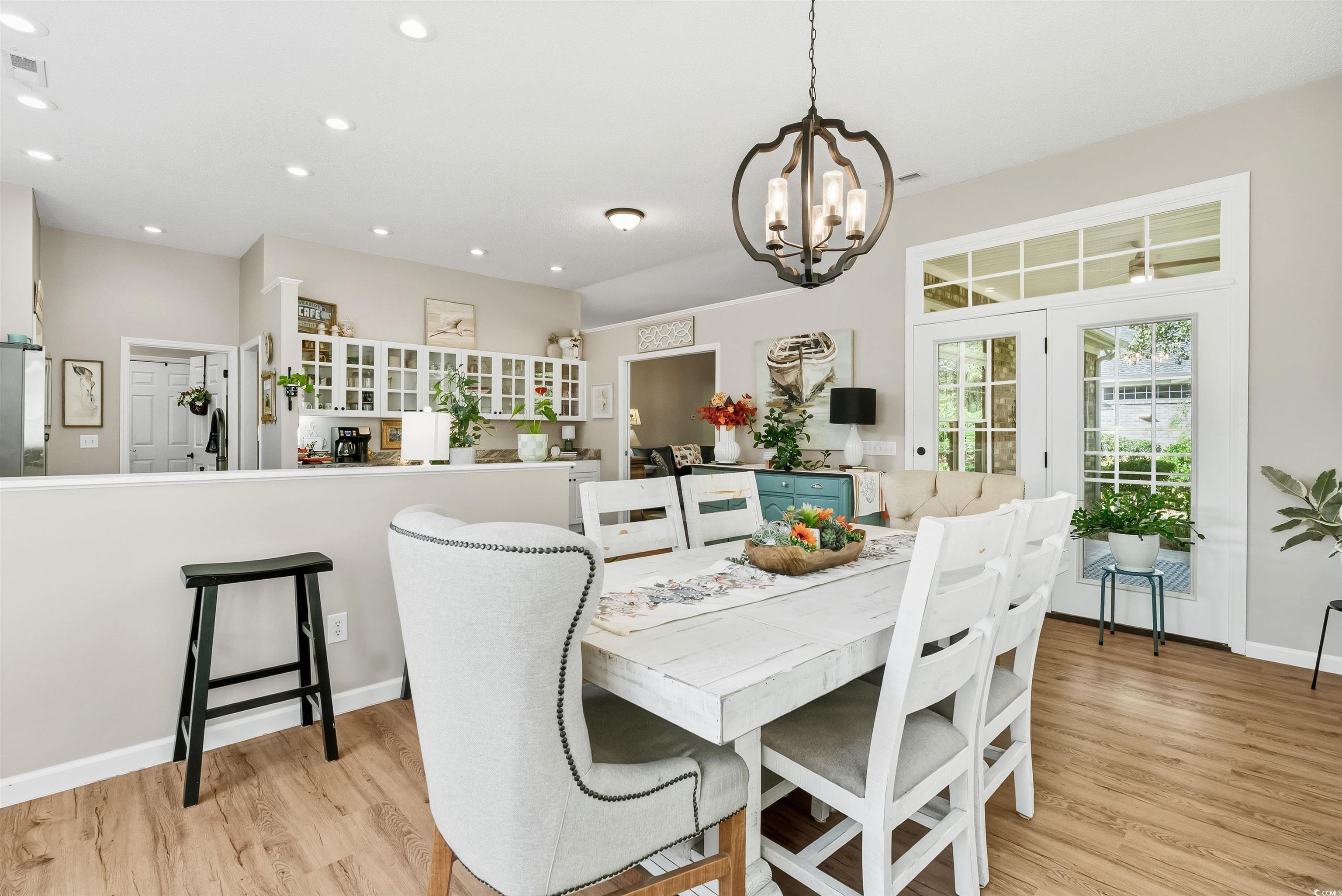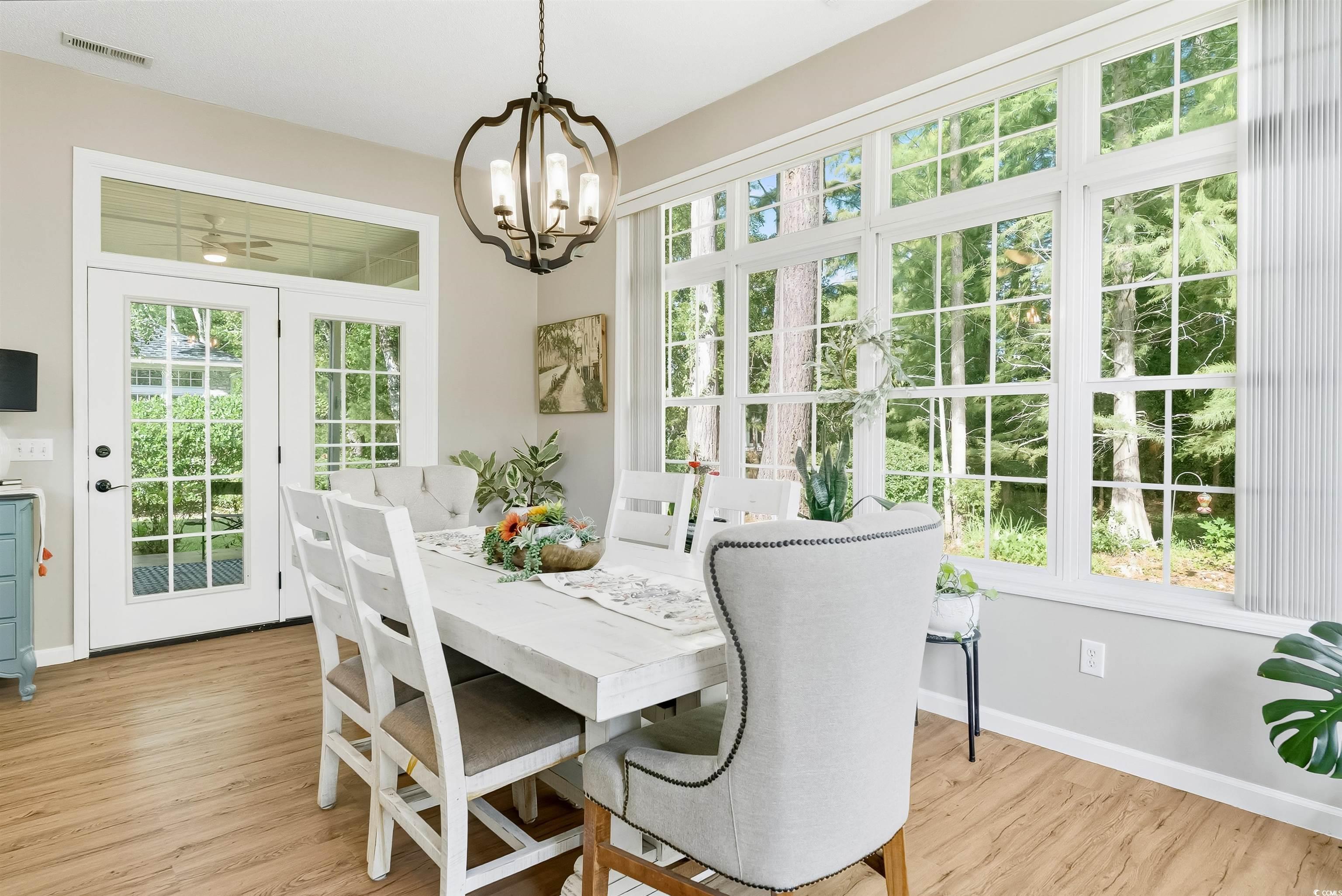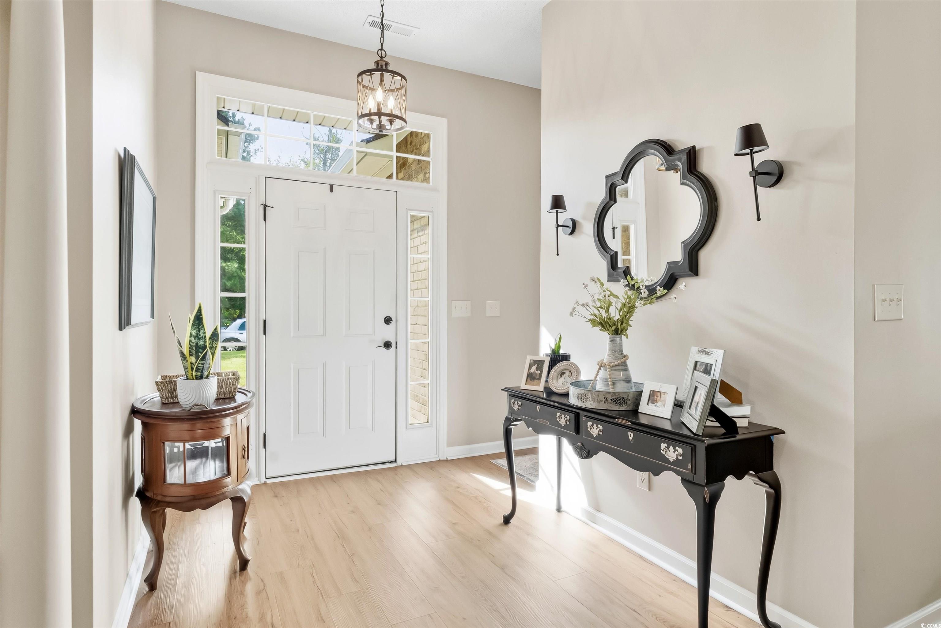 Discover your peaceful retreat in the small community of Fox Hollow located in the neighborhood of Tilghman Estates. This charming , well maintained, all brick 3 bedroom two bathroom home offers the perfect blend of coastal living and tranquil scenery, situated directly on a picturesque pond. The home boasts a bright and open floor plan, featuring a spacious living area ideal for entertaining, a well-appointed kitchen with stainless steel appliances, pantry and a comfortable dining area with all having views of nature and the pond. Retreat to the primary suite complete with a walk in closet, ensuite bathroom that includes a double sink, with a separate tub and shower. The two additional bedrooms are a good size, perfect for guests or a growing family. There is a laundry with washer and dryer located off the kitchen that leads into the two car garage. This is more than just a house; it's a lifestyle. Enjoy access to championship golf courses, boating , fishing, and all the best North Myrtle Beach has to offer while enjoying the peace and privacy of your established, desirable community. The neighborhood also has a community pool and tennis courts. Square footage is approximate and not guaranteed. Buyer is responsible for notification.