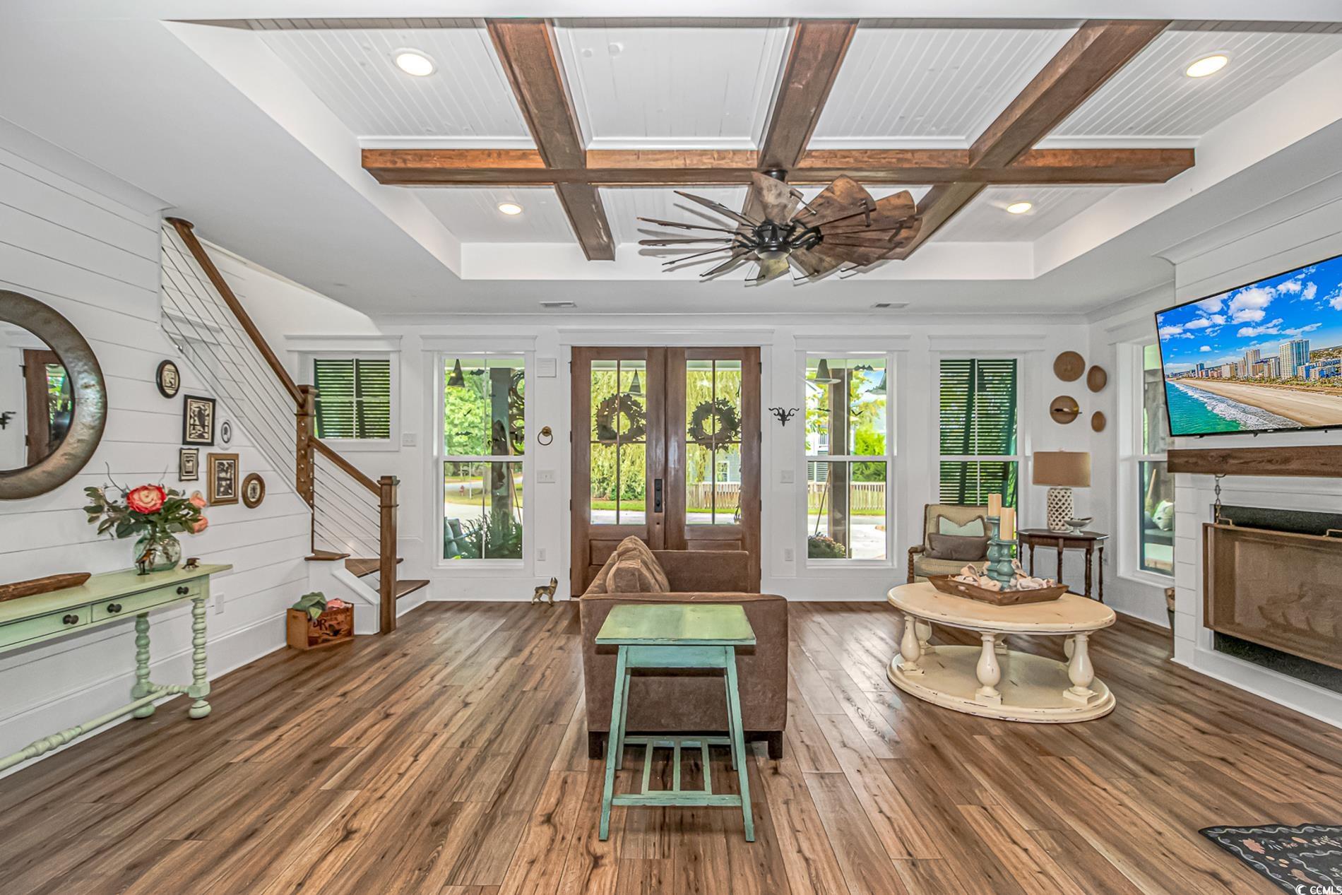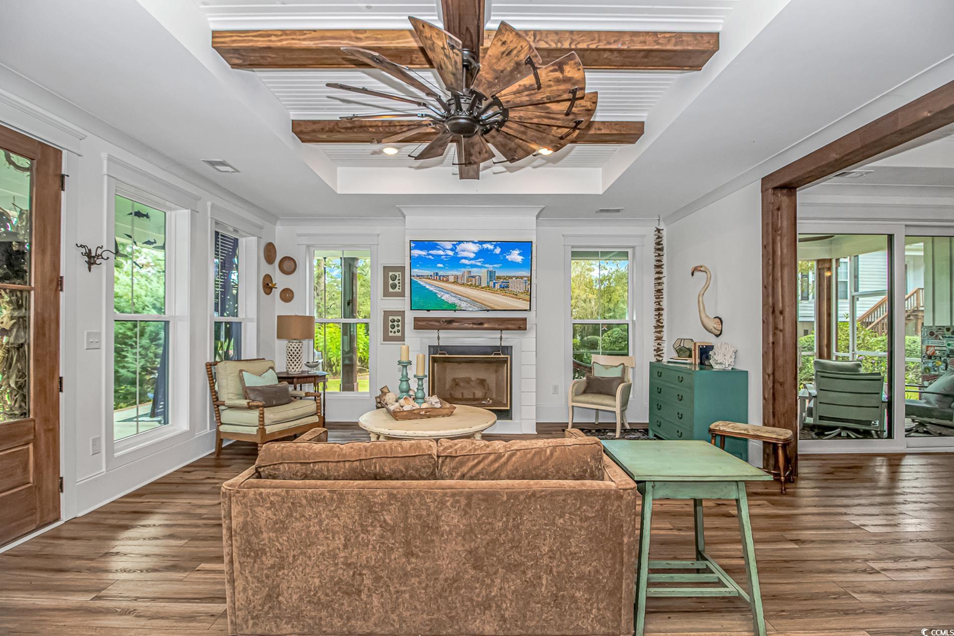 LivingRoom: BeamedCeilings, TrayCeilings, CeilingFans, Fireplace