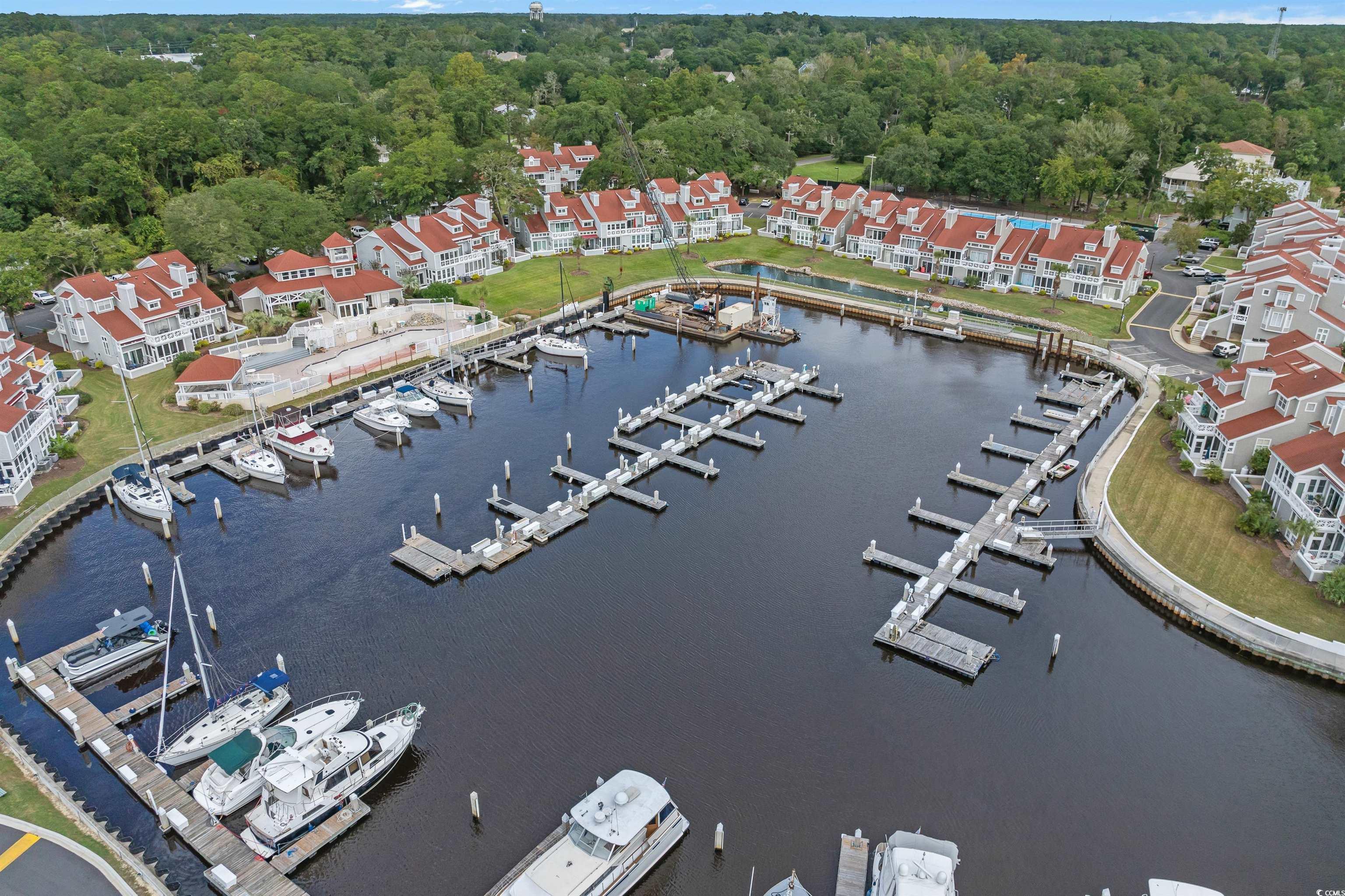 This townhouse style condo within Mariners Pointe, a gated Nantucket style community nestled among huge oak trees near Little River's historic waterfront fishing village & bordering the Intracoastal waterway is full of charm & spaciousness. The upstairs loft has been converted into the 3rd bedroom & there is a 2nd bedroom & bath upstairs as well. A fenced in patio allows for privacy, fresh air & space for fun family & friends entertaining, or intimate outdoor dining under the stars! There is easy access to the adjacent Carolina Room and Living Room with cozy fireplace! Roomy primary bedroom with dressing area & bathroom with large corner tub and walk-in shower are on first floor. Galley style kitchen has convenient pass thru to dining area. Breakfast area with windows provides cheerful sunny start to your day! For the boating enthusiast, boat slips may be available for separate purchase. Tennis, pickleball & basketball courts for your pleasure now as well as a newly renovated swimming pool coming in Spring 2026. Residents enjoy fun social events in the lovely community clubhouse overlooking the marina. Come live the Mariners' lifestyle in this beautiful waterway setting with SC & NC beaches just a few miles drive away! NOW is time to buy!