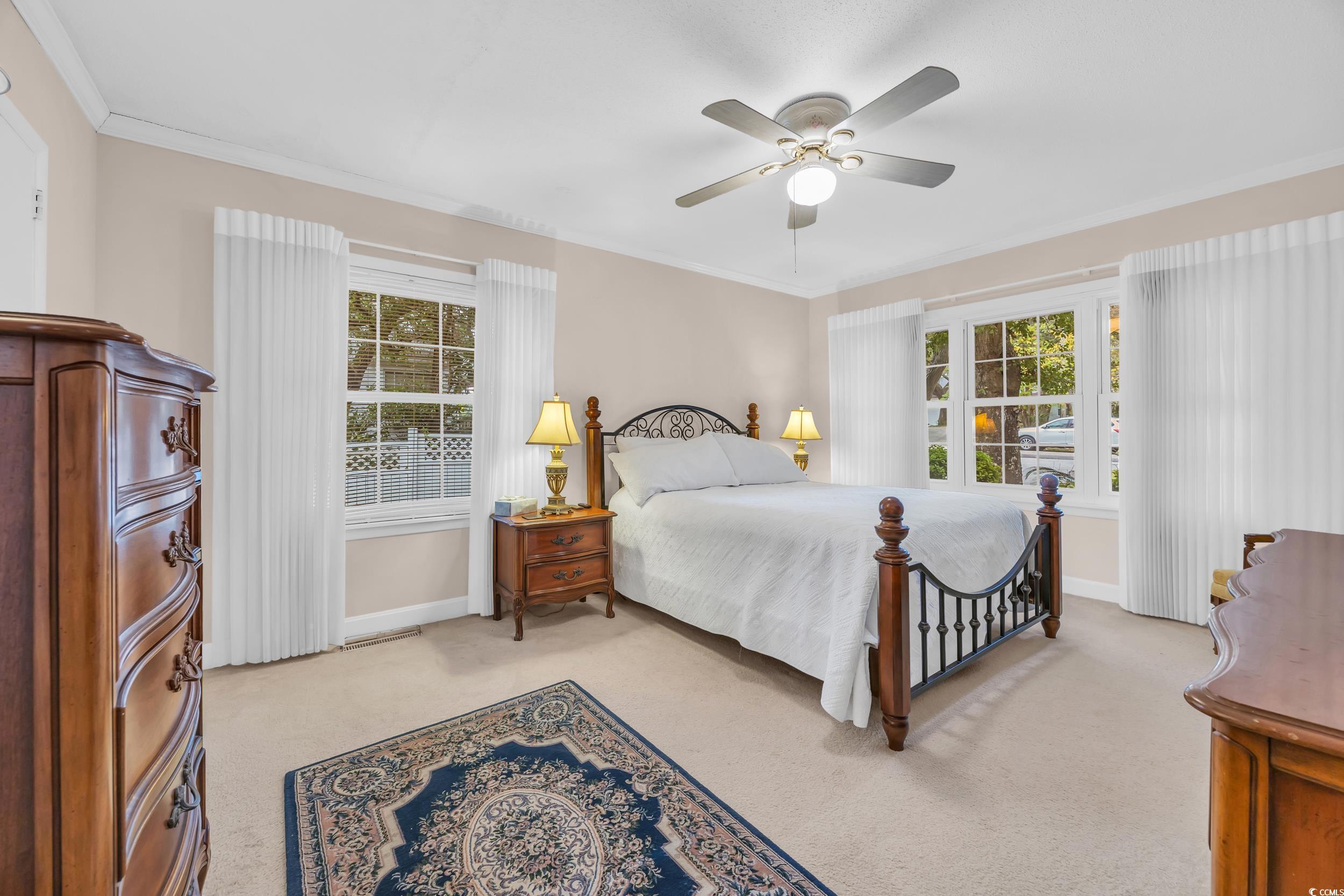 Price Improvement! Discover convenience, comfort, and location with this well maintained home located within the highly desirable Golden Mile of Myrtle Beach. Perfectly situated amongst mature oak trees, 412 43rd Avenue North offers both peace and serenity all while being within minutes of everything. Just a short walk or golf cart ride down to beach access, you will surely fall in love with this prime location. Upon pulling into the spacious driveway, you will be greeted by a charming and inviting front entrance. With a beautiful stone walkway, mature landscaping, abundance of outdoor entertaining with an expansive courtyard, this home is ideal for a primary residence or the perfect location for a second home. Not only does this home have location and convenience, it also offers a FULL in law suite or guest apartment making this truly a must see! Offering a traditional layout, this home has a formal living room with a built in fireplace, a formal dining room, generously sized kitchen and breakfast nook, and a Carolina Room for year-around entertaining. With so many options, character, and charm this home is longing for new memories to be made. The main home offers 3 bedrooms along with 2 full baths making this an ideal layout for all. The updated primary suite has a walk-in glass shower, vanity for prep space, and a spacious walk-in closet. On the other end of the home, the in law suite/guest apartment offers a full kitchen, a private bedroom, and 1.5 bathrooms. With so much potential and possibilities to be made, do not miss this opportunity to live in one of the highest sought out areas of Myrtle Beach! Perfect for anyone, this home is ideally positioned to enjoy summers by the South Carolina Coast. All measurements are approximate and not guaranteed. Buyer is responsible for verification. Check out the virtual 3-D tour!