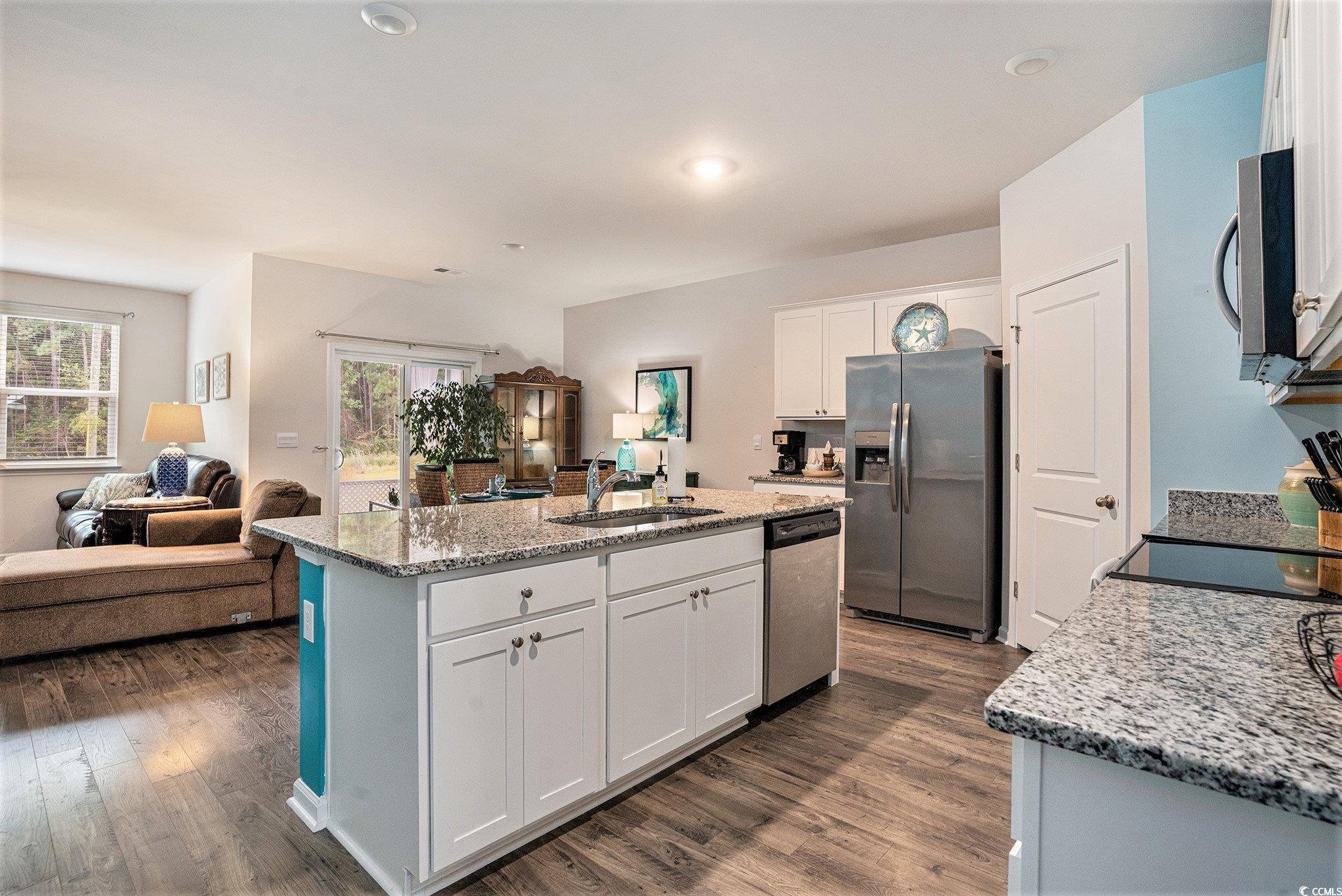 This thoughtfully designed single-level home features one of the builder's most popular floor plans! The open-concept layout seamlessly connects the living room, dining area, and kitchen, creating a bright and spacious atmosphere perfect for entertaining guests or enjoying everyday family life. The kitchen is beautifully equipped with granite countertops, 36"" cabinetry, stainless steel appliances, a walk-in corner pantry, and a large island with a breakfast bar. Whether you're cooking a family meal or hosting friends, this space offers both functionality and style. The primary suite is privately located at the back of the home and includes a spacious walk-in closet and a well-appointed bathroom featuring double sinks, a linen closet, and a 5' walk-in shower. Three additional bedrooms are positioned at the front of the home, offering comfort and privacy for family members or guests. The thoughtful split-bedroom design ensures a quiet retreat for everyone. Relax and unwind on the back porch while enjoying the coastal air. Perfect as a primary residence, vacation getaway, or investment property, this home is located in the desirable Lochaven neighborhood just minutes from historic downtown Conway, local shops, dining, schools, and a short drive to the beaches of Myrtle Beach.