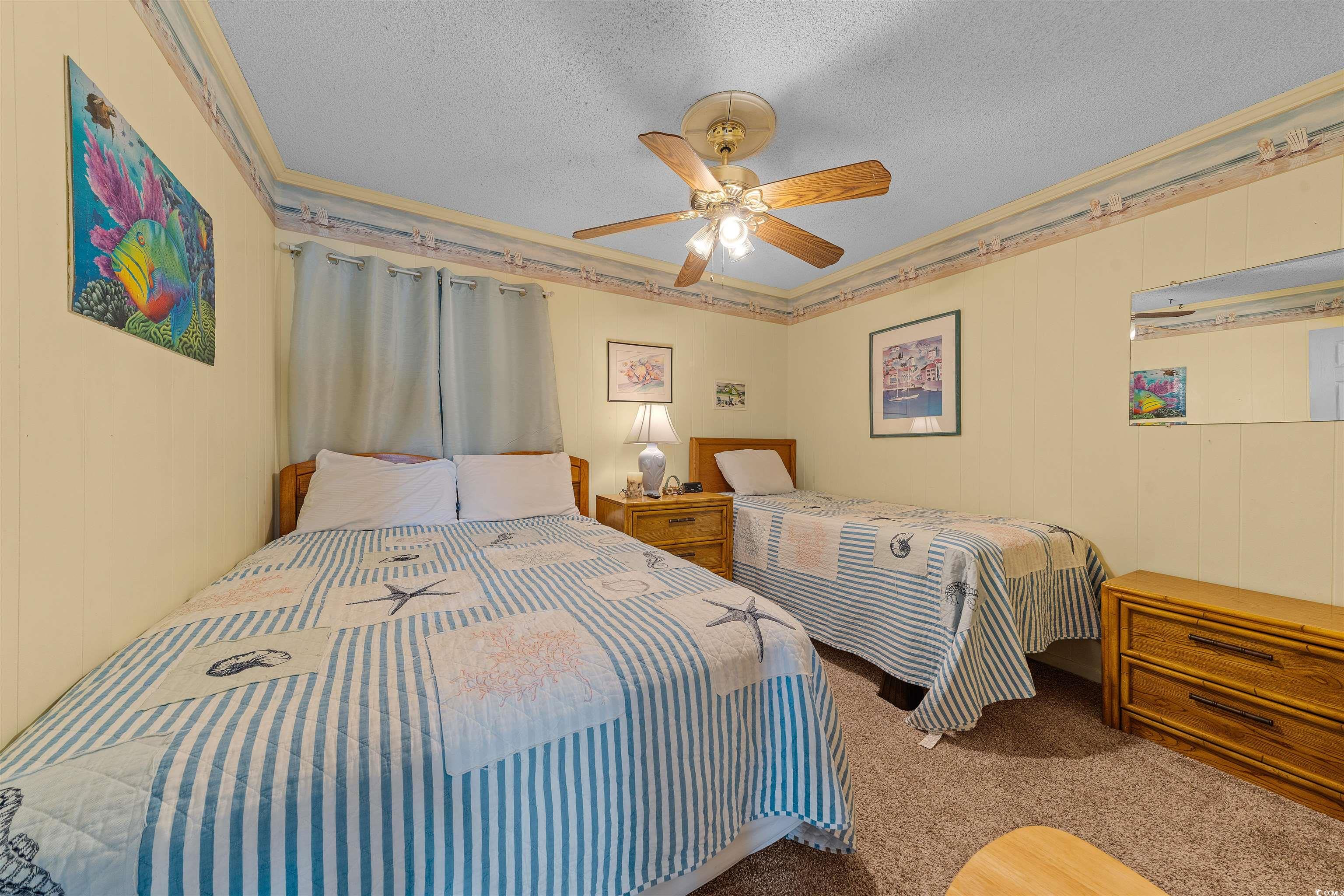 Welcome to your dream Beach Home! Spectacular ocean views await from this beautiful, turnkey 2-bedroom, 2-bath condo located in Myrtle Beachs sought-after Golden Mile area at the popular Ocean Forest Villas resort! This top-floor unit features ceiling fans in Both bedrooms and Kitchen and balcony access from both the living room and the master bedroom. The open floor plan includes a spacious living and dining area with a bar with seating for seven, plus a fully equipped kitchen offering abundant cabinet and counter space and a double sink. The master suite features a private bath with vanity and shower, direct balcony access, and plenty of closet space. The second bedroom is generously sized, with a nearby full bath that includes a tub with shower and vanity. Step out onto the extended balcony and enjoy the refreshing ocean breezes and breathtaking views the perfect spot for morning coffee or evening cocktails with friends and family after a day at the beach. Ocean Forest Villas offers two outdoor pools, two hot tubs, picnic and grilling areas, and is just steps from the beach. Youll also be within walking distance of great restaurants, shopping, and a grocery store, and just minutes from Myrtle Beach attractions and entertainment. Whether youre searching for a full-time residence, a vacation retreat, or a smart investment property, this condo delivers the ideal combination of location, comfort, and coastal charm. Come Check it out.