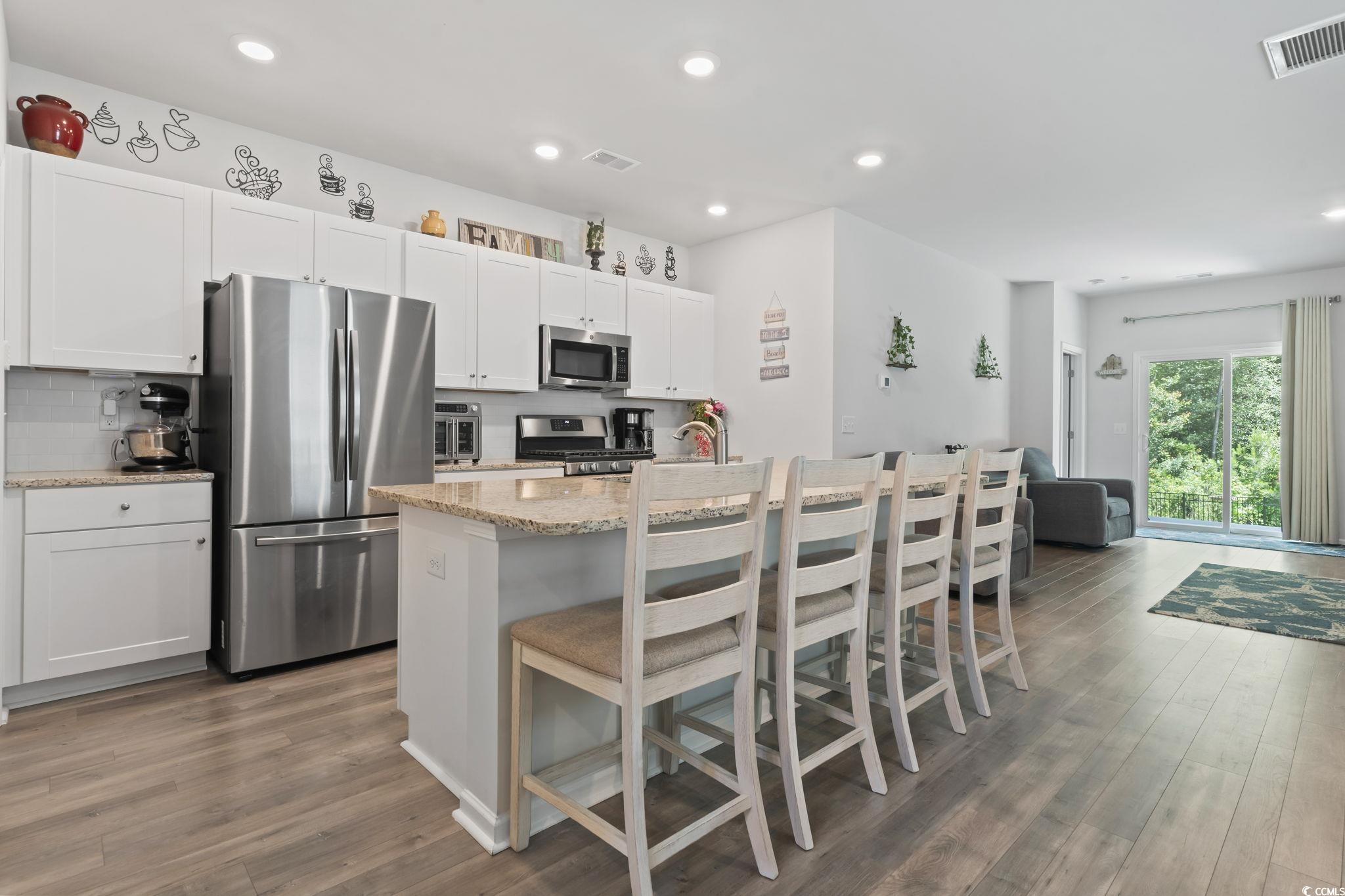 OPEN HOUSE Saturday 1/24/26 12:00-1:30pm! This spacious 2300+sq ft 5 Bedroom 2.5 Bathroom home on a wooded lot has a wonderful floorplan with separation of space. The light filled 2 story foyer greets you as you enter. The large kitchen has granite counter tops, over-sized island, a pantry, gas stove and white cabinets. The first-floor primary suite has walk in closet and double sinks in the bathroom. The second floor of this home features a Bonus area with endless possibilities. The remaining 4 bedrooms are also upstairs. The tankless water heater ensures constant hot water. The landscaping has been upgraded and gutters installed. Enjoy coffee and grilling on the Covered Rear Porch! The rear yard is fenced and backs up tp woods, perfect for Entertaining! This community has a beautiful swimming pool with a cabana, bathrooms and playground. Location is convenient to Golf, Beaches, Shopping Dining & Area Attractions. All information is deemed reliable but not guaranteed. All measurements/square footage are approximate and not guaranteed. Buyer and buyers agent are responsible to verify all information.