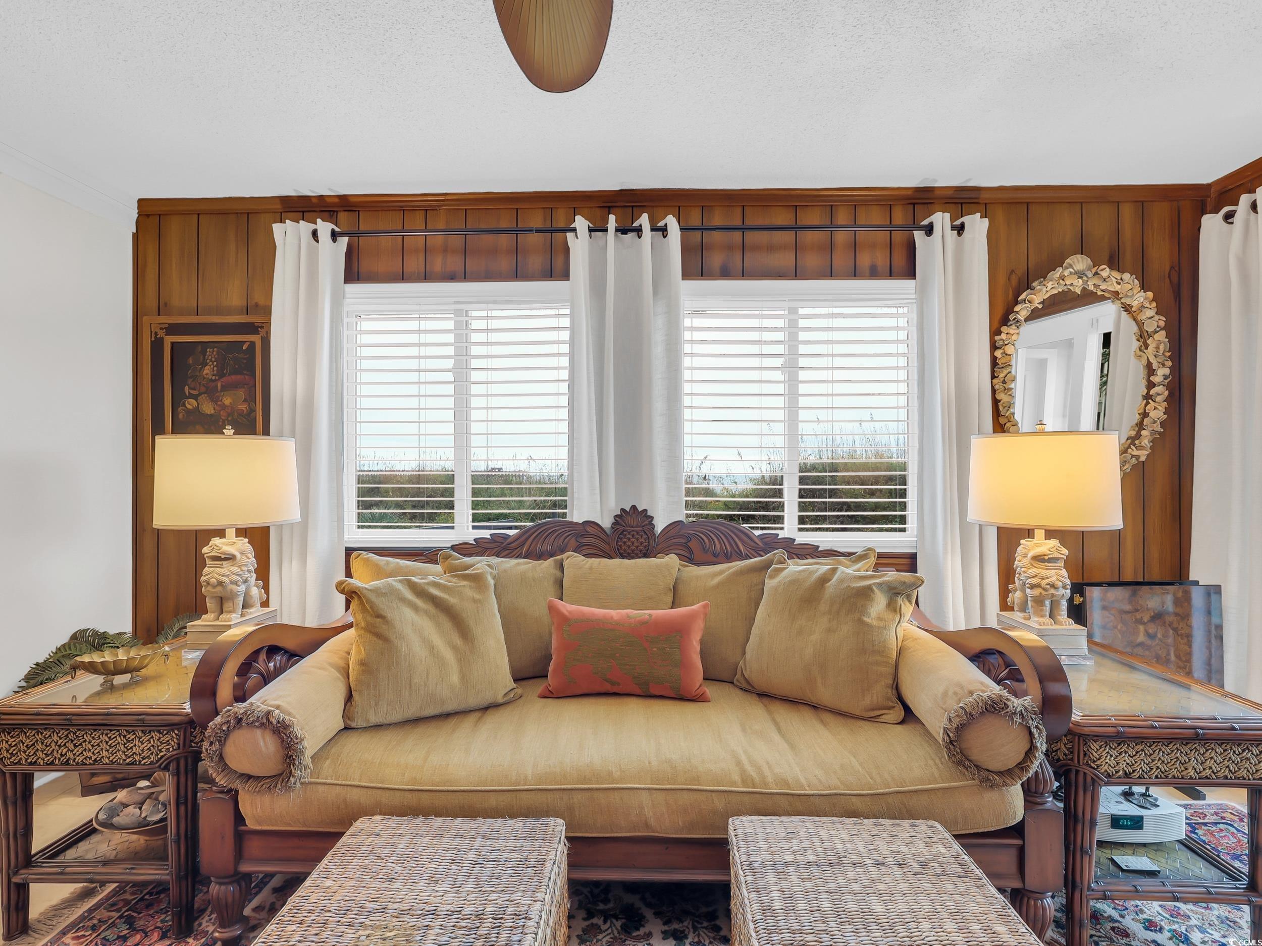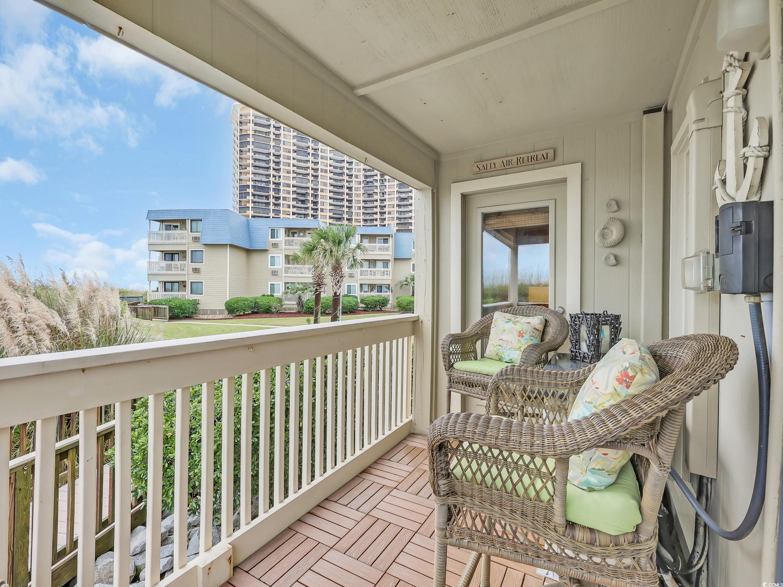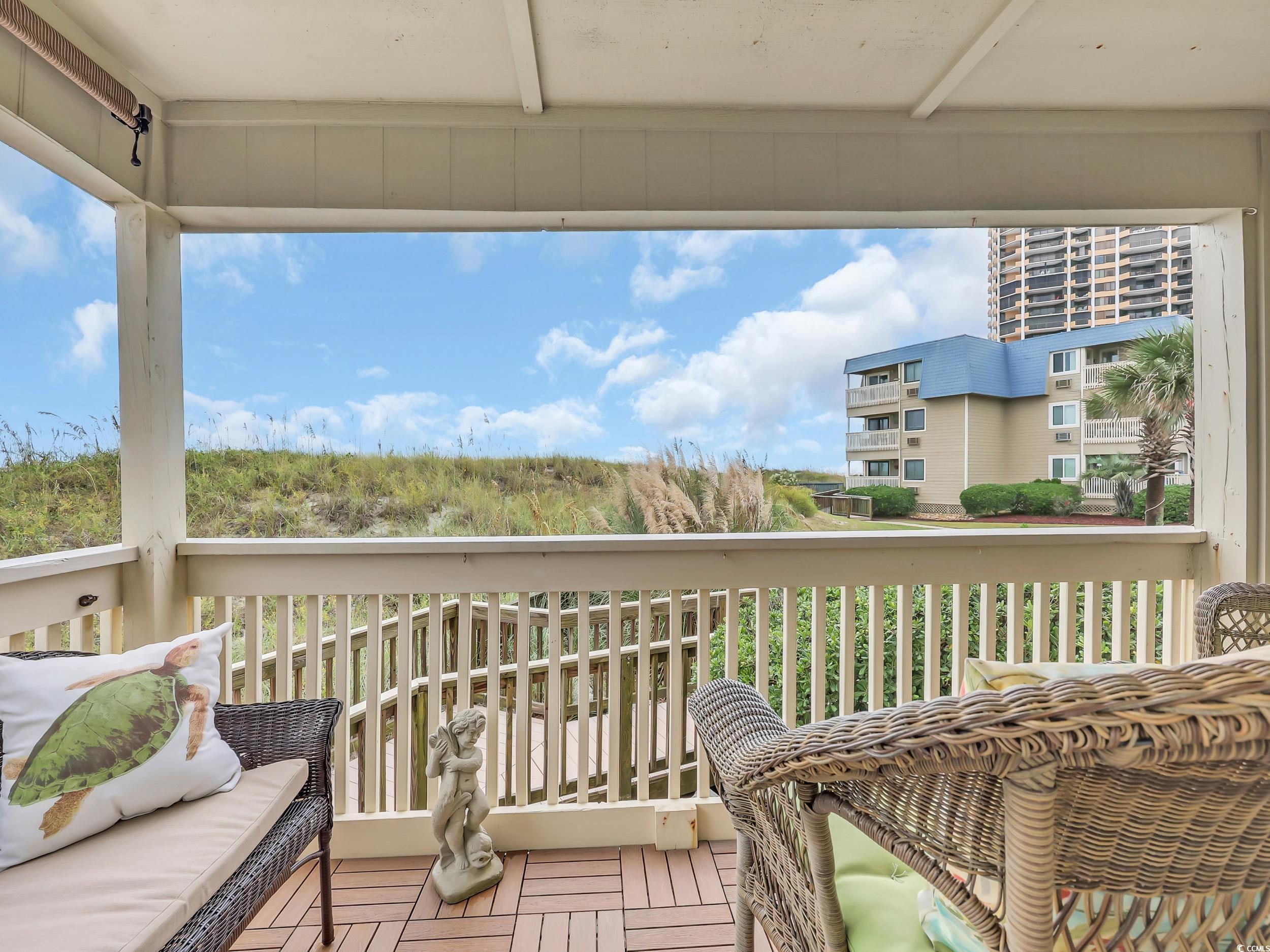 Welcome to this amazing oceanfront, furnished, first floor 2 bedroom 2 bath condo at A Place at the Beach IV in the coveted Shore Drive area of Myrtle Beach. This community is a true gem, with a mix of full time residents, second homes and rental investments. Families have owned here or vacationed here year after year for good reason. Short and long term rental are allowed making this an excellent investment opportunity. Fully furnished and ready to welcome you or your guests. Getting this close to the Ocean for this price point is rare. The HOA fees are comparatively low for an oceanfront community and include most utilities and building Insurance. Just inside the front door is the beautifully renovated kitchen. New high end slow close cabinets, beautiful granite counters, and updated stainless appliances. The new cabinets also include a custom unit for the in unit washer and dryer. A rare find for oceanfront condos! There is also a utility closet with storage just inside your front door and hooks for hanging your sandy beach chairs just outside. The primary bedroom is spacious enough for a king size bed and has an ensuite bathroom with updated vanity and a corner shower This bedroom also has its own door to the balcony where you can sit outside, enjoy the sounds of the ocean, watch the dunes grass sway in the breeze and relax and rewind. The guest bedroom includes 2 twin beds and has access to the full hall bath with tub/shower combo and upgraded vanity. Both bedrooms have ceiling fans and full size closets for storage. This unit has been upgraded with a mini split HVAC, not the standard wall units. Each room has the ability to control their own temperature and is much quieter to run. The real showstopper is the Ocean and Pier views right out your windows. Just step out the sliding glass doors onto the balcony where you can watch amazing sunrises while listening to the waves. If you'd rather watch the sunrise from the beach, you are less than 30 steps from your doorway to the sand. No lugging chairs up and down multiple flights of stairs, and its just a quick trip back to your condo for a sand free lunch or a quick nap. If the Ocean isn't on your agenda, there is a large pool, kiddie pool, and grilling areas right around the corner. Great place to meet the neighbors and catch some rays. There is a multitude of shopping and dining options available to the Shore Drive area. Flip Flops, Ocean Annies, and Finn McCools are a few of the locals favorites within walking distance, or hop in the car and be at Barefoot Landing, Tanger Outlets or Broadway at the Beach in just a few minutes.